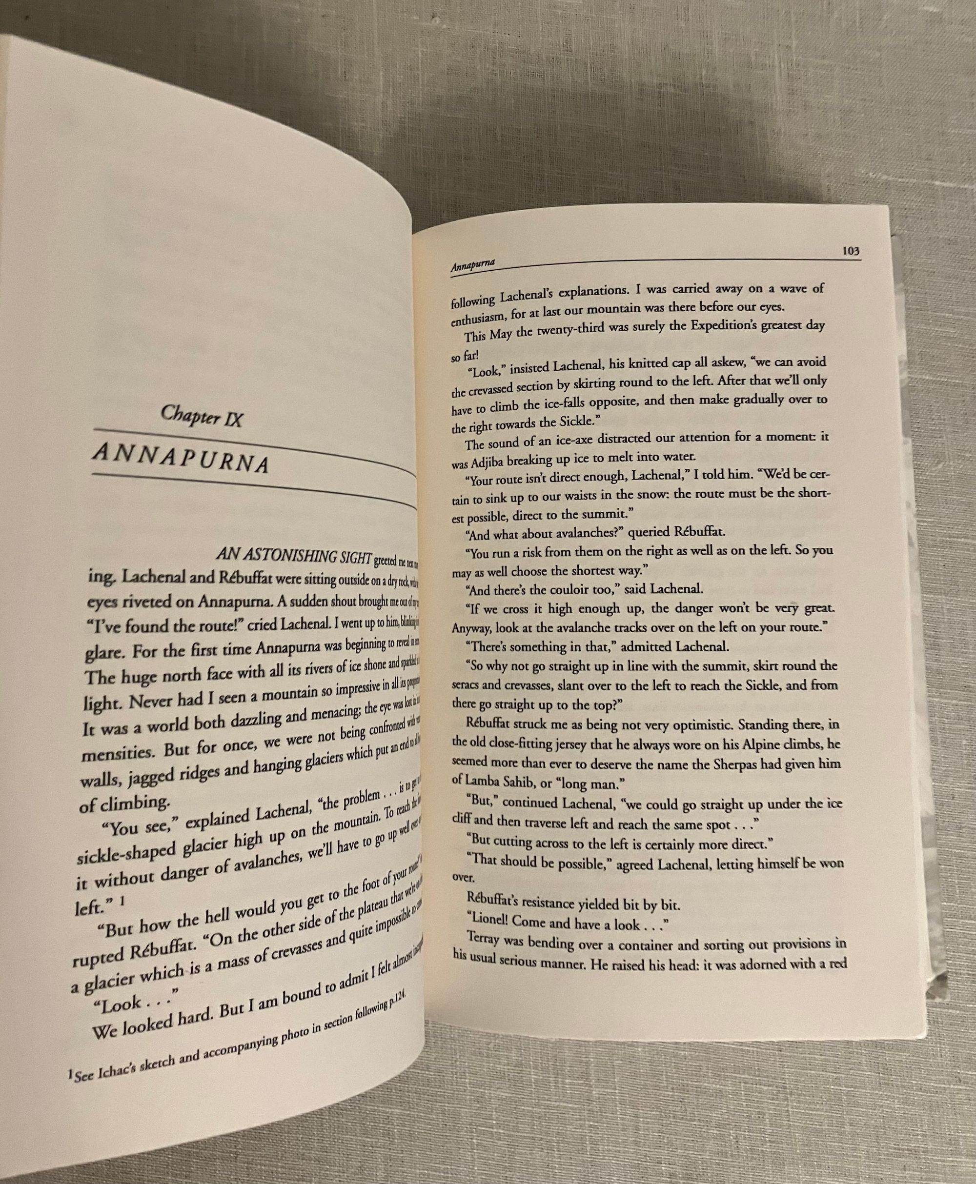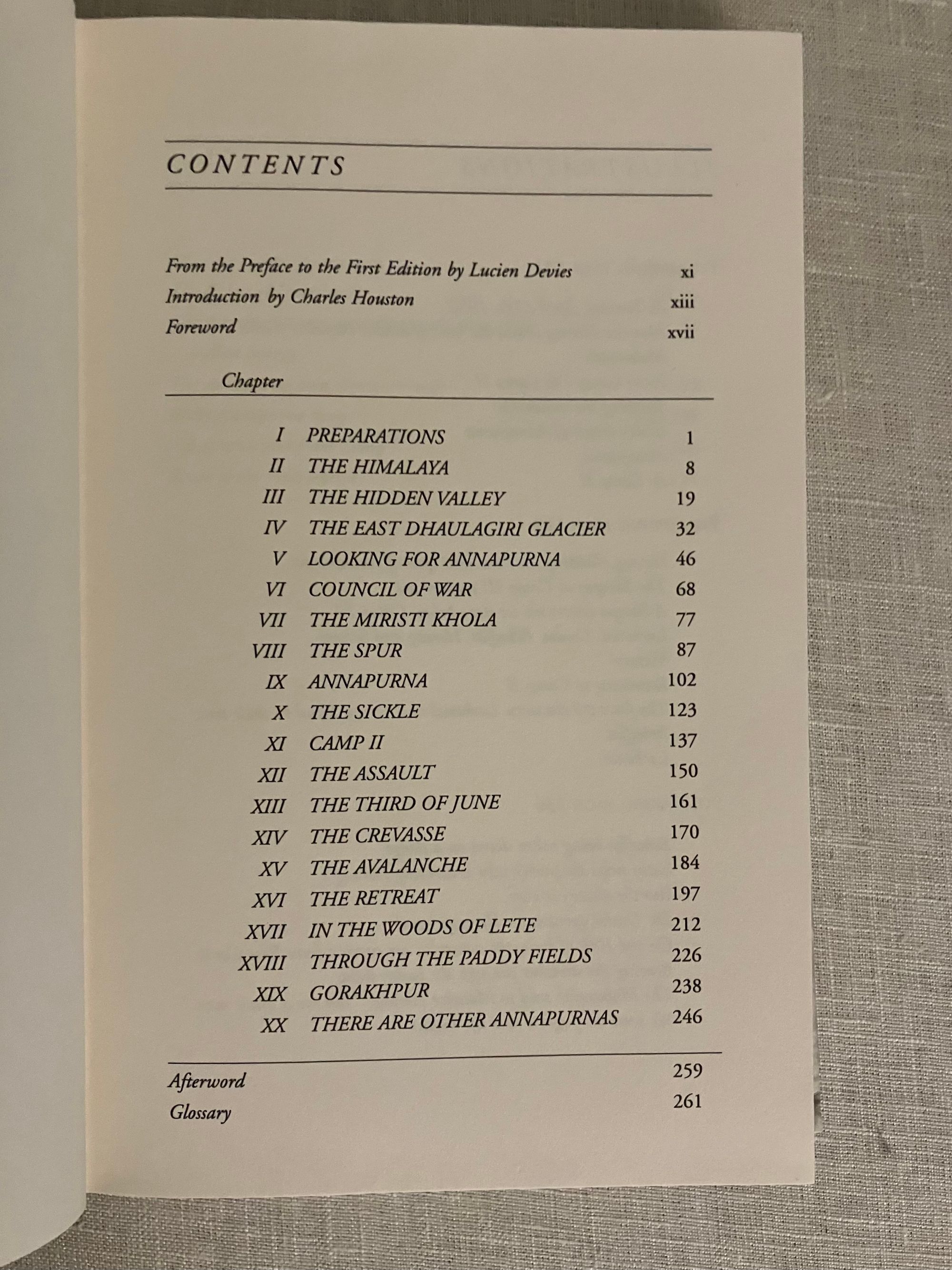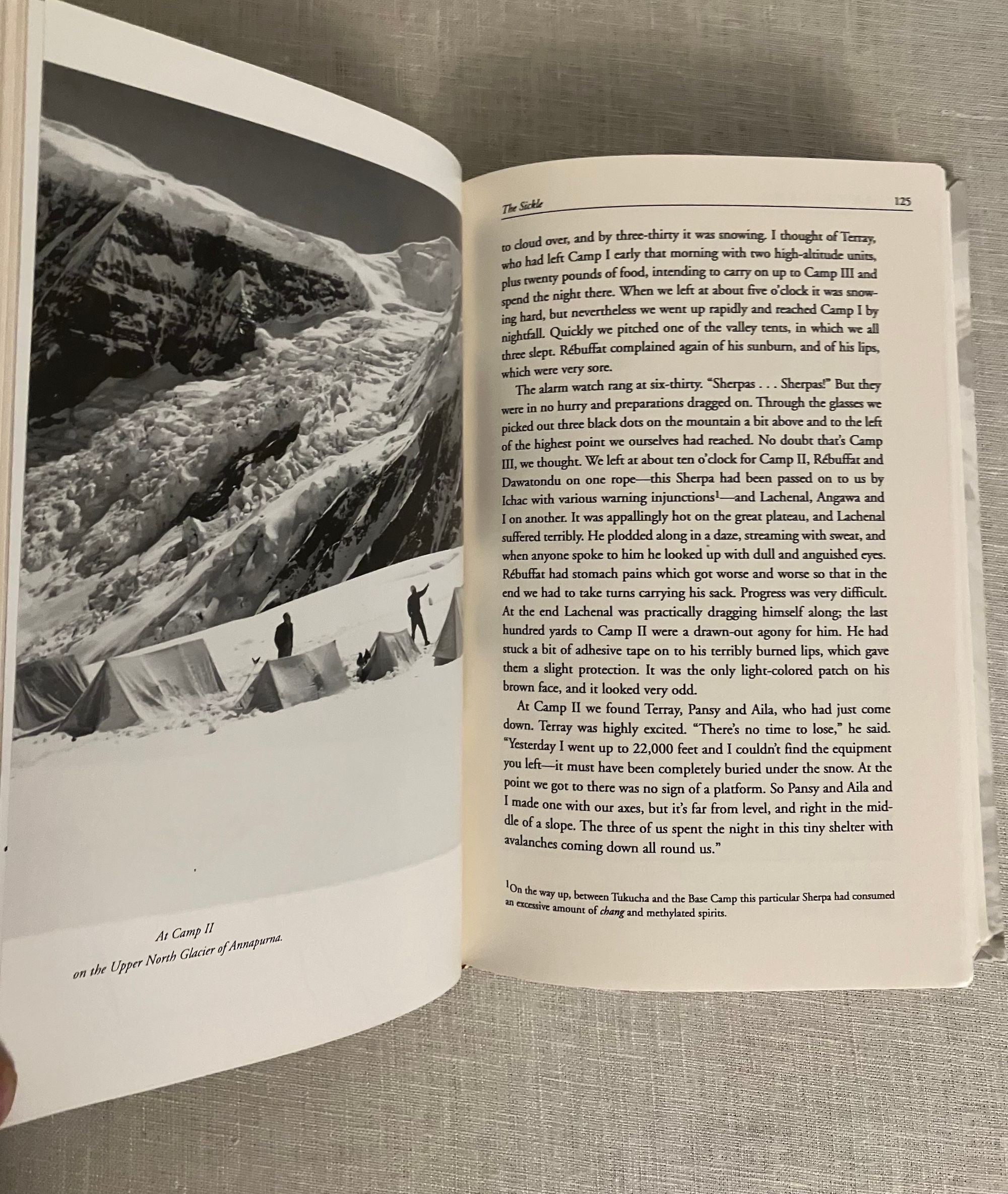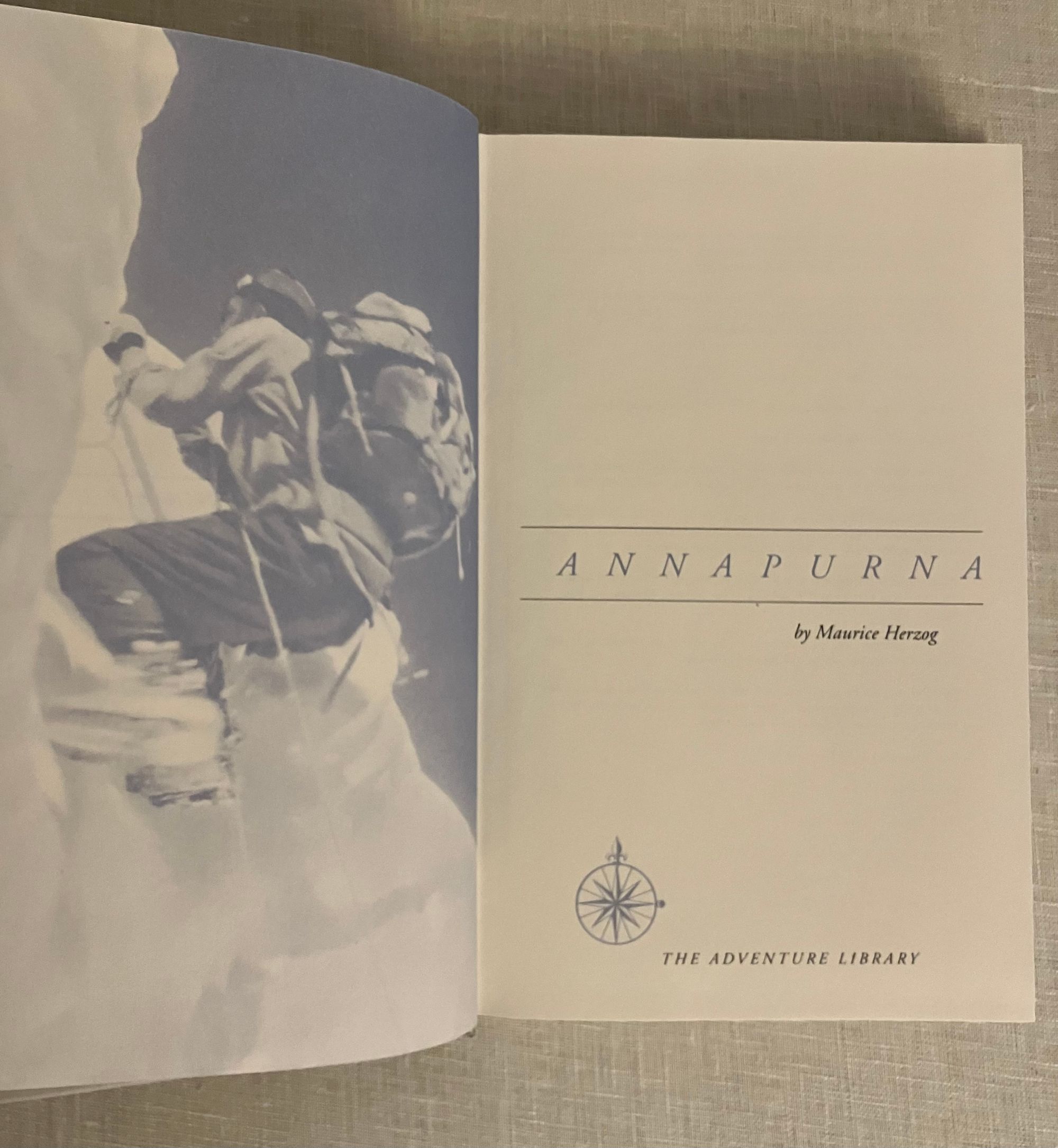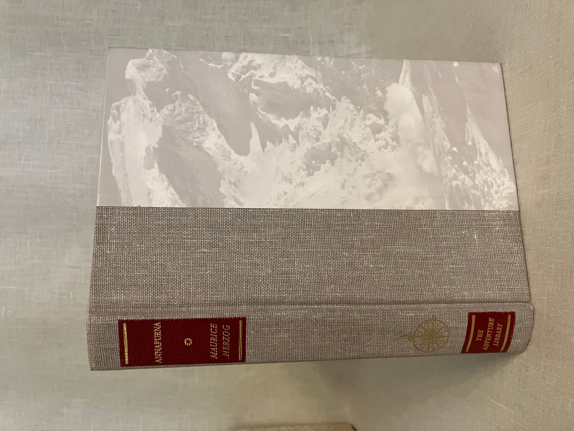 Hard cover, 8vo., in half buckram with gray paper-covered boards illustrated with mountain scenery. First Edition Thus, xvii, 257 pp. Originally published in France, 1952. In English. Containing map endpapers and numerous photographs reproduced from the original book. Condition: Fine. Described as perhaps the best mountaineering book of all time. The obituary of the French climber appearing in the Guardian newspaper (December 14, 2012) describes how Herzog's pioneering ascent of this 8,000 meter mountain in Nepal in 1950 made the man a national hero of France, along with his team. The price was high, however, costing the Author the loss of all of his fingers and toes to frostbite. The current title was dictated from his hospital bed during a long, and agonizing recovery. Lucien Devies explains the mindset of high mountaineering in the book's original Preface : " Climbing is a means of self-expression...Man overcomes himself, affirms himself and realizes himself in the struggle toward the summit, toward the absolute. In the extreme tension of the struggle, on the frontier of death, the universe disappears and drops away beneath us. Space, time, fear, suffering, no longer exist. Everything then becomes quite simple..." ( p. xi)