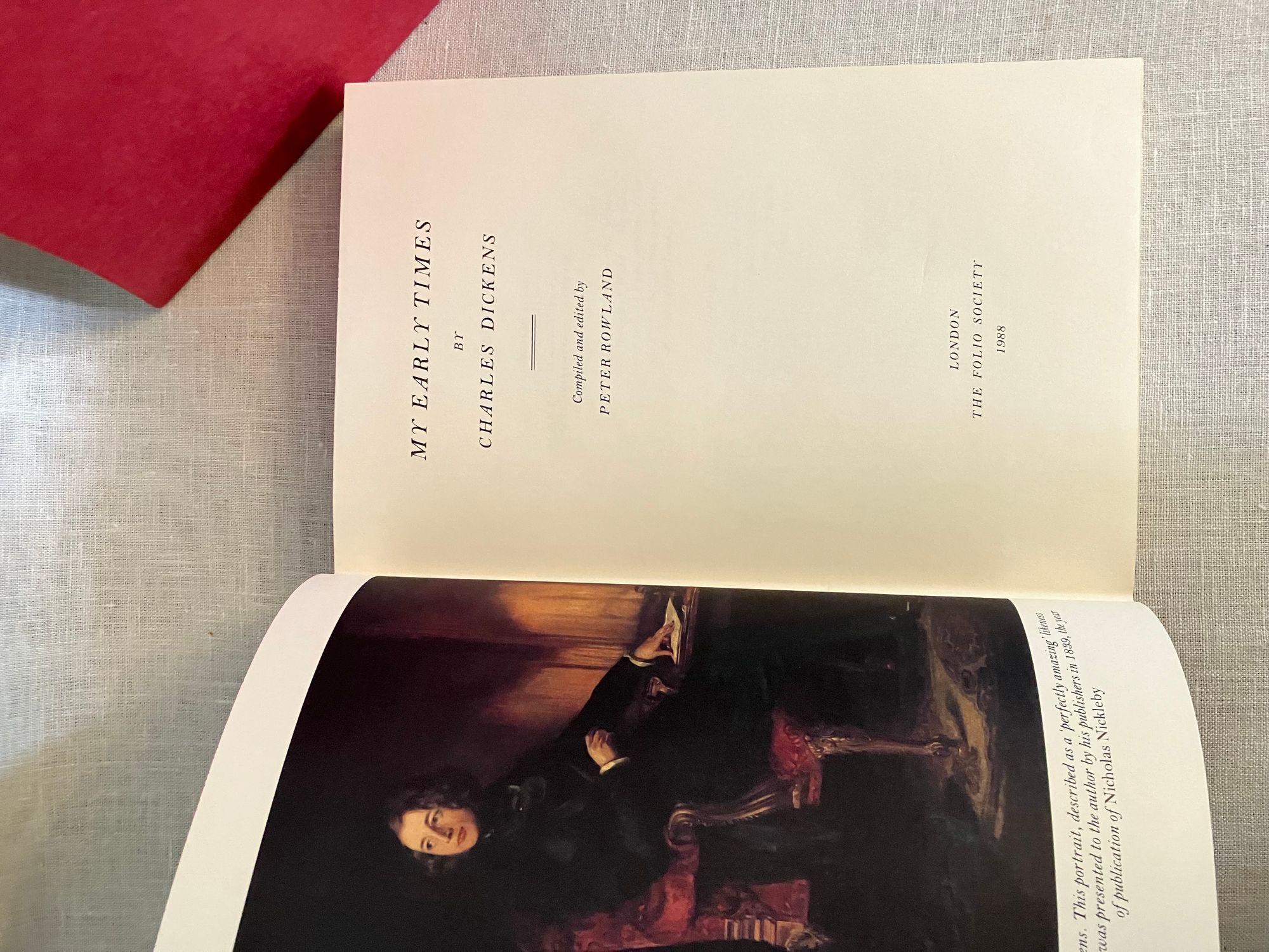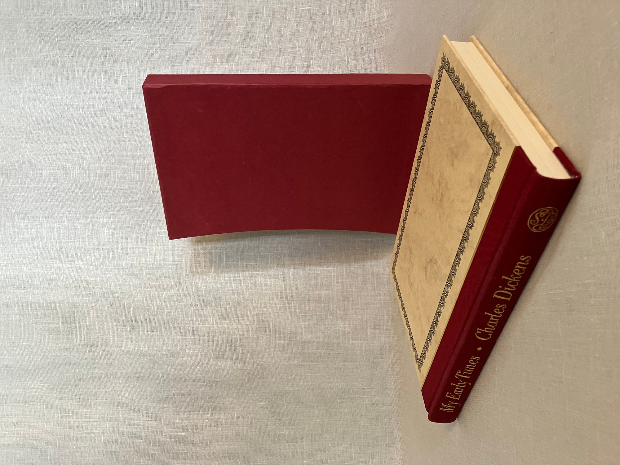 Hard cover in slipcase, 8vo, (6 3/8 x 9 1/2 inches) in half red cloth with decorated tan marbled paper-covered boards, pictorial endpapers, with many black and white and color illustrations, 252pp. in a red slipcase. Condition: Fine, slipcase Near Fine (minor shelf rubbing on bottom.) Autobiography of the beloved author, Charles Dickens (1812-1870.)