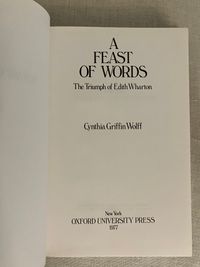 Hard cover, 8vo, in black cloth boards, with title in gilt to spine, in an unclipped, pictorial dust jacket, now protected in mylar. (viii), 453pp. First American Edition. Condition: d/j sunned on spine end and partial top of front; minor soiling to rear flap. Book is clean, tight and unmarked. Novelist Edith Wharton (1862-1937), was best known for her depictions of the monied classes of Gilded Age New York in her many novels, including the Pulitzer-winning Age of Innocence (1920) and The House of Mirth ( 1905 ), but she was also a prolific short story writer. Literary biographer Cynthia Griffin Wolff, Professor of English at the University of Massachusetts at Amherst, explores works in both genres, delving into the psychological dimensions behind the sometime-resident of western Massachusetts, whom she calls, " ...the most original and important woman novelist in American literature, and one of the half-dozen greatest novelists America has produced."