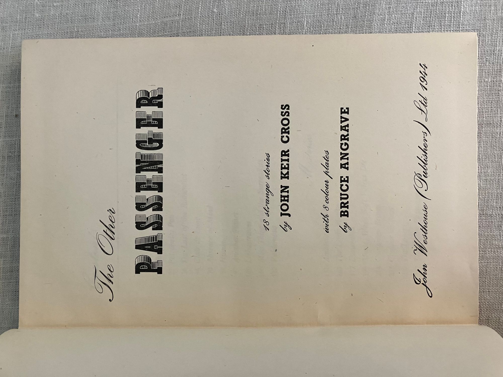 Hard cover, Octavo (5 ½" x 8 ⅜"). 274pp. In publisher's black cloth binding with gold lettering to spine. Rare signature by author to front free endpaper. Illustrated by British artist Bruce Angrave, with 8 full-color plates. Condition: Near Fine with a touch of shelf-wear to corners, moderate age toning, in a Fair dust jacket, which has chips and loss to edges. *** The classic collection of gothic tales by the Scottish BBC radio scriptwriter, producer and broadcaster John Keir Cross (1914-1967). These are truly "Tales of the Unexpected", with nasty stings worthy of Ambrose Bierce or Clark Ashton Smith. The illustrations are wonderfully apt surrealist works, and add to the unsettling atmosphere of the stories. *** The artist, Bruce Angrave (1912-1983), created many posters for the wartime British Ministry of Information, as well as for British Railways. His wartime poster, "These are the fruits of horseplay, Don't Distract Your Mates", shows the same surreal and unsettling imagery as do the plates in this book. *** Bleiler: "The Checklist of Science-Fiction & Supernatural Fiction", page 53; Ashley: "Who's Who in Horror and Fantasy Fiction", page 60.