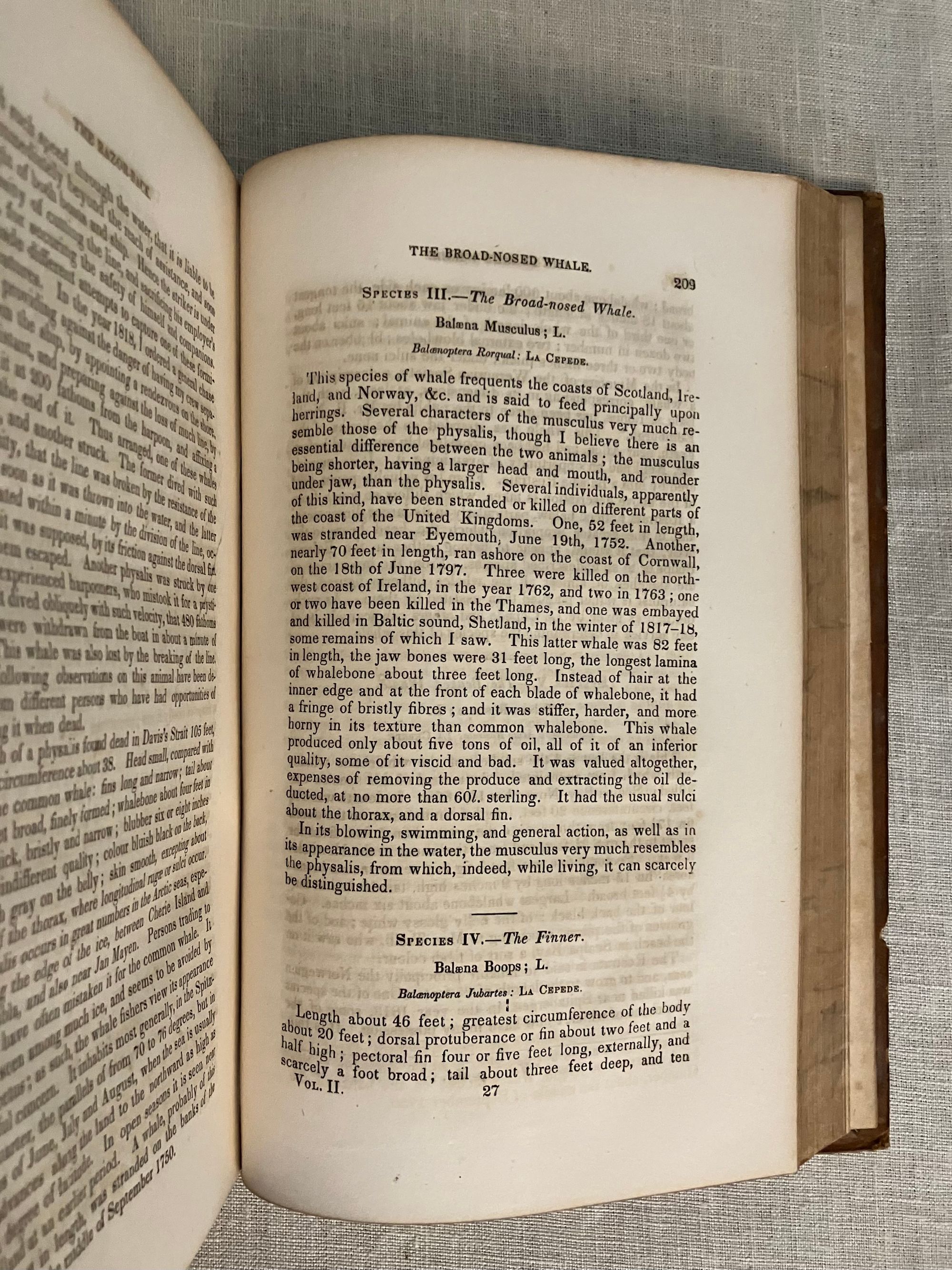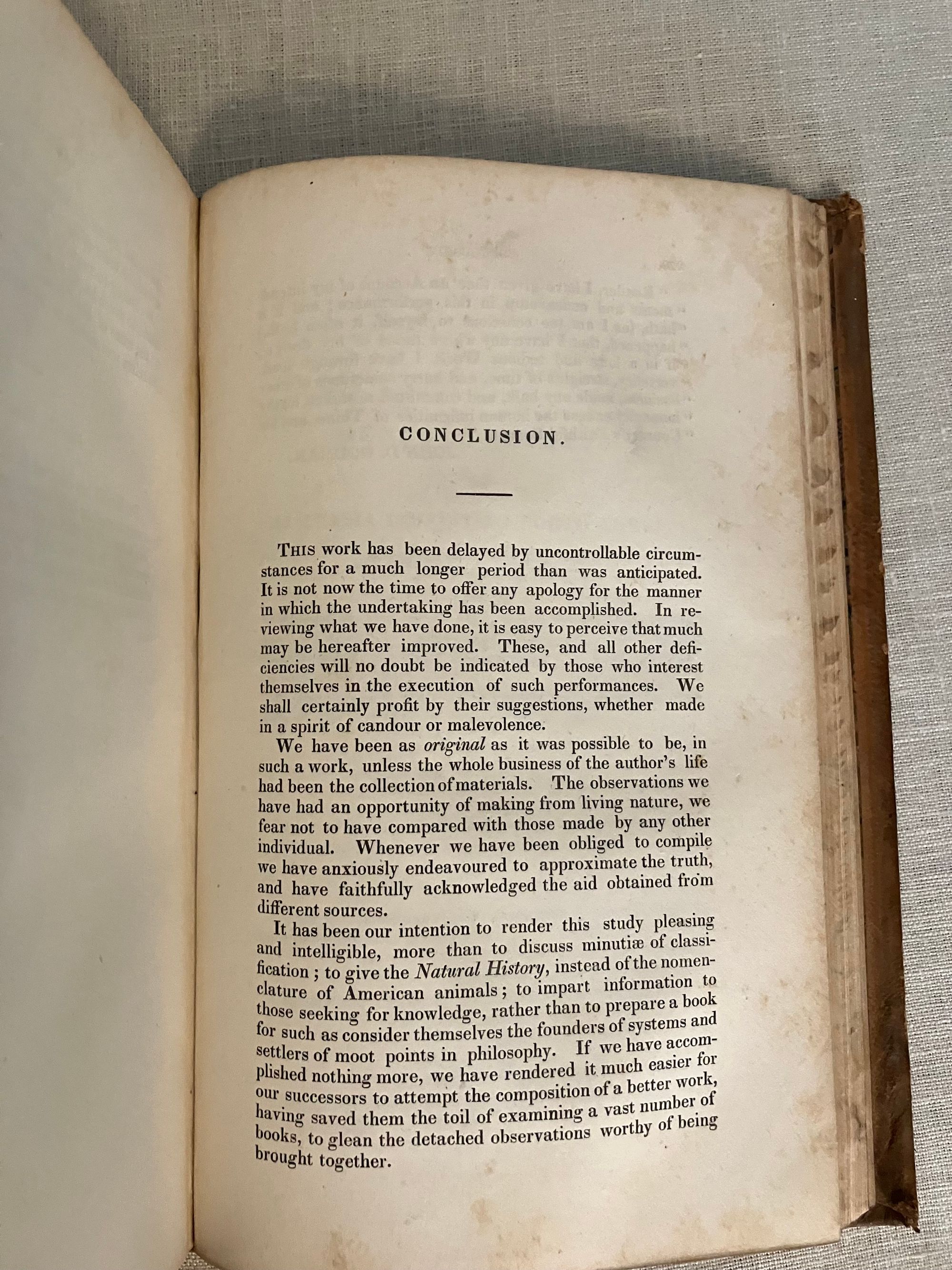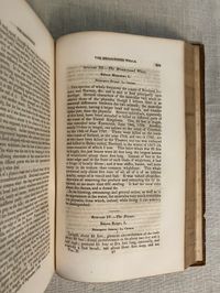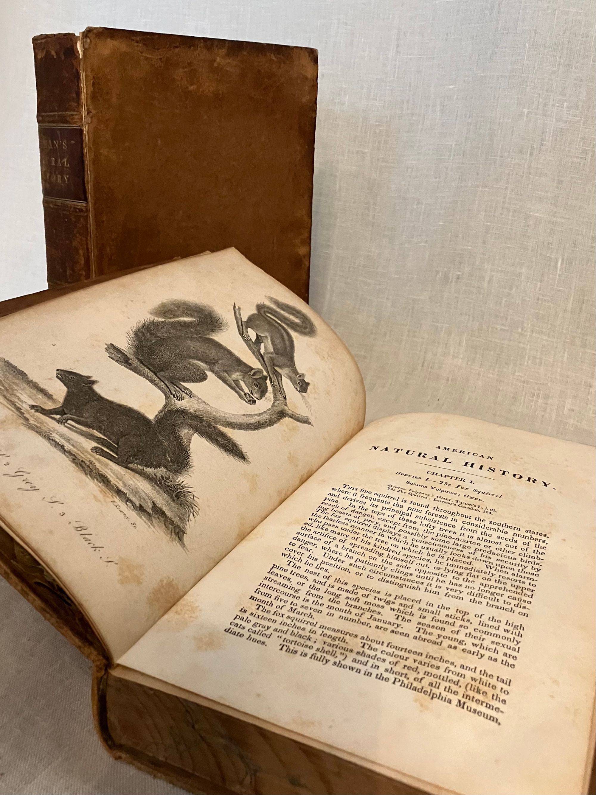 Hard cover, in Two Volumes (complete.) Third Edition, second printing; (first printing was 1842.) Copyright page seen in both books: 1836 by R.W. Pomeroy (printer) Additional illustrated title page in Vol. II: Philadelphia: Stoddart and Atherton, 1828. [As listed in Worldcat.] 8vo, in full sheepskin, xxvi +337; 288 pp. with two engraved title pp. The spine of Vol. I with four raised bands containing the title in gilt to a red onlaid leather label, all edges marbled, marbled paste downs, rolled gilt pattern to board edges, two prior owner's labels (one engraved). Physical description Vol. II: full sheep, no raised bands, gilt fillet to spine and rolled along board edges similar but not matching Vol. 1. Similar but not identical marbled endpapers. All edges marbled.** CONDITION: Overall, Good. Vol. I: Scuffing to exterior surfaces. Rear cover detached; front hinge fragile. The plates are generally clean and bright with minimal foxing, however area adjacent to text is browned, and animal-shaped browning appears across from the plates onto the text. Vol II: better condition, with brighter, less browned text. Spine labels worn away, scuffing to exterior edges and corners, loss of some gilt and exterior title labels. Interior is generally brighter, and mildly foxed, including plates. This may be a married set of books: however, matching bookplates of the noted collector Emmet Field Horine, M.D. of High Acres Brooks Kentucky appear in both books. Additionally, Volume I contains the earlier engraved bookplate and pencilled signature to the ffep. of Charles W. Ridgely. **Collector EMMET FIELDS HORINE (1885-1964) was a Kentucky cardiologist, bibliophile and philanthropist who donated much of his 20,000 item book collection to various institutions after his death. In addition, his family donated more than one thousand acres of land for scouting and wilderness enjoyment, becoming part of the Jefferson Memorial Forest. (Hartley, Courier-Journal, 7/17/2015.) **Collector CHARLES W. RIDGELY of Maryland (1801-1849) was the earliest owner of at least the first volume of this set. It is believed he may have been a Baltimore-area forebear of the more recent collector mentioned above, as Ridgely's mother's name was Mary Emmet.**Some of many beautiful full page intaglio prints in these volumes were produced by artist and engraver Frenchman CHARLES ALEXANDRE LESUEUR (1778-1846.) Lesueur was himself a full-fledged naturalist and explorer, having journeyed to "New Holland" (now Australia) with Napoleon's Baudin Expedition of 1801, upon which the artist aided in the collection and documentation of more than 100,00 natural history specimens. After a few decades in America, Lesueur returned to France with a large collection of fossils and other specimens, thereafter becoming curator of the Musée d'Histoire Naturelle du Havre. Other notable Philadelphia-area artists such as members of the Peale family were also involved. Baltimore-born Author JOHN DAVIDSON GODMAN, M.D. (1794-1830,) married the daughter of the artist Rembrandt Peale, and benefitted from the proximity of the taxidermy exhibits of the Peale's Philadelphia Museum for some of his natural history observations. (Ashworth, Lindahalldotorg). Godman also published a number of purely medical texts. His unique upbringing defines a questing, persistent intellect, as told in the Memoir of his life in his final book, Rambles of a Naturalist , (essays included in the present publication.) Godman was orphaned, losing his mother at two years old and his father by the age of 5. Thereafter he was cared for by an aunt, defrauded of his estate, and left to apprentice with a printer. His natural genius luckily attracted the attention of a series of patrons who encouraged his pursuit of medical study--but from boyhood he always had an understanding and passion to exceed even this path, determined at the age of eight to master Latin, Greek and French, all of which he achieved by self-study. He died at only 36 years of age. OCLC 191226651. Sabin 27663. Shaw and Shoemaker [1842 edit.,42-2017] The first edition, (1826) appears in the Collection of the British Museum (Stevens, p. 221.) RARE.
