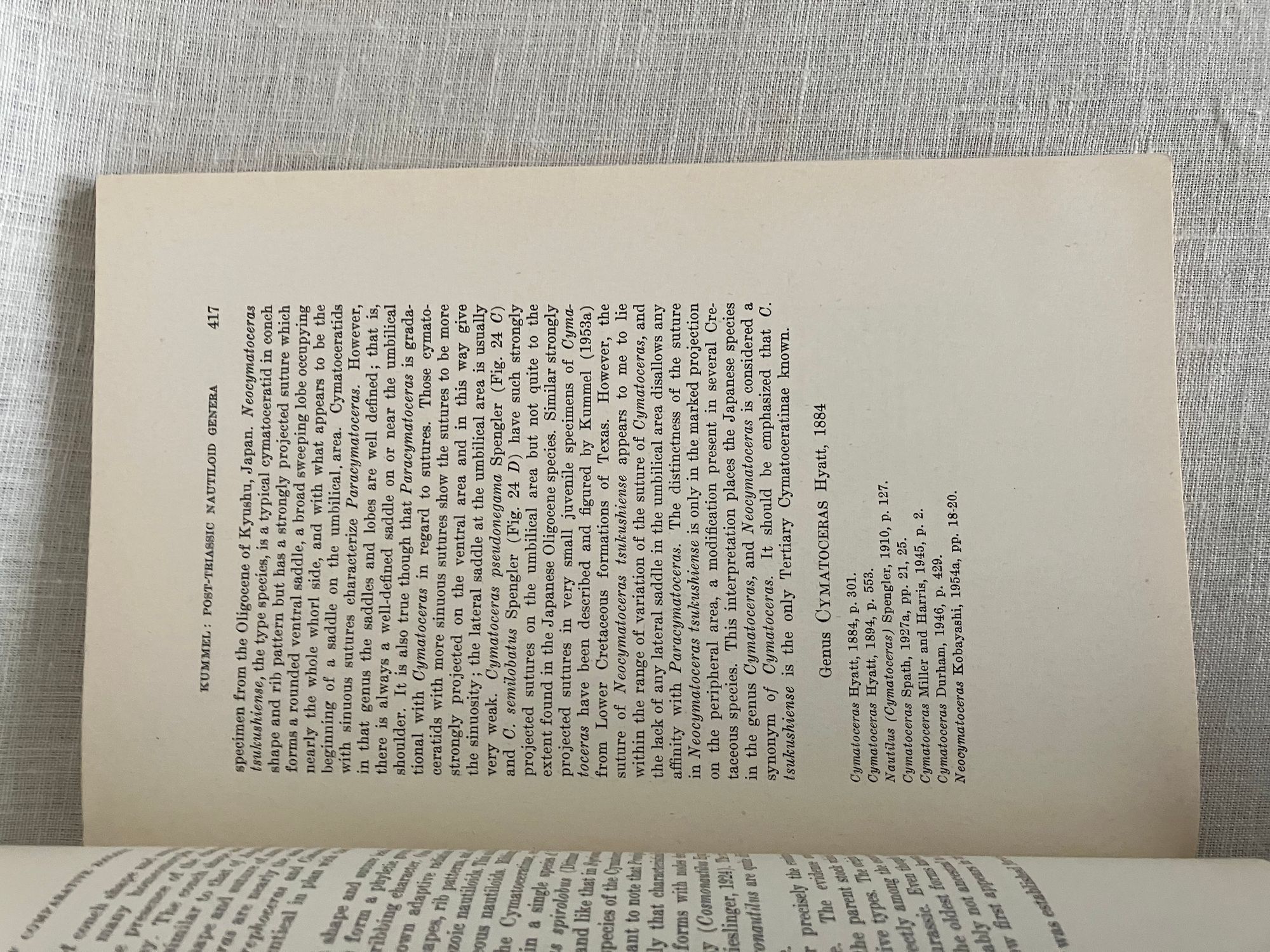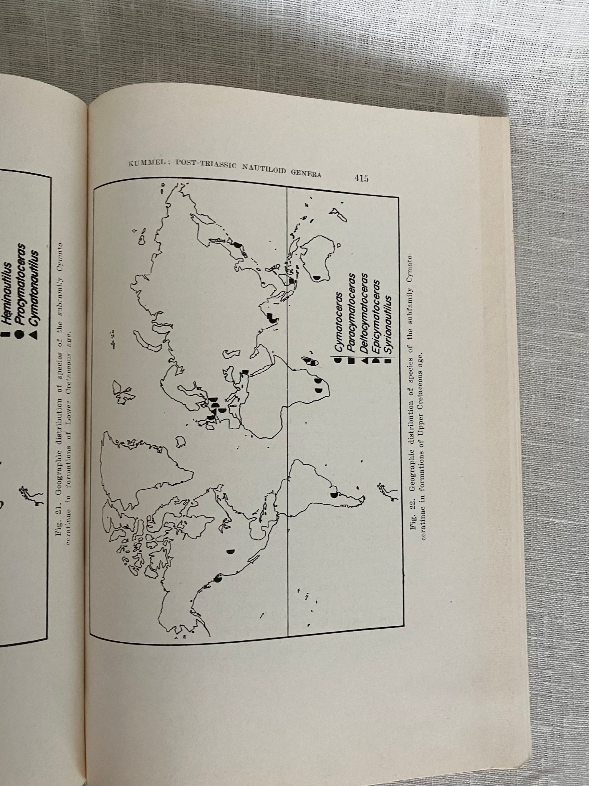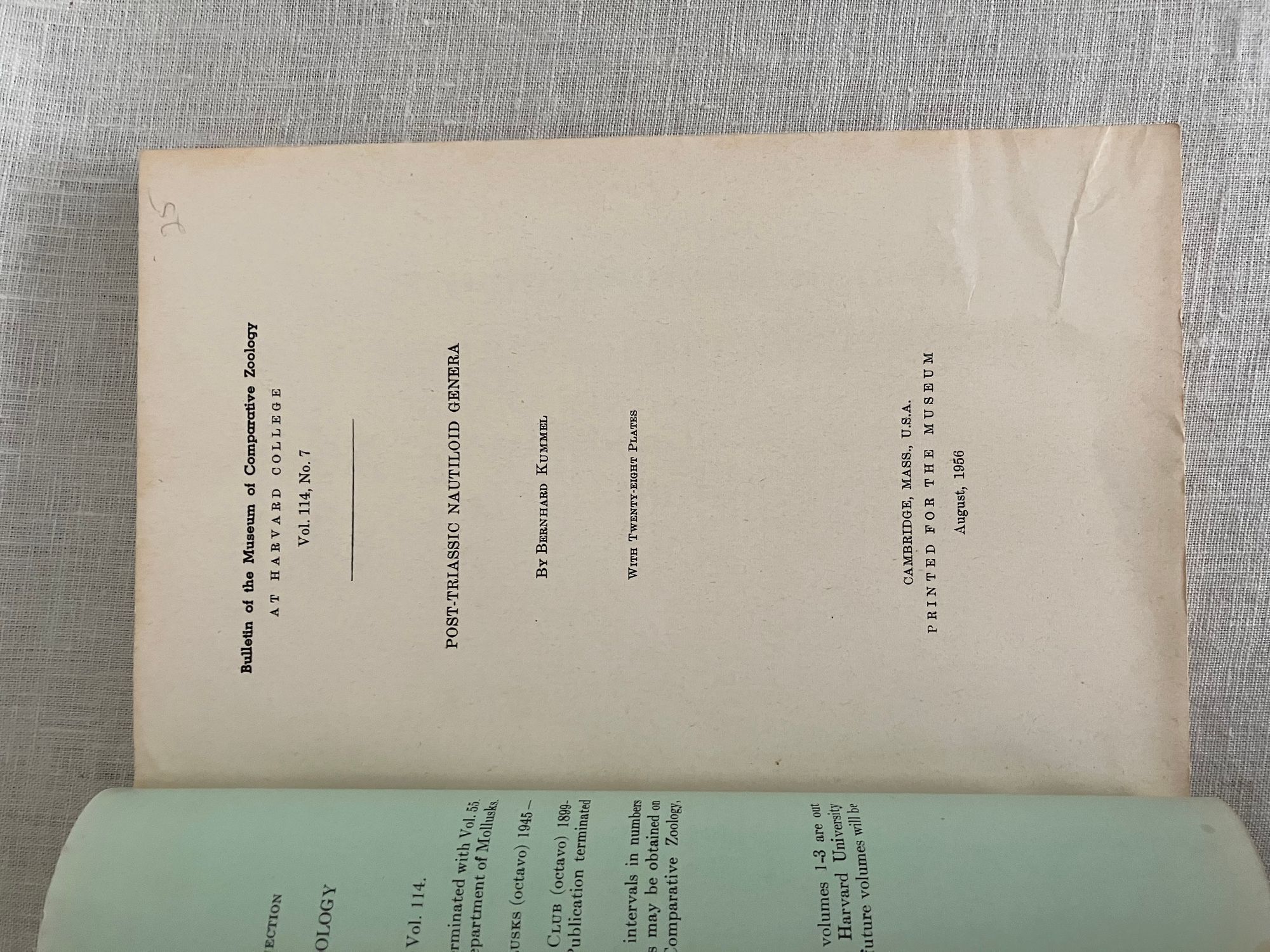 Soft Cover, 8vo, in light green paper wraps, pp. 325 - 494 plus 28 pp. full-page black and white plates. Line illustrations, maps and other charts within text. Condition: Very Good. Wraps show sunning on all sides, especially at spine. Soiling to bottom of front wrap and contents page, as seen. Otherwise, item is sound, and has mild toning. **The evolutionary history of nautiloid cephalopods is traced through different eras, and reasons for their near-extinction are discussed. The Author, Dr. Kummel, was Professor of Geology at Harvard from 1952 to 1980. His work here re-considers samples held and first delineated by Dr. Spath at the British Museum in a1927 publication on the subject.