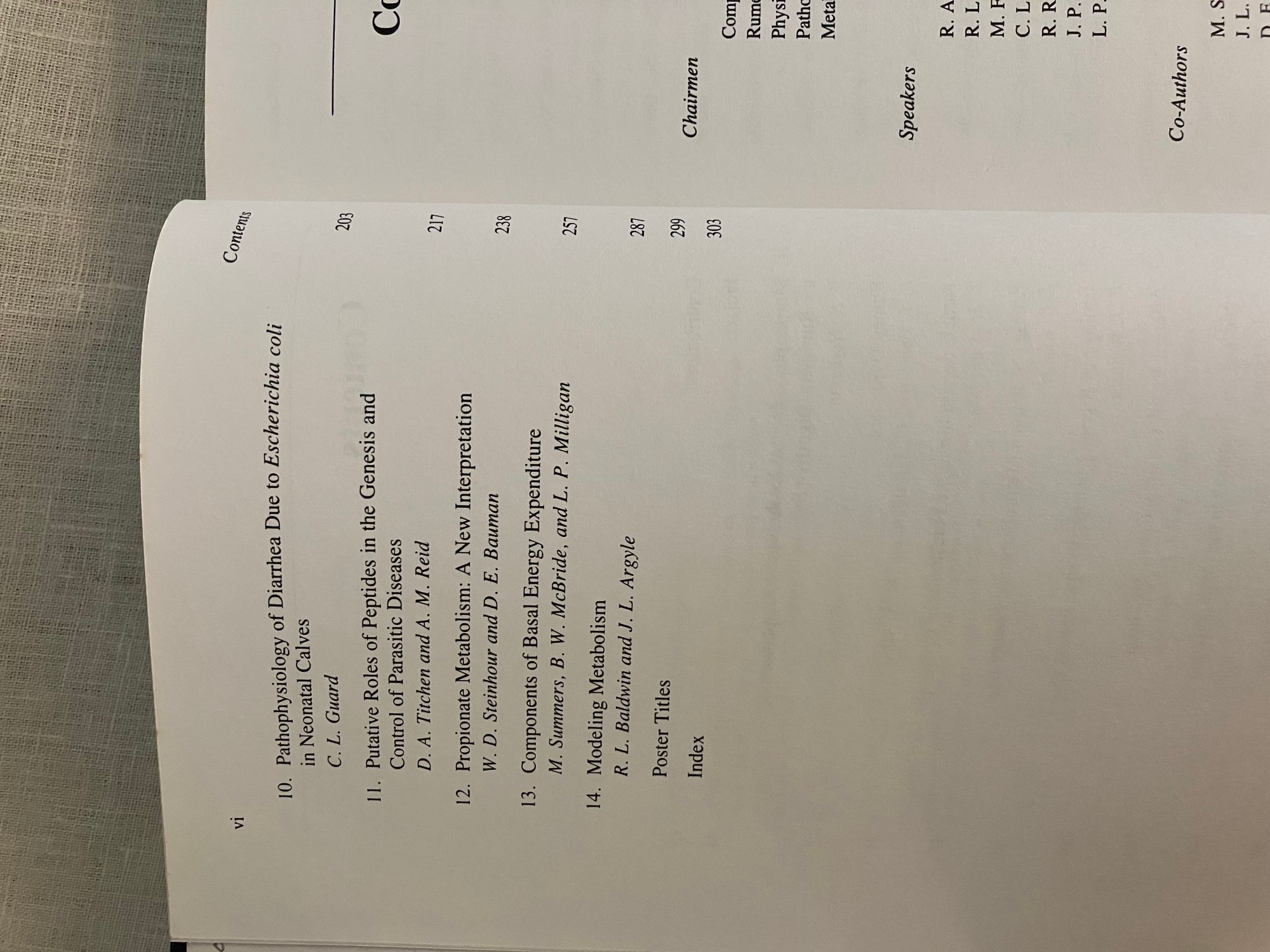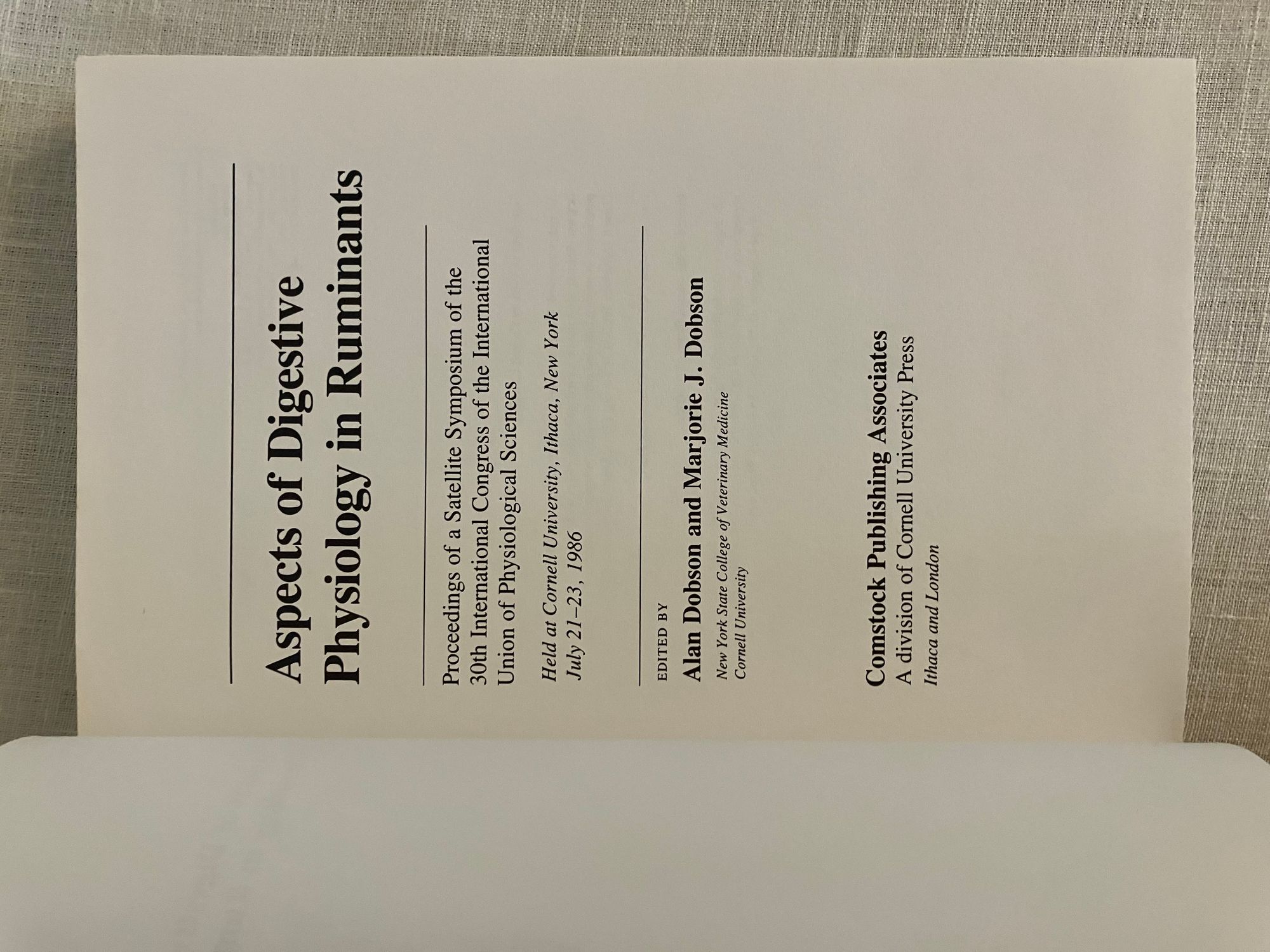 Hard cover, 8vo, in blue cloth blocked with gold titles to front and spine, 311 pp. Condition: Near Fine. Some foxing to top edge of text block. Purchase note of a former academic owner pencilled to front pastedown. Otherwise, clean bright and tight.** A collection of 14 papers delivered at a symposium entitled "Comparative Aspects of Physiology of Digestion in Ruminants" at Cornell University in July, 1986. Topics of interest to researchers and graduate students, in the areas of microbiology, physiology, and metabolism. (Cornell University has a well-known agriculture and farming program.) Includes many line illustrations, graphs and charts concerning deer and cattle. Titles and authors shown in photos.
