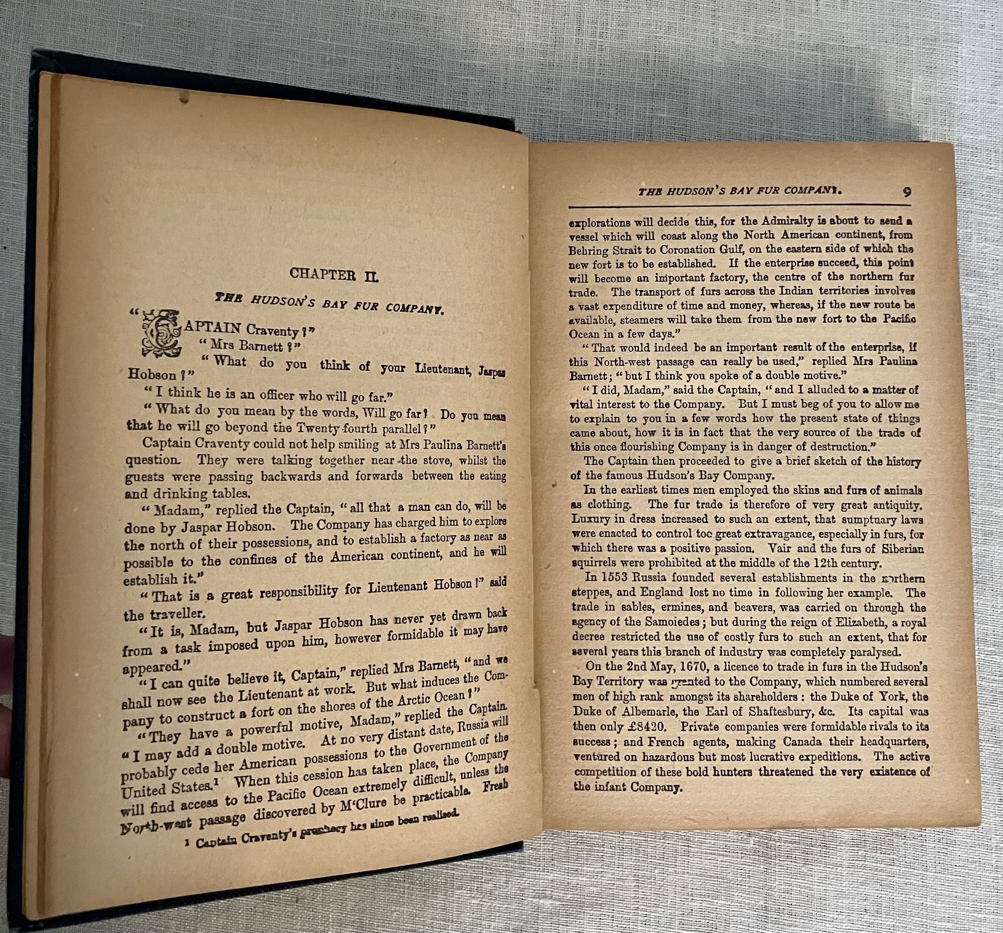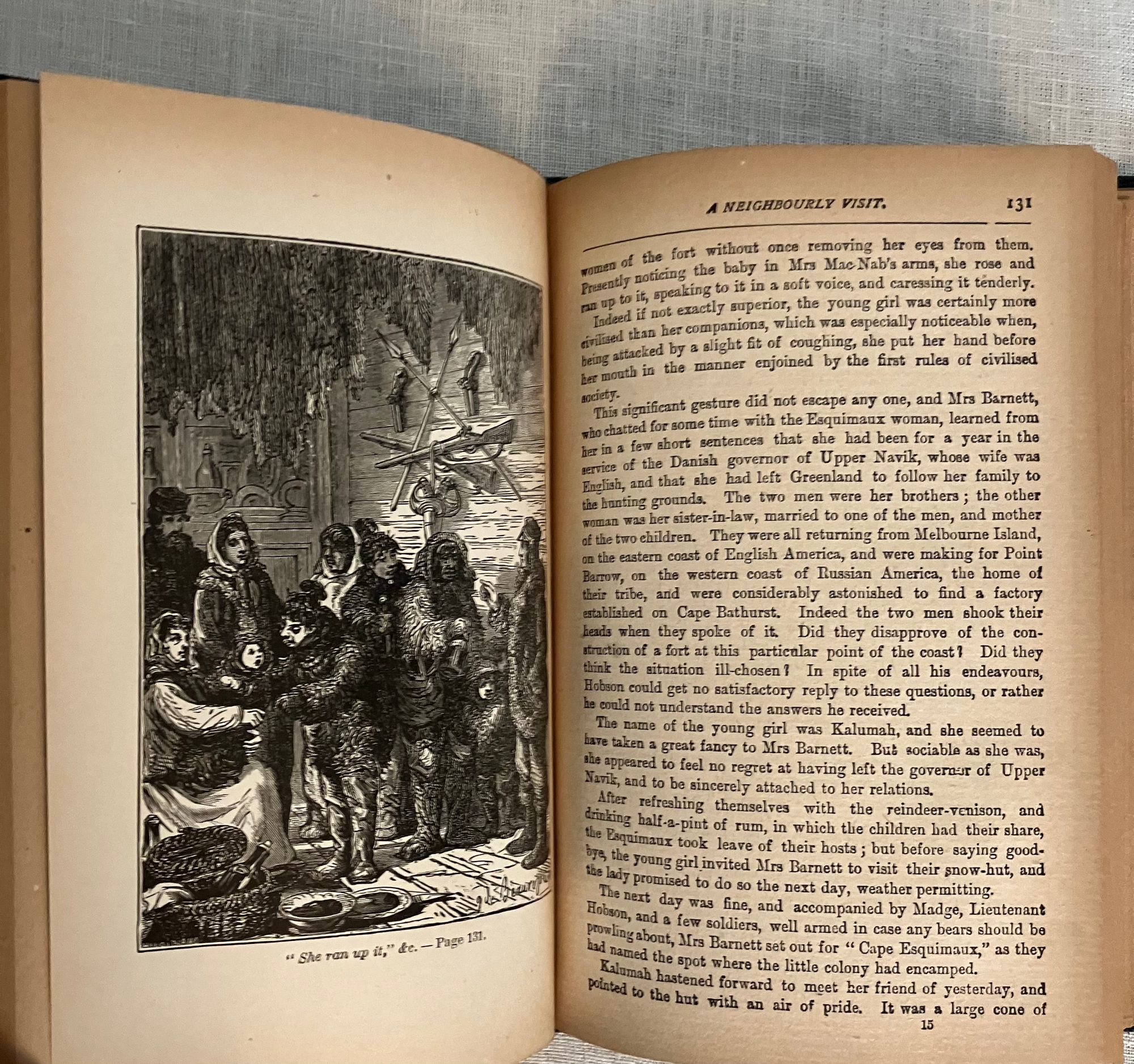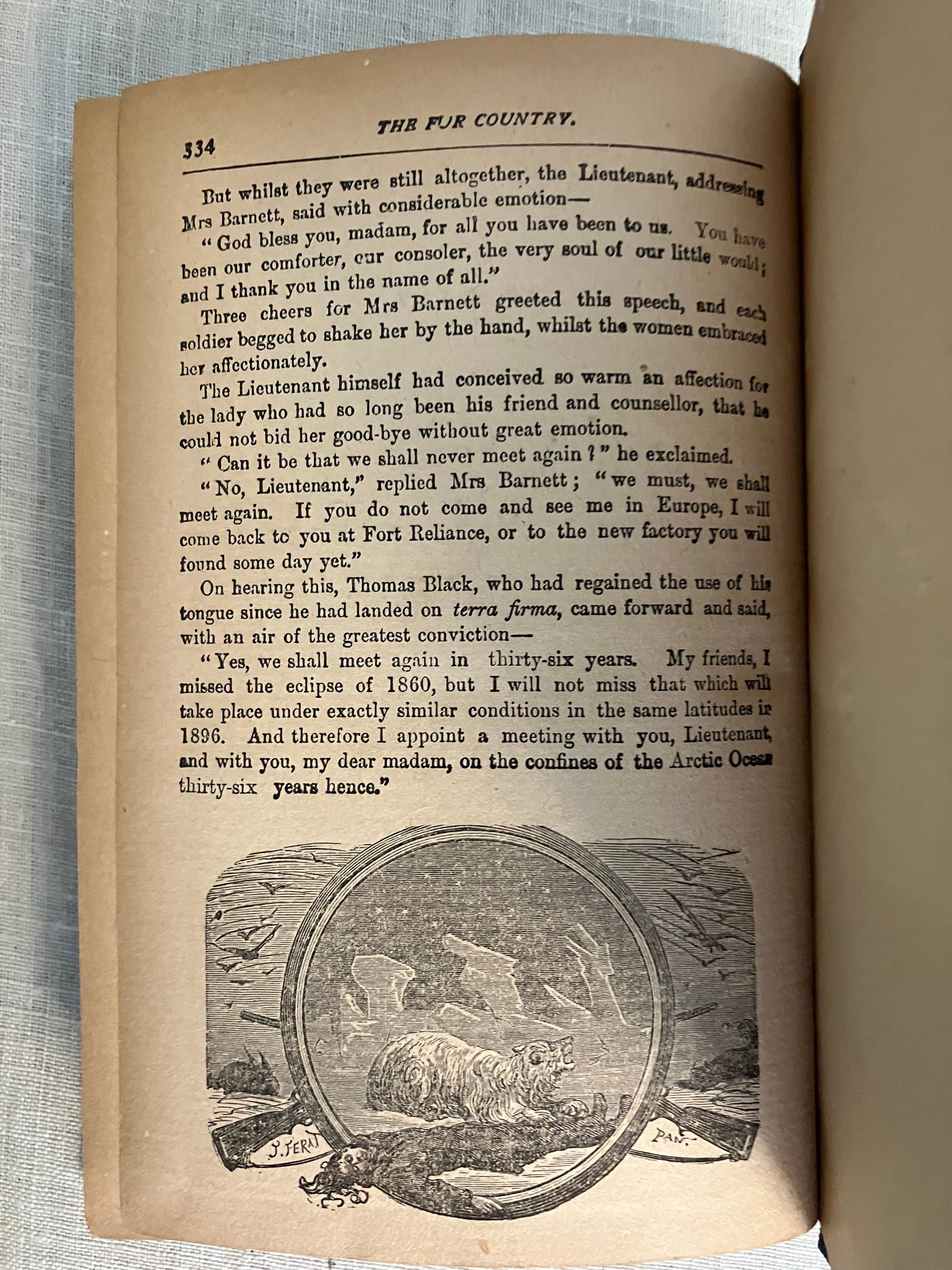 Presumed early reprint (probably unauthorised), with 1873 stated on the dedication page. Hard cover, 12 mo, in blue publishers' cloth with title and author's name blocked in gold to the spine, pattern printed end papers, frontispiece plus 9 of the twelve listed full page illustrations. Quality of type and illustrations suggest anastatic printing, i.e. pirated copy. (7) (1-334 pp.) (1). This edition does not specifically appear in Arthur B. Evans's bibliography of Verne's works online, but the wording is consistent with the first English translation from the original French by N. D'Anvers, the pen name of Nancy Bell, and her dedication page appears among the prelims, dated 1873. Other later editions were translated by others. Originally serialized in France during 1872 and 1873.**Condition: Good. Light marks to boards, very slight fraying at tail of spine. Pages quite toned. Hinges in order, and otherwise clean with no writing. Defect on one page, possibly from time of printing - it looks like a narrow strip of the back of the illustrated page opposite has been transferred to p165 (affecting text, which is still legible). **This adventure story has the main character, Jasper Hobson of the Hudson's Bay Company, traveling from Fort Reliance deep into the Arctic Circle with a mission from his employers to establish a northerly post at Fort Bathurst. There is much description of the native wildlife on their long excursion to the edge of the Arctic Ocean. But strange, otherworldly events begin happening -- a volcano and earthquake, strange tidal variations, an unexplained eclipse begins And then the party finds itself drifting into peril upon an iceberg...**The work of the French print artist, Henri Théophile Hildibrand (1824-1897) does much to bring the story to life. A good reading copy. Evans, "Jules Verne's English Translations" p.115.