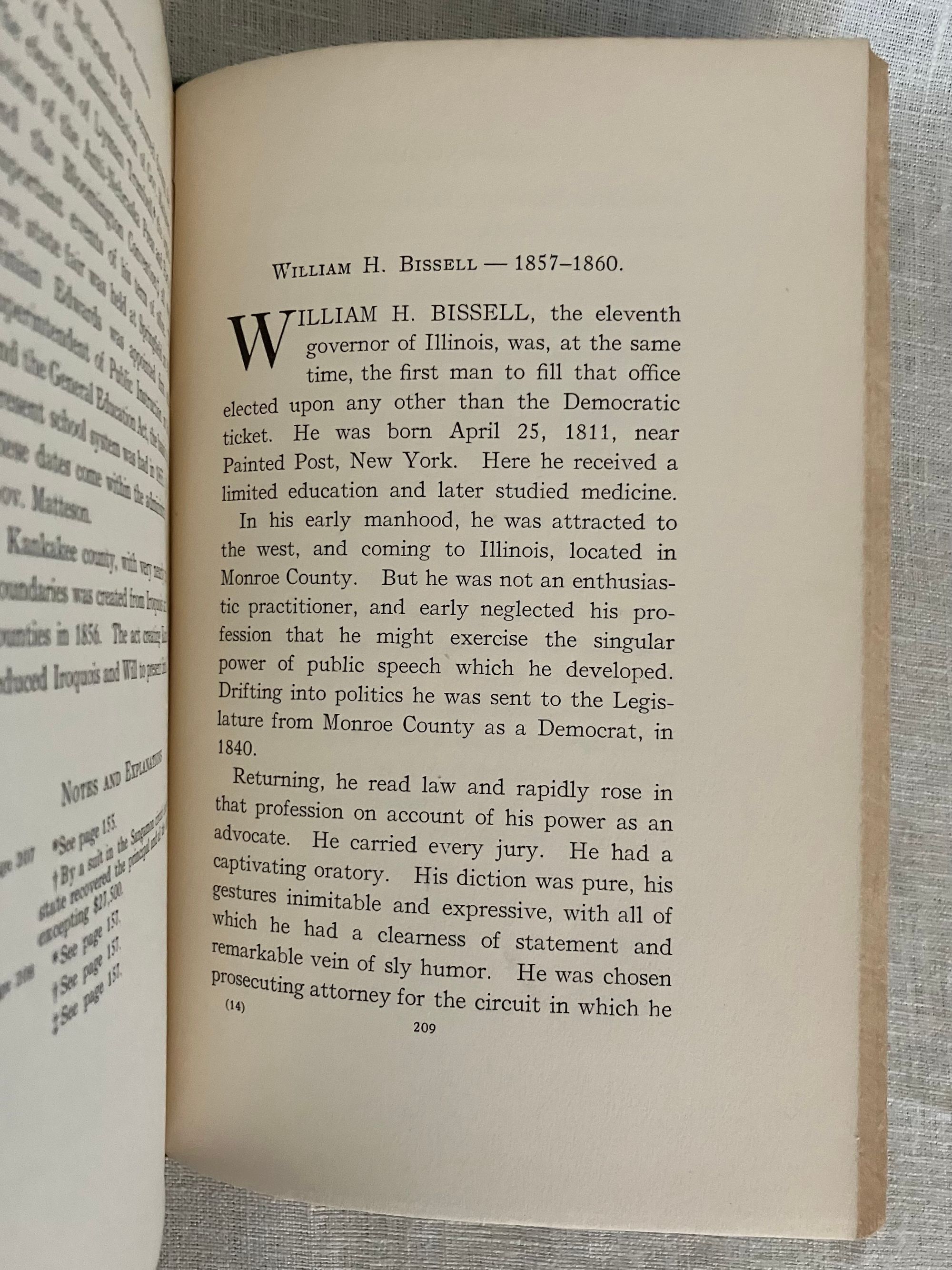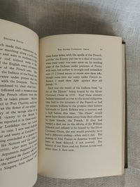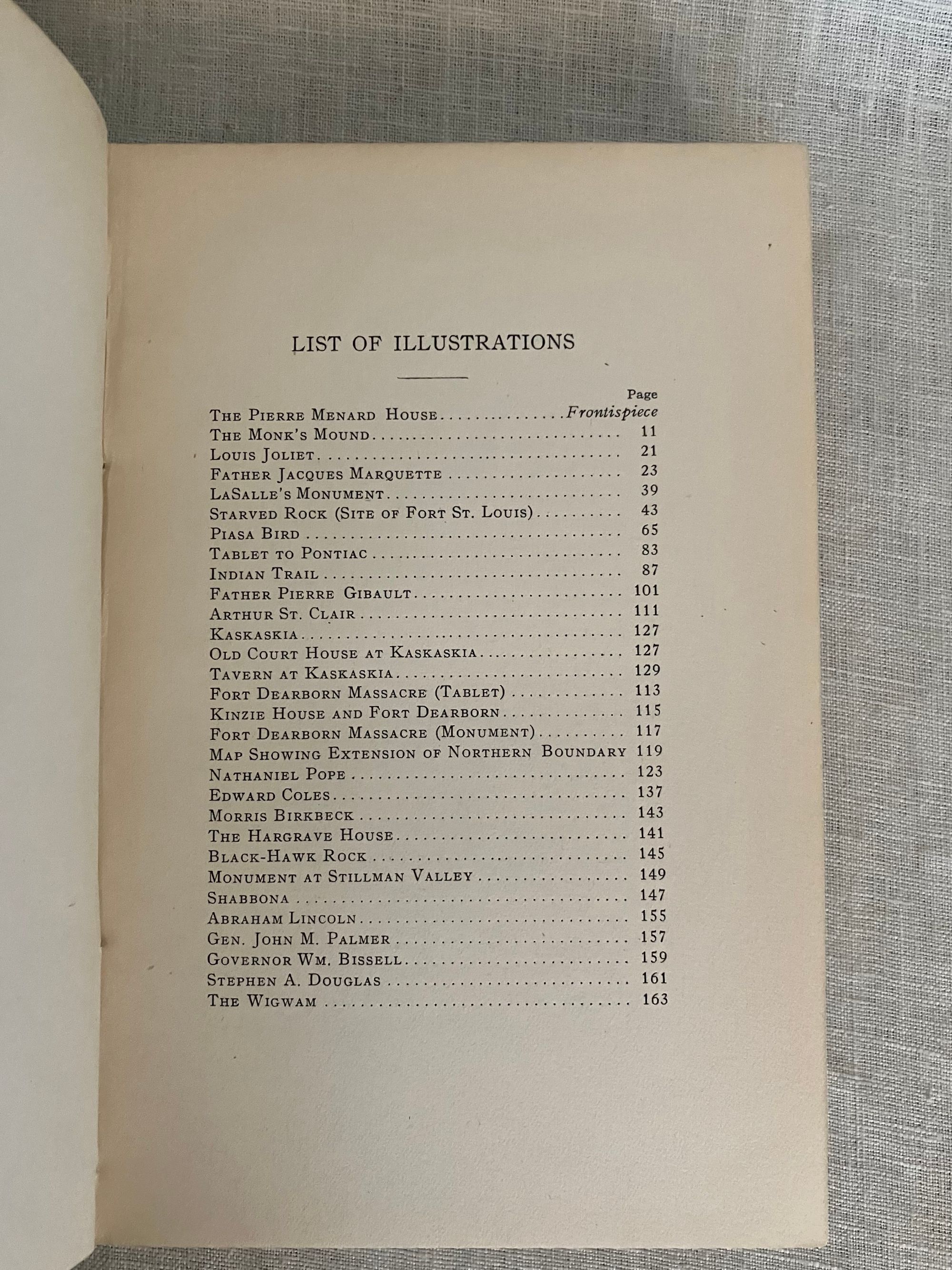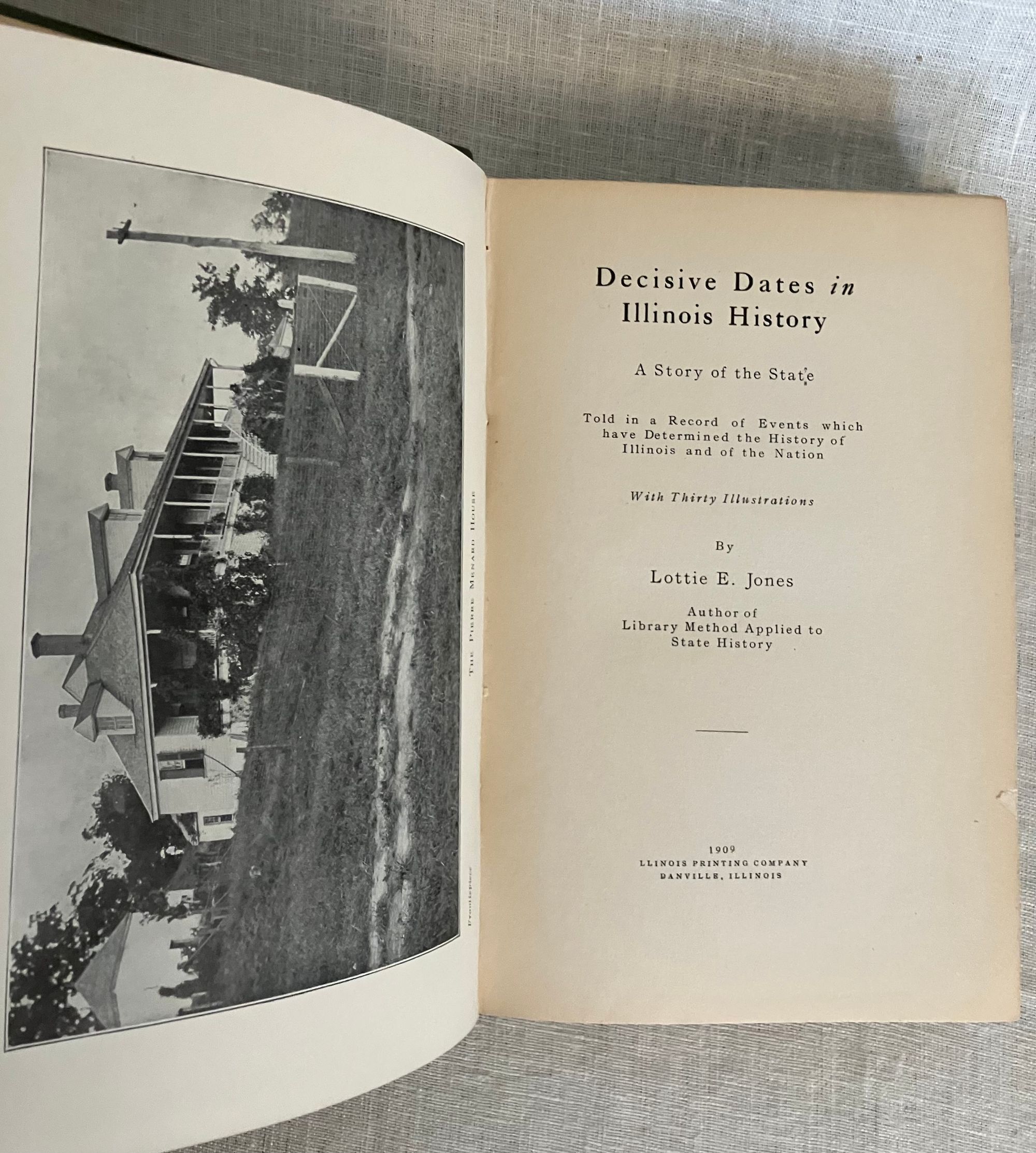 Hard cover, 8vo, in green cloth blocked in dark green gold and black with a pictorial design with the state tree and seal in an Art Deco frame, titles blocked in gold to the spine, 276 pp. Includes a bibliography, primary source quotations, and thirty photogravure illustrations. *CONDITION: Very Good. Minor wear and some rubbing to spine at head and foot. Titles a bit faded to the spine. Inside, last signature shaken. Hinges in order. Engraved bookplate former owner to front endpaper. Now in mylar. ** Ms. Jones makes a case for the importance of the early French explorers, missionaries, and traders (Joliet, Marquette, La Salle) of the Mississippi Valley in the seventeenth century. She argues that the economic interests of the English were otherwise geographically engaged, leaving the area open to French influence. She argues that the enmity between the Algonquin and Iroquois was a buffer to conflict between the competing European interests of the colonial period. She further argues that Illinois's eventual status as a non-slave State affected the balance of power leading into the Civil War. Chapters are thus arranged by key events and inclusive of primary source quotations.