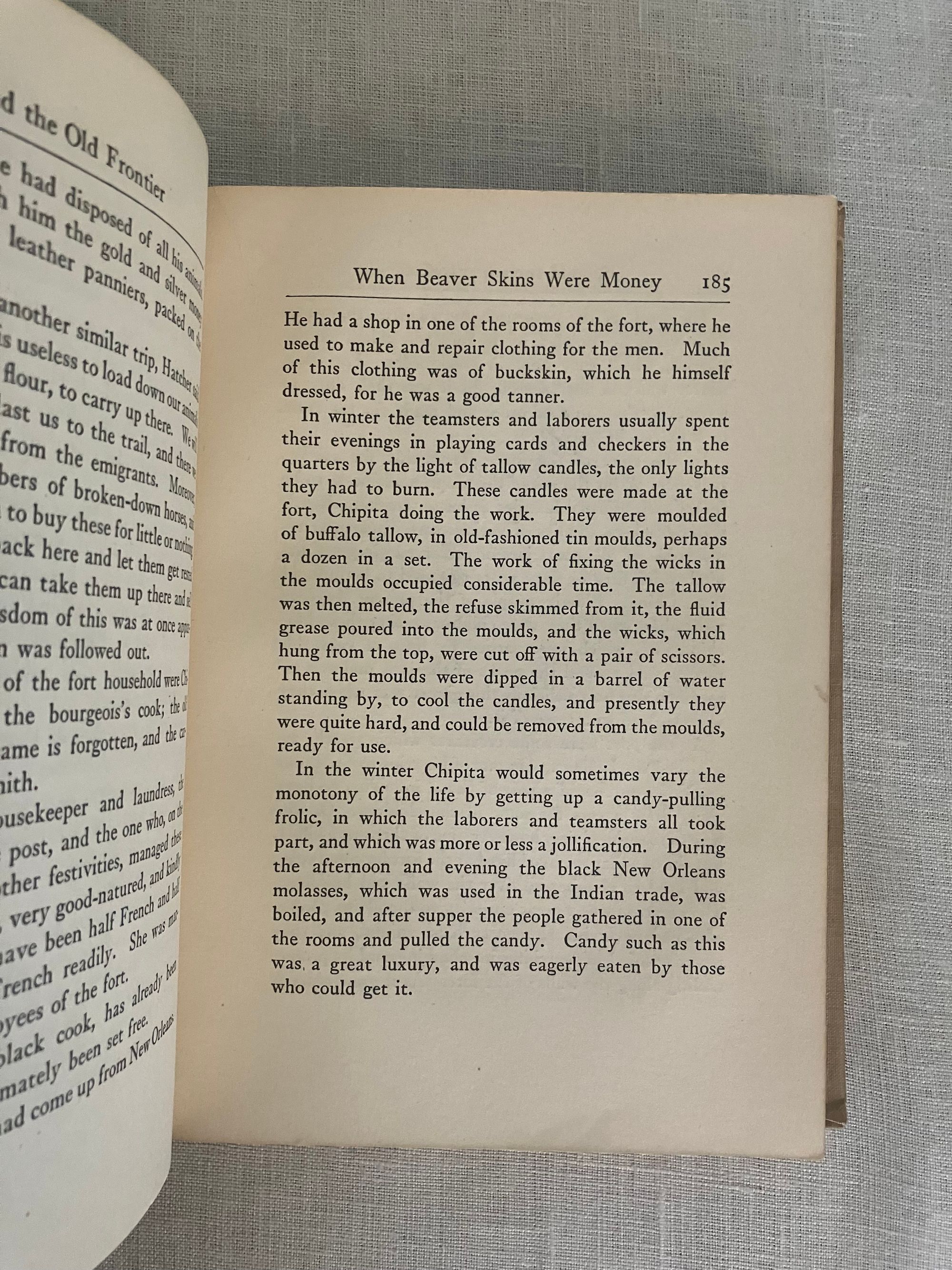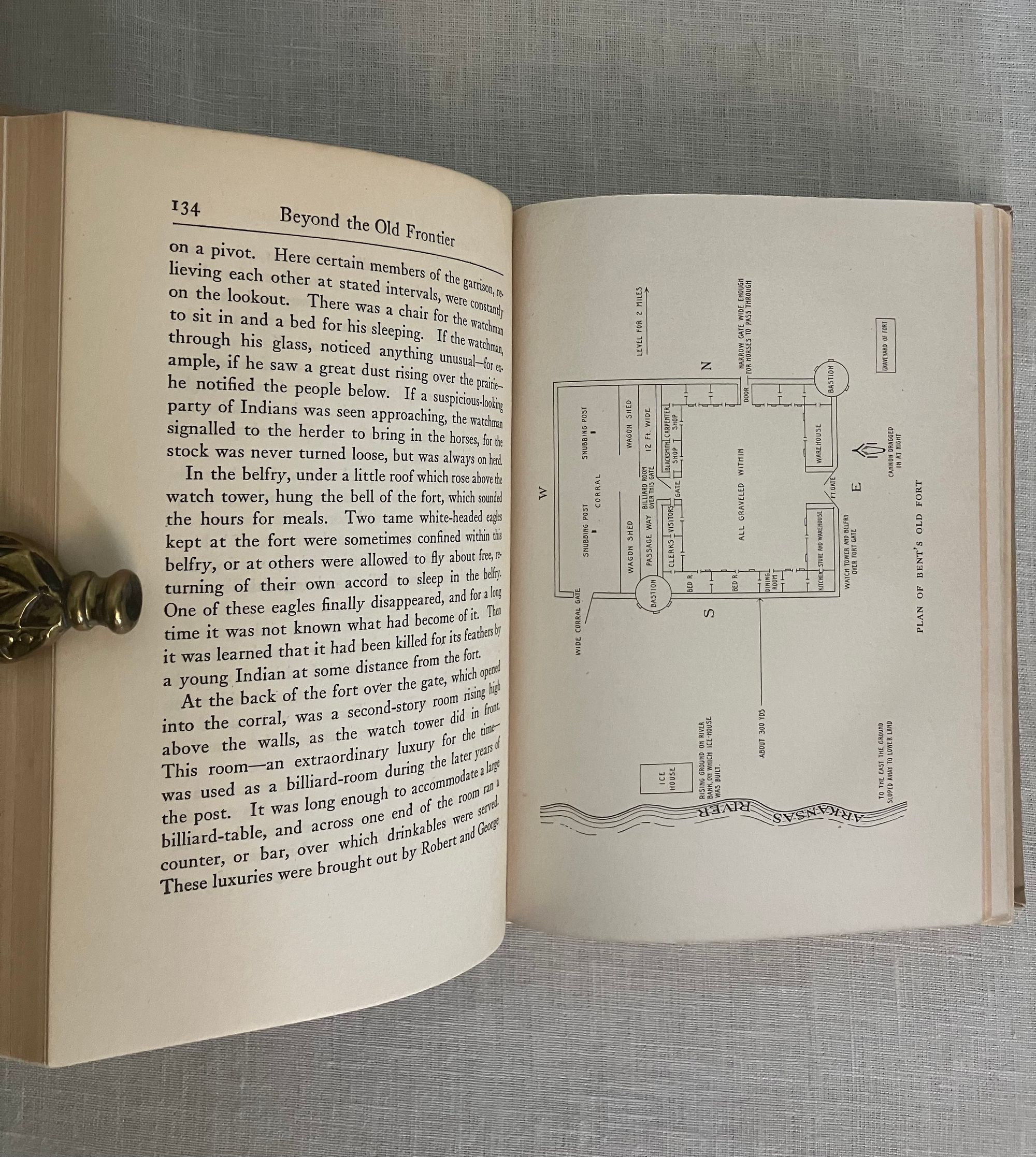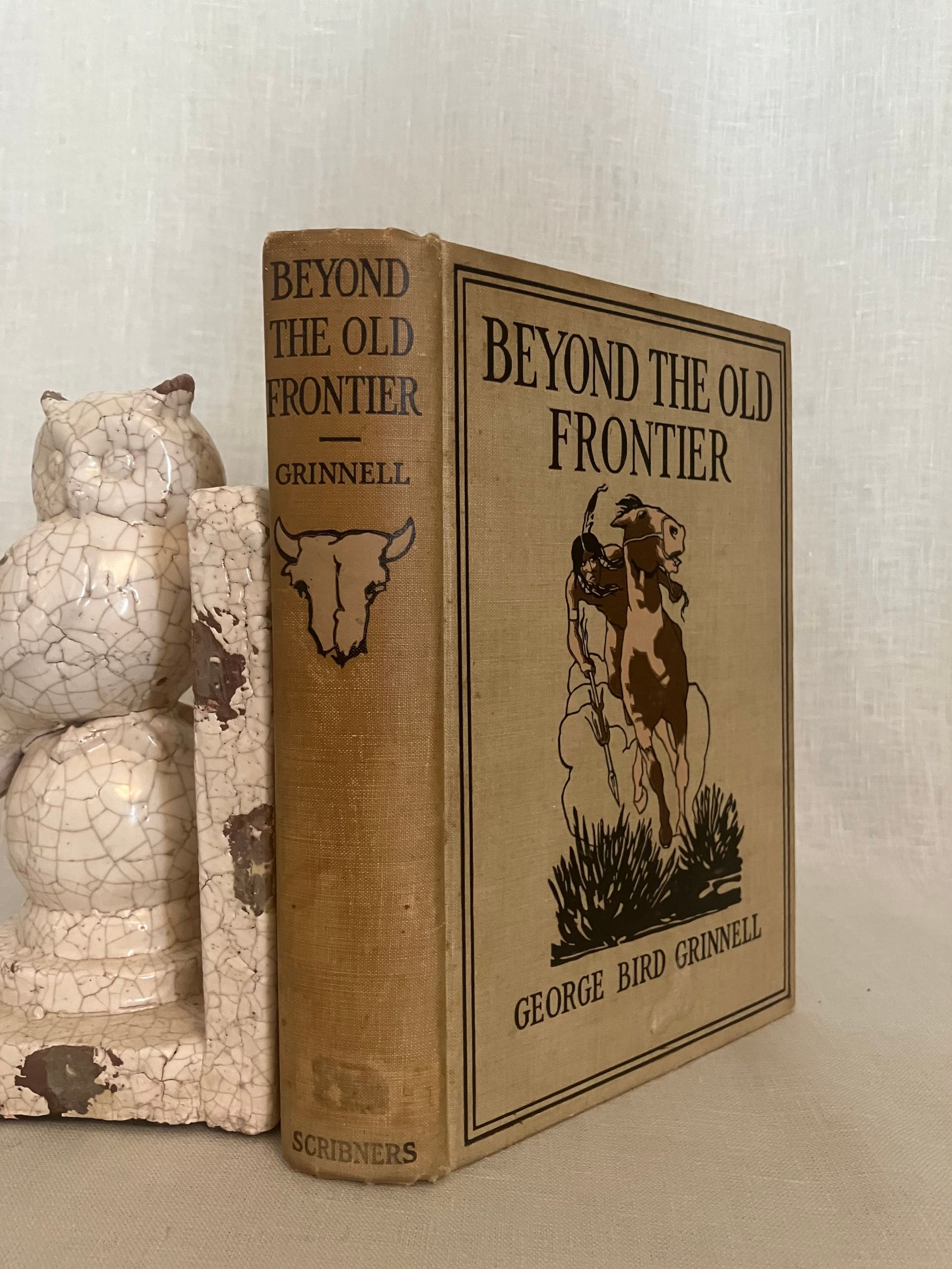Hard cover , 8vo in cream decorated cloth blocked in pictorial design of black, brown and tan, presumed ex-library. xii, 374 pages, 18 unnumbered leaves of plates, with illustrations, a map, plans, and portraits, First Edition. CONDITION: Very Good. Some light marks to covers but generally very clean, spine a bit darkened, ghost of tape library label to foot of spine, top of text block shows foxing while other edges are clean. Inside, front hinge reglued. Remains of a large label to front pastedown. Text lightly age toned but clean and firm. **The New York-born Author George Bird Grinell (1849-1938), Yale-educated anthropologist, historian and naturalist fossil hunter, presents a popular, (rather than scholarly,)book about the struggles in settling the lands beyond the Mississippi in the first half of the nineteenth century. He writes about the fur trading posts along the Santa Fe Trail, the mania of the gold rush in Colorado and Montana, and the dangers and travails faced by westward travellers in days before the railroads. Some of his material is repurposed from other authors: George Ruxton's descriptions of Colorado's fur trading at Bent's Fort, for instance, and Louis Garrand's descriptions of living with the Cheyenne in 1846. Includes chapters on Kit Carson and General Stephen W. Kearny. Grinnel wrote extensively about the Cheyenne and Plains tribes indigenous people. After studies with the Audubon family, he travelled with Custer's 1874 Black Hill expedition as a naturalist, and was later was a founder of the Audubon Society. His conservation work was influential in the creation of the Glacier National Park. Ref.: Jack D. Rittenhouse, (1971), No. 259, p. 113. OCLC 2516580.