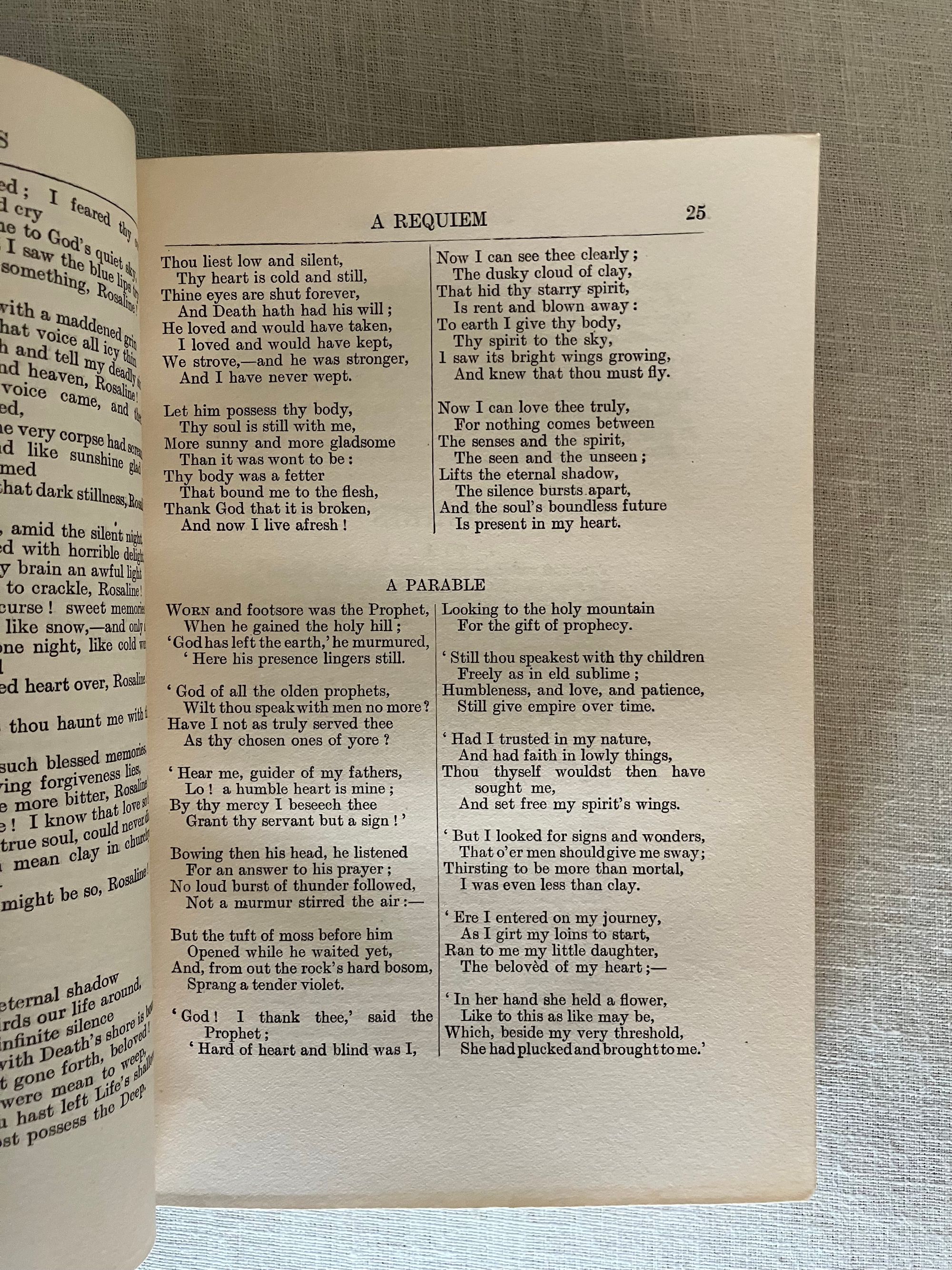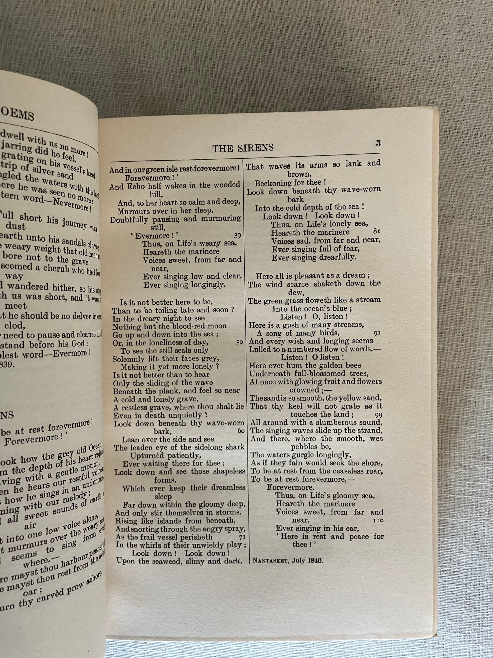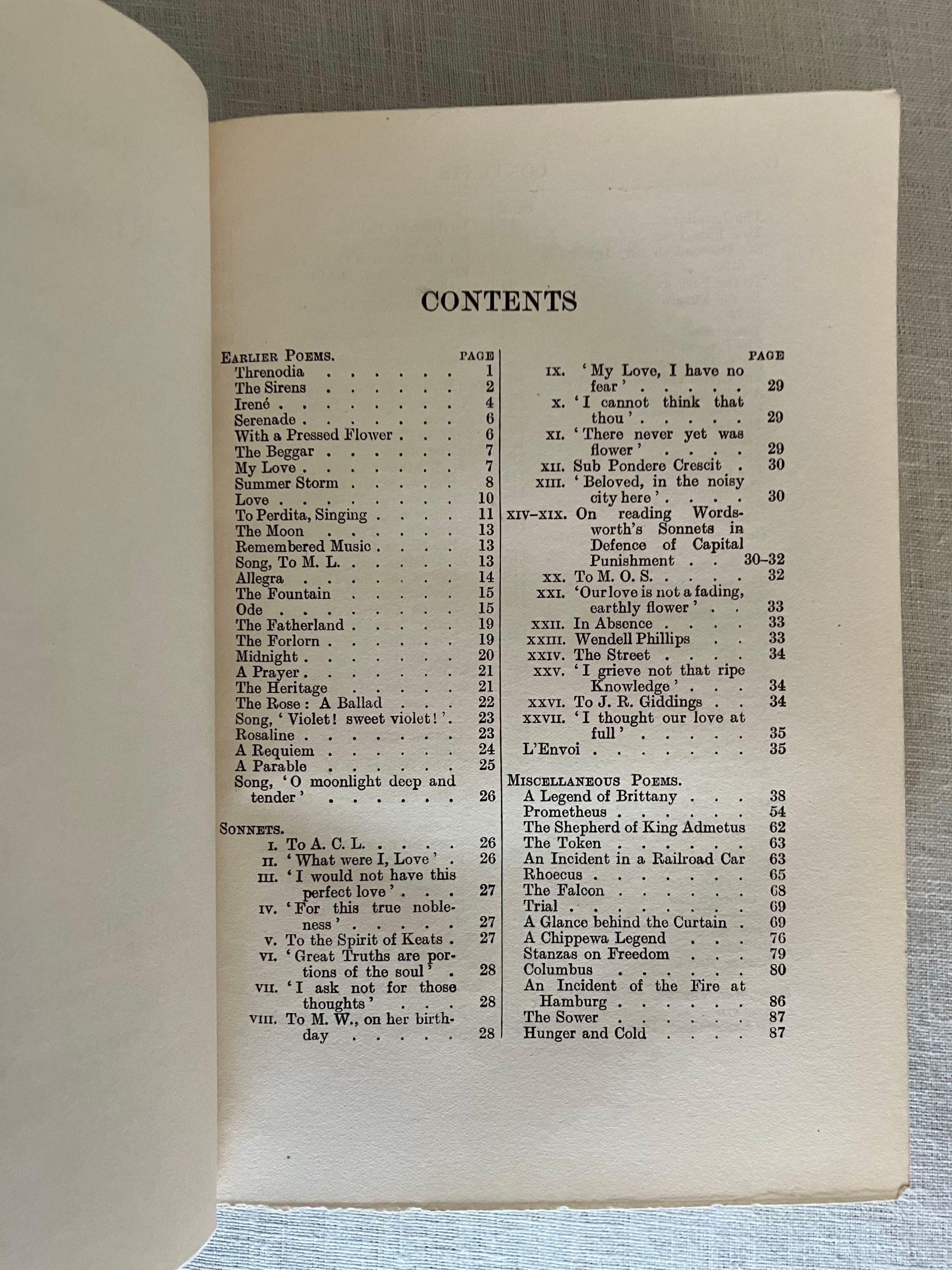 Hard cover, 8vo, finely bound (no signature) in three-quarter green morocco over green cloth gilt, the spine with five raised bands, with compartments tooled with a central roundel, leaf motifs to corners, joined by lines of small circles. Top edge gilt, new marbled end papers and prelims, a modern bookplate to prelims, laid in tissue guard to the frontispiece author photogravure portrait, text in two columns. Contents iii-vi, Poems 1-614, Appendix 615-619pp. Green silk ribbon bookmark intact.**CONDITION: Near Fine. Sunning and oxidation to the spine has faded it to brown, also seen partially at top of boards, both front and rear. Lightly worn corners (two bumped,) polish offset to endpapers from the turn-ins. Very light foxing to new prelims. Hinges and joints in order. Pages are otherwise clean, bright and the binding firm. **American Fireside Poet James Russell Lowell (1819-1891) was descended from first settlers of this bookseller's hometown, Newbury (Newburyport,) Massachusetts, his parents being of Scots decent. Lowell, a friend of Ralph Waldo Emerson, has been recognized as an important abolitionist voice in the mid-nineteenth century, both as a journalist, and poet. Born in Cambridge, Mass., Lowell was educated at Harvard College, graduating with a notably ropey academic record, however voted Class Poet. He would later become Professor of Languages at that same institution. Later life led him to editorship of The Atlantic Monthly and ambassadorship to both Spain and Great Britain. **Provenance: Ex-libris Alexander Stone, (1907-1998) Scottish lawyer, bibliophile, and benefactor to Glasgow University (with his bookplate.) Ex- Libris Christopher Foyle, of Beeleigh Abbey, late book collector and former CEO of Foyles Bookstore in Great Britain. Founded at the Charing Cross Road location in London in 1903, Foyles grew into a large chain in the twentieth century, selling to Waterstones in 2018. [BAL 13248 refers to a later reprint of this edition.] (2.13lbs)