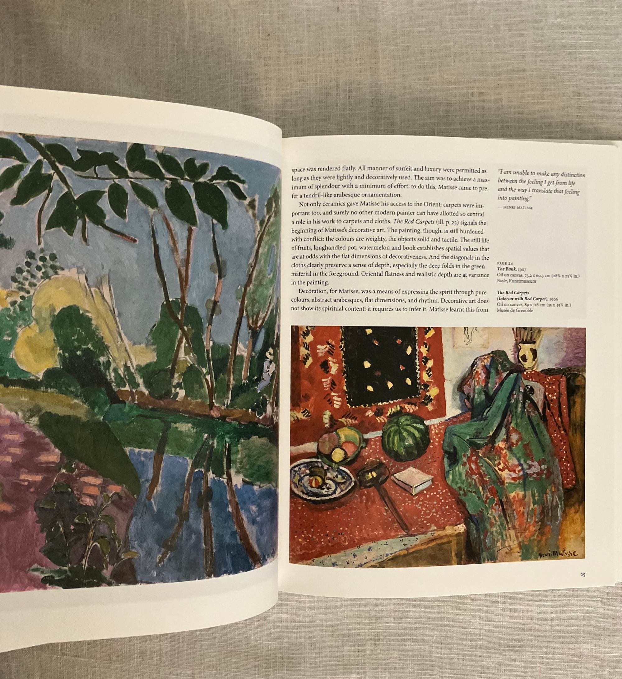 Reprint. Hard cover, 4to, in color printed illustrated boards, with dust jacket, 95pp. with many color illustrations and art historical text. Chapters include: In Quest of Pure Colour 1869-1905, Realism and Decoration 1906-1916, The Intimacy of the Nice Period 1917-1929, Beyond Spatial Limits 1930-1940, Matisse's Second Life: An Art of Grace 1941-1954 and Henri Matisse 1869-1954 Life and Work. Fauvism. CONDITION: Fine, like new, in an unmarked, unclipped d/j. Part of the Basic Art Series, originally published 1987. From the blurb: "Each of these little books have slick production values, excellent illustrations, and smart texts. Each one is a fast-food, high-energy fix on the topic at hand." Originally published 1987.