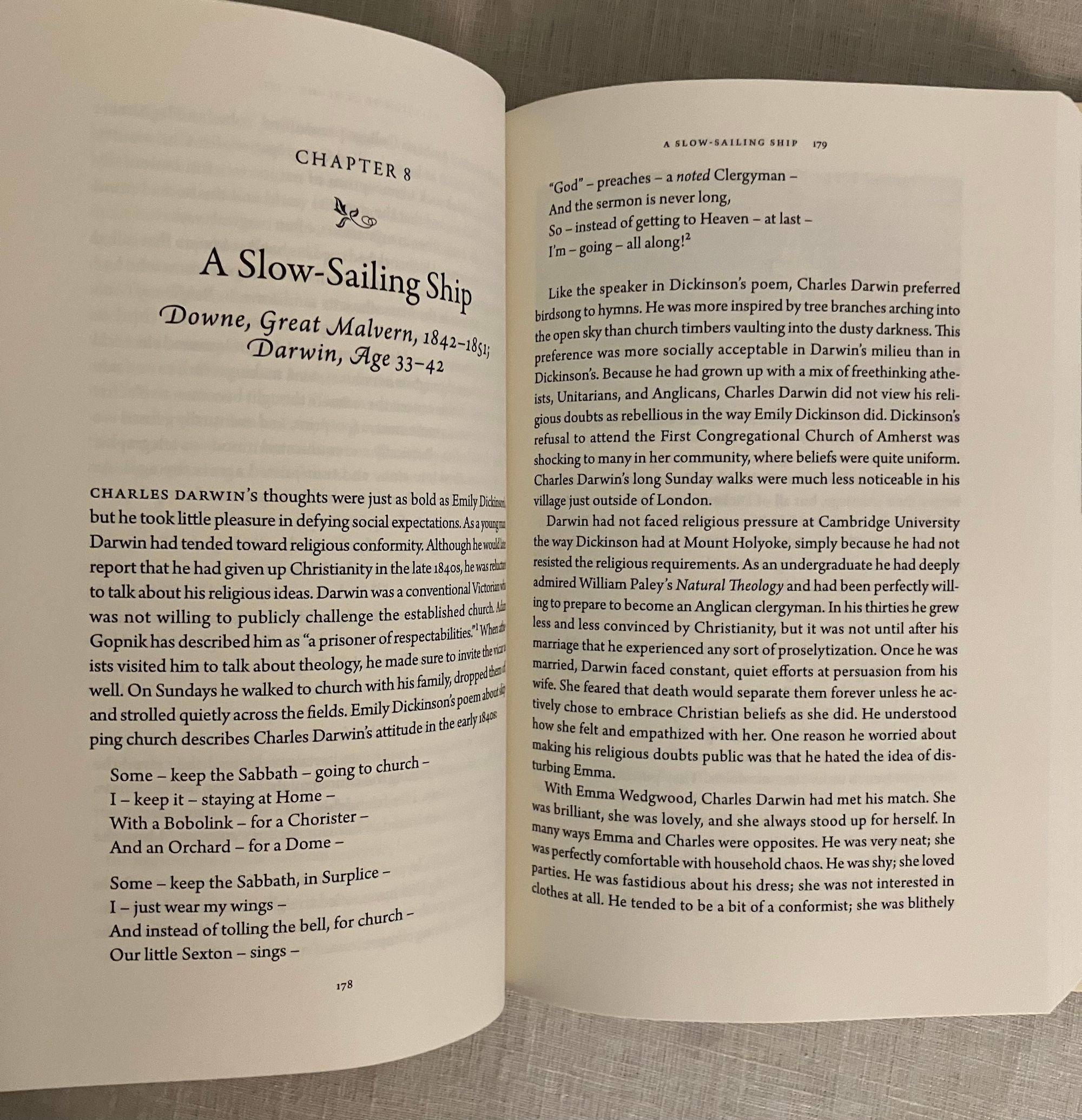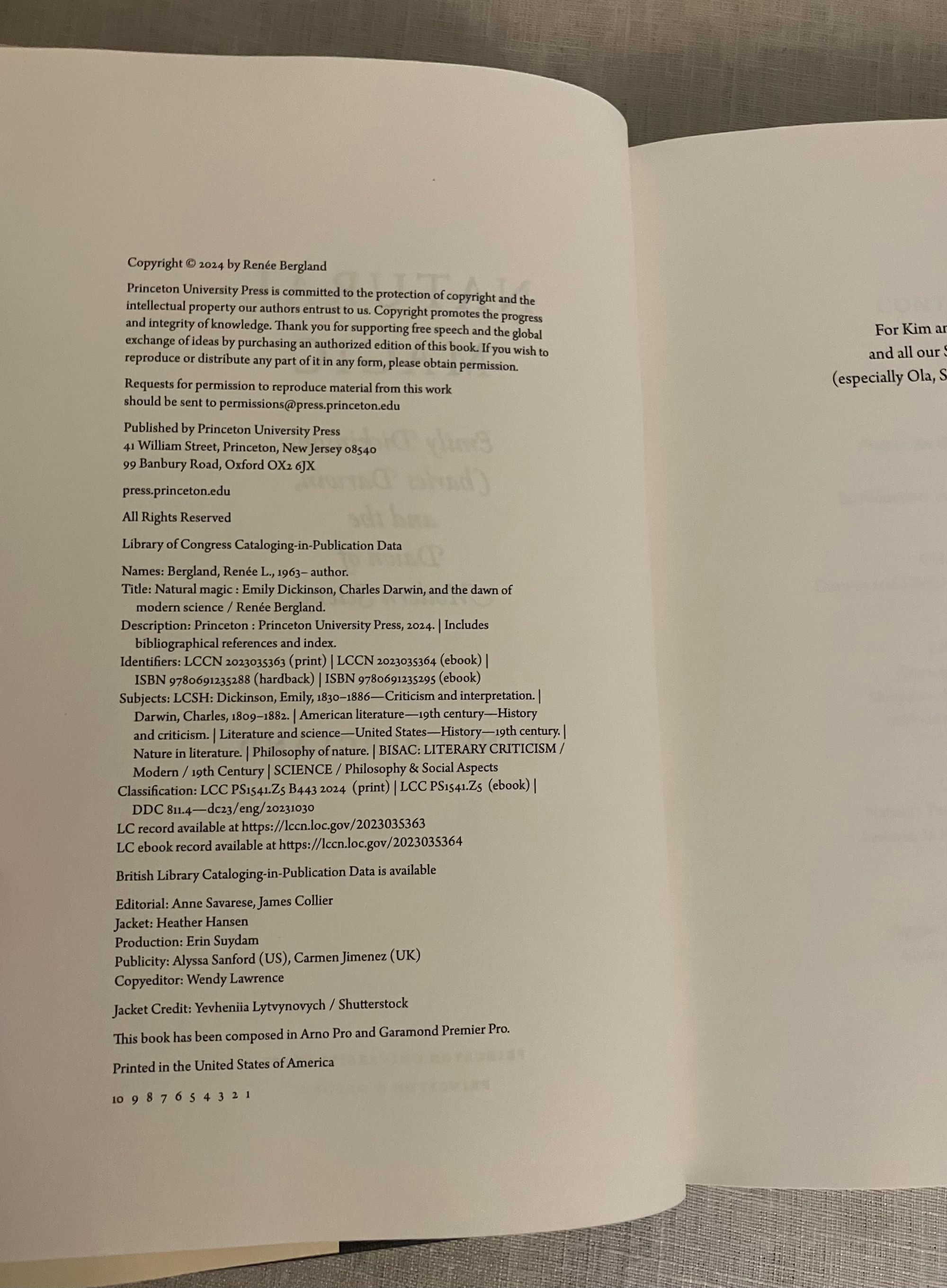 First edition, first printing. Hard cover, 8vo., in black cloth, the titles in gold to the spine, in the original pictorial dust jacket, 418 pp.** CONDITION: Fine, like new, in a Fine d/j. Now in mylar. ** Author Renée Bergland, Simmons University professor of literature and creative writing, explores the philosophical kinship and influence of the works of two of the most creative thinkers of the mid19th-century, Amherst, Massachusetts poet Emily Dickinson and English scientist Charles Darwin. Both were fascinated by the mysteries of nature and both tried to decode it, Darwin using science, and Dickinson with her verse. From the blurb: "Just as Darwin's work was informed by his roots in natural philosophy and his belief in the interconnectedness of all life, Dickinson's poetry was shaped by her education in botany, astronomy, and chemistry, and by her fascination with the enchanting possibilities of Darwinian science." See review WSJ 6/25/24.