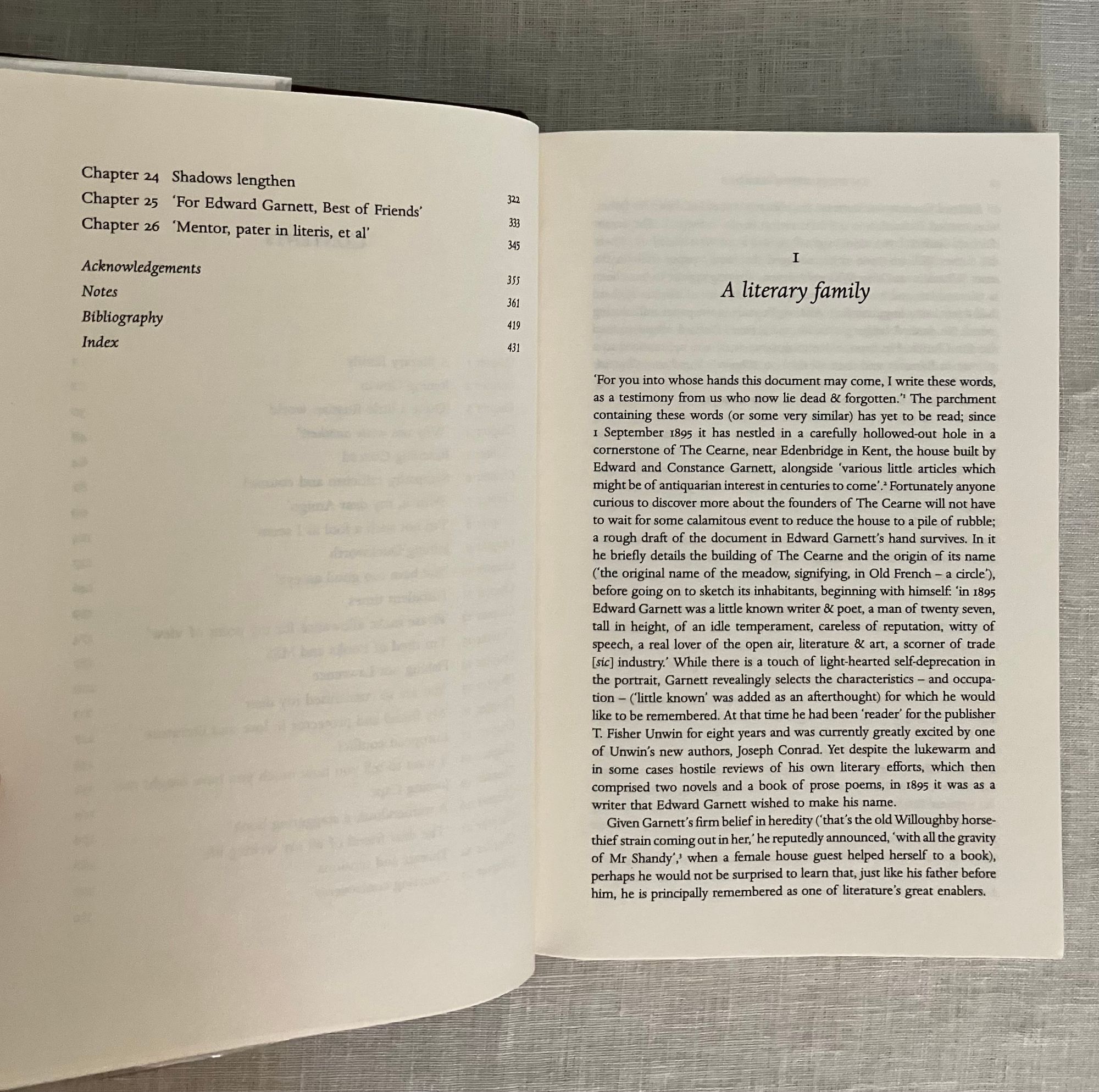 Hard cover, 8vo in brown paper-covered boards, the titles to the spine in bronze, in a pictorial dust jacket featuring a contemporary photo of the subject, 440pp. First American Edition, first printing. CONDITION: Fine, Like new. In a Near Fine dustjacket. **The subject of this literary biography, Edward Garnett (1868-1937), was part of a hugely influential British literary family who's members had connections with some of the most important Modernist authors of the day. His father, Richard Garnett, once a clergyman, was a prominent British Museum librarian, and with his wife Narney held Thursday night literary salons which attracted contemporary authors to their London home. Edward's wife, Constance Black Garnett, translated a number of Russian authors into English for the first time, essentially bringing Chekov, Turgenev and Dostoevsky to a western audience for the first time. Their son, David Garnett, was a founding member of the Nonesuch Press. Edward Garnett was himself a struggling novelist, but known primarily as a "reader" for other publishers, including T. Fisher Unwin and Jonathan Cape in the early decades of the twentieth century. His mentoring friendship with some of the century's greatest authors is mentioned in his obituary in the New York Times (Feb. 22, 1937): D.H. Lawrence, Stephen Crane, Theodore Dreiser, T.E. Lawrence, W.H. Husdon and E.M. Forster. His mentoring friendship with Joseph Conrad, however, was instrumental to inspiring the Polish Russian-Ukrainian èmigrè and political refugee to keep poverty (and writer's block ) at bay at key moments of his career, and this portion of the book is of especial interest in providing details of the various introductions to key figures in this writer's career. **AUTHOR Professor Helen Smith, wrote her prize-winning biography of the modern literary figure Edward Garnett as part of her Ph.D. thesis at the University of East Anglia. The book, published both in the UK and the US, was the joint winner of the Biographer's Club Prize and short listed for the Simply Foxed First Biography Prize, and also the subject of a RSL/Jerwood Award for Non-Fiction. Broad in its discussion of the state of British publishing and bookselling at the turn of the twentieth century; a very readable and informative book.