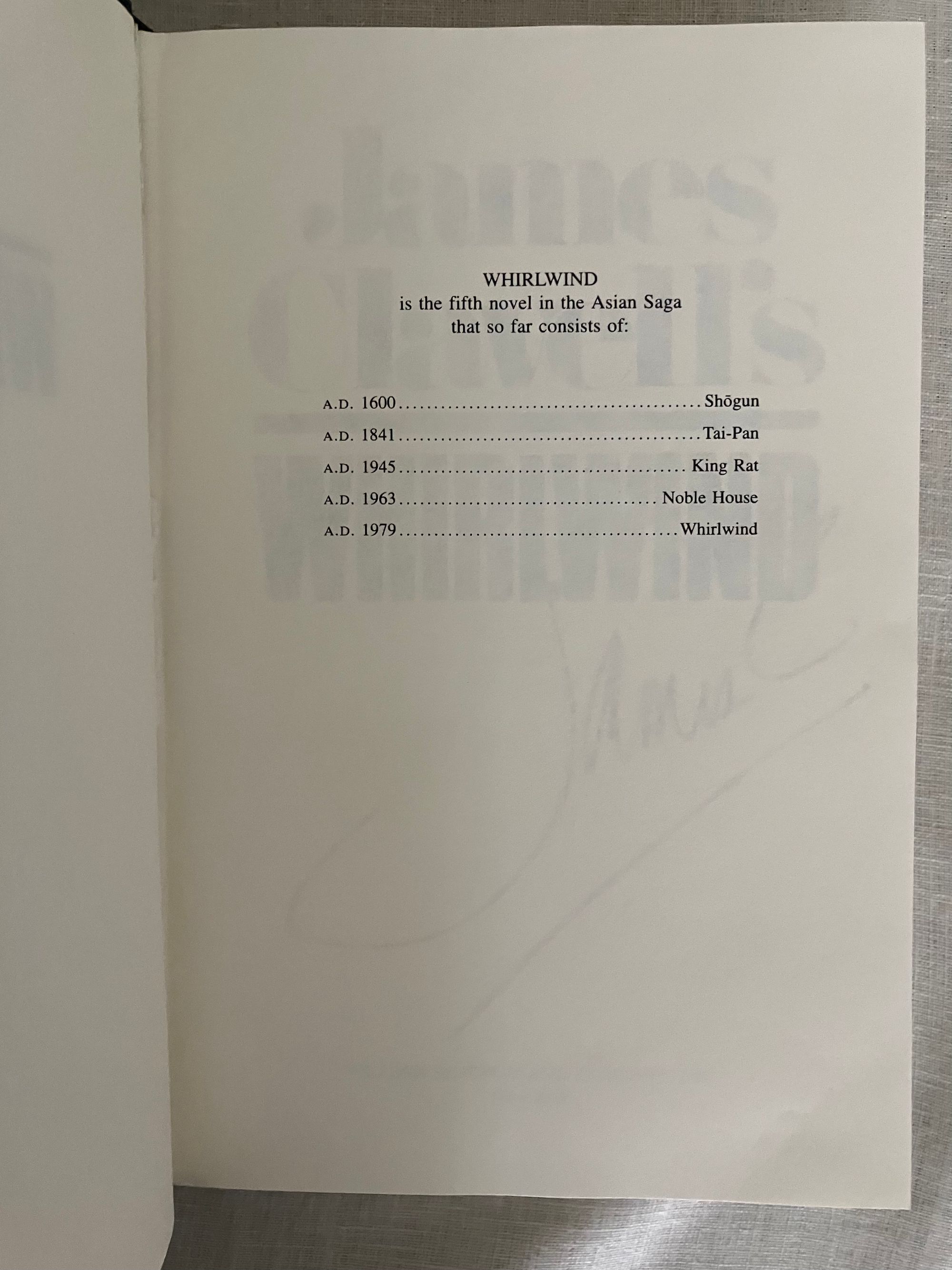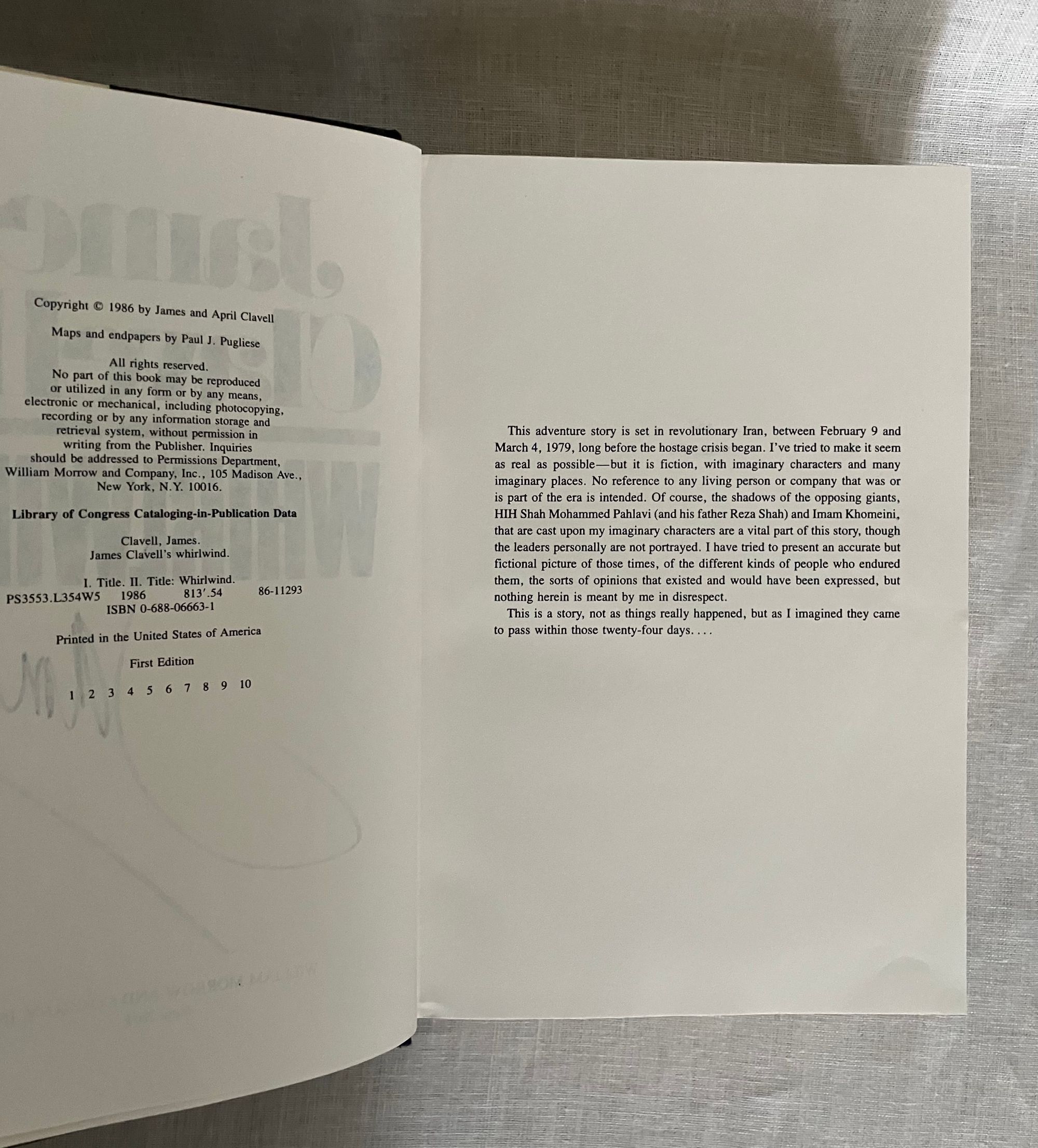 First Edition, first printing, signed by Author (no inscription). Hard cover 8vo, in black cloth with gold titles to front board and spine, with map endpapers, 1-1147 [5]. CONDITION: Near Fine in a Near Fine Dust jacket. This is the fifth published, yet sixth in chronological order of Clavell's epic Asian Saga about the Hong Kong based Noble House trading company. Set against the background of the Iranian Revolution of 1979, the story concerns the evacuation of the Noble House helicopter pilots from the war zone. An exciting page-turner. Australian Author James Clavell (1921-1994) became a British national and fought in the Dutch East Indies campaign of World War II, bringing him into contact with the Japanese, of whom he would write a hugely successful set of historical novels. Weight: 3.6 lb