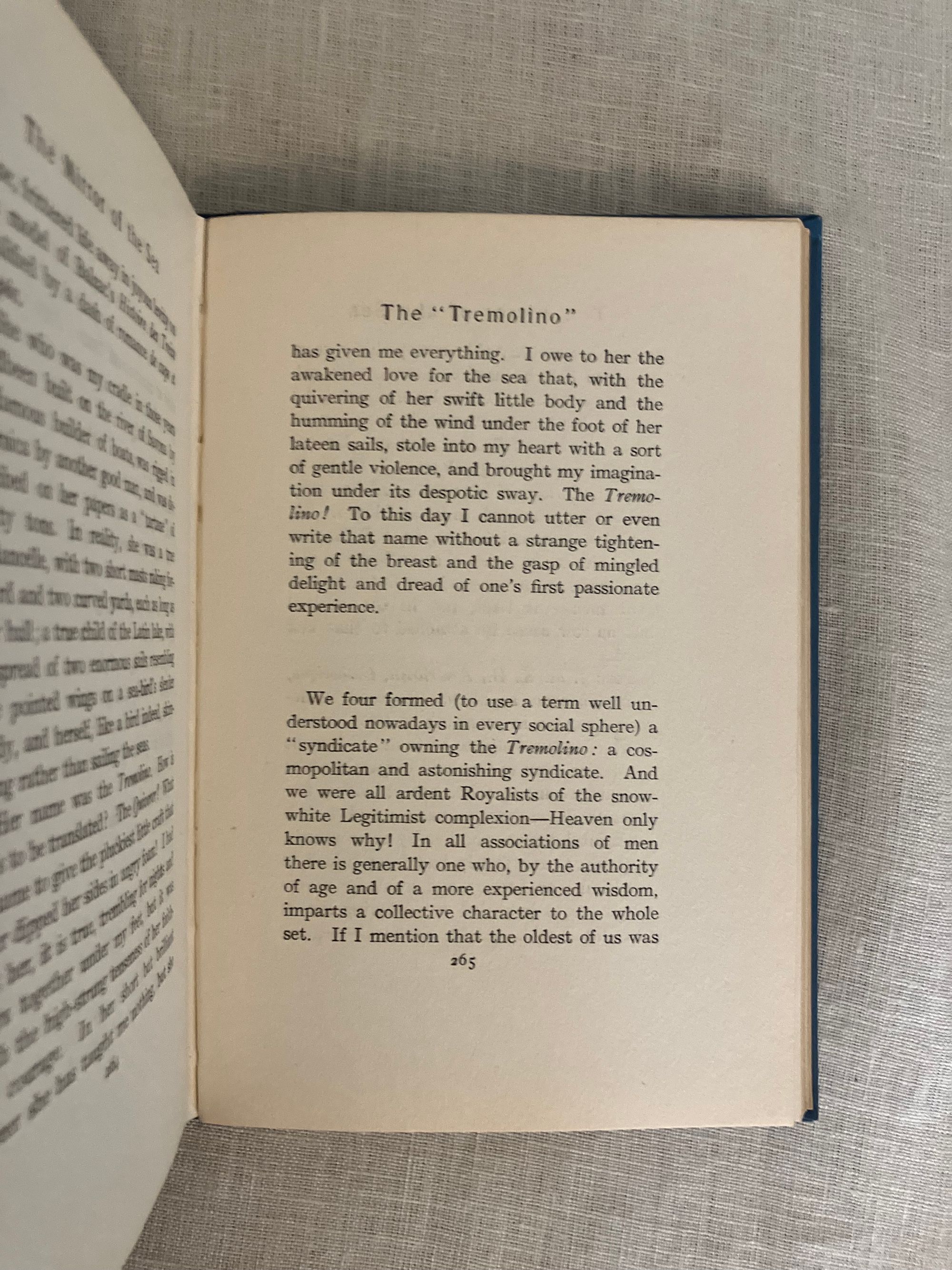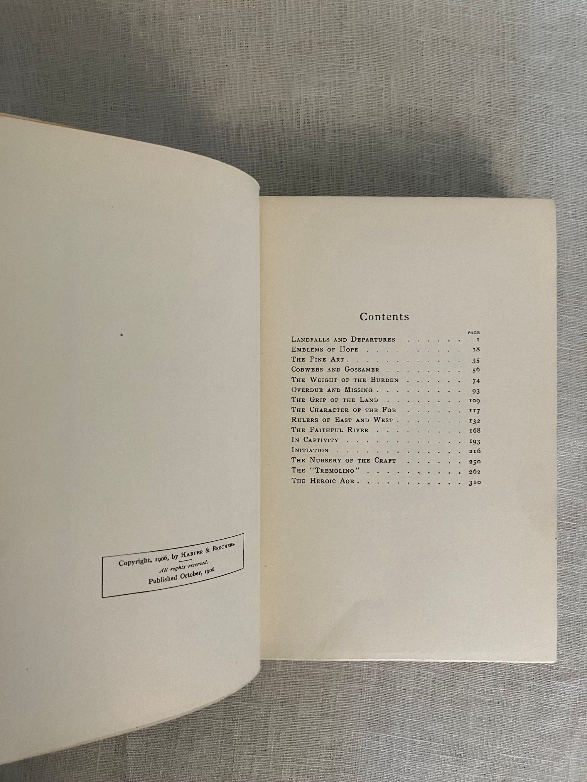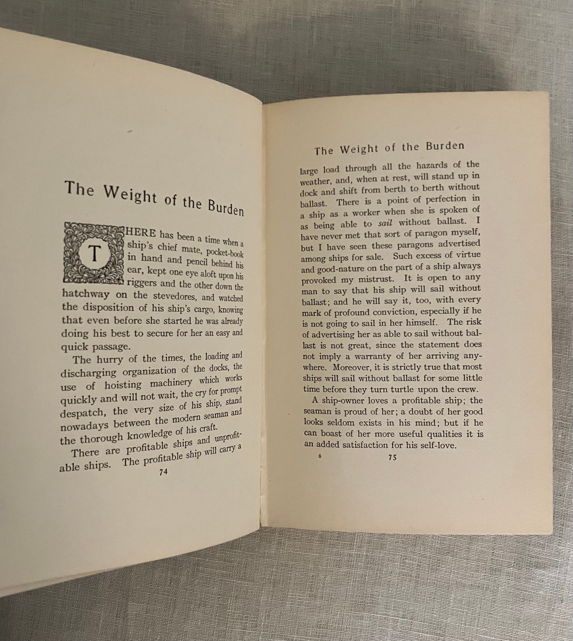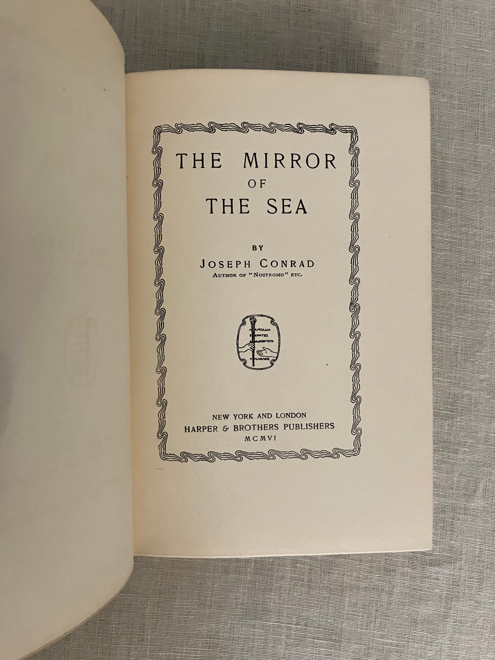 First American Edition, first impression, binding state A. Hard cover, 12mo, in light blue decorated cloth with a clipper ship and cloud illustration blocked in gray, brown and pale yellow to the front boards, within a two-part ruled frame of yellow, an anchor between the title and author name. The spine with titles blocked in pale yellow with a vignette shell below the title. Top edge stained gray, all edges trimmed. Stated Publication date October 1906.COLLATION: [ i-vi] , I-328 [329]. There is no dedication this issue. **CONDITION: Very Good Plus, or better. Small areas of soiling to the yellow sky of the front board (looks like fog,) and a couple of other very small marks to front board. Very minimal shelf wear. Hinges in order, unwritten in, endpapers and text remain bright and binding firm. Lacking dust jacket. Really, a very nice copy.** This book of 15 chapters recounts different incidents, reminiscences and reflections of the Author's life at sea at the close of the nineteenth century, morsels of which became the basis of his maritime fiction. Lohf and Sheehy 53. Supino A11.7.0 (binding state A.)