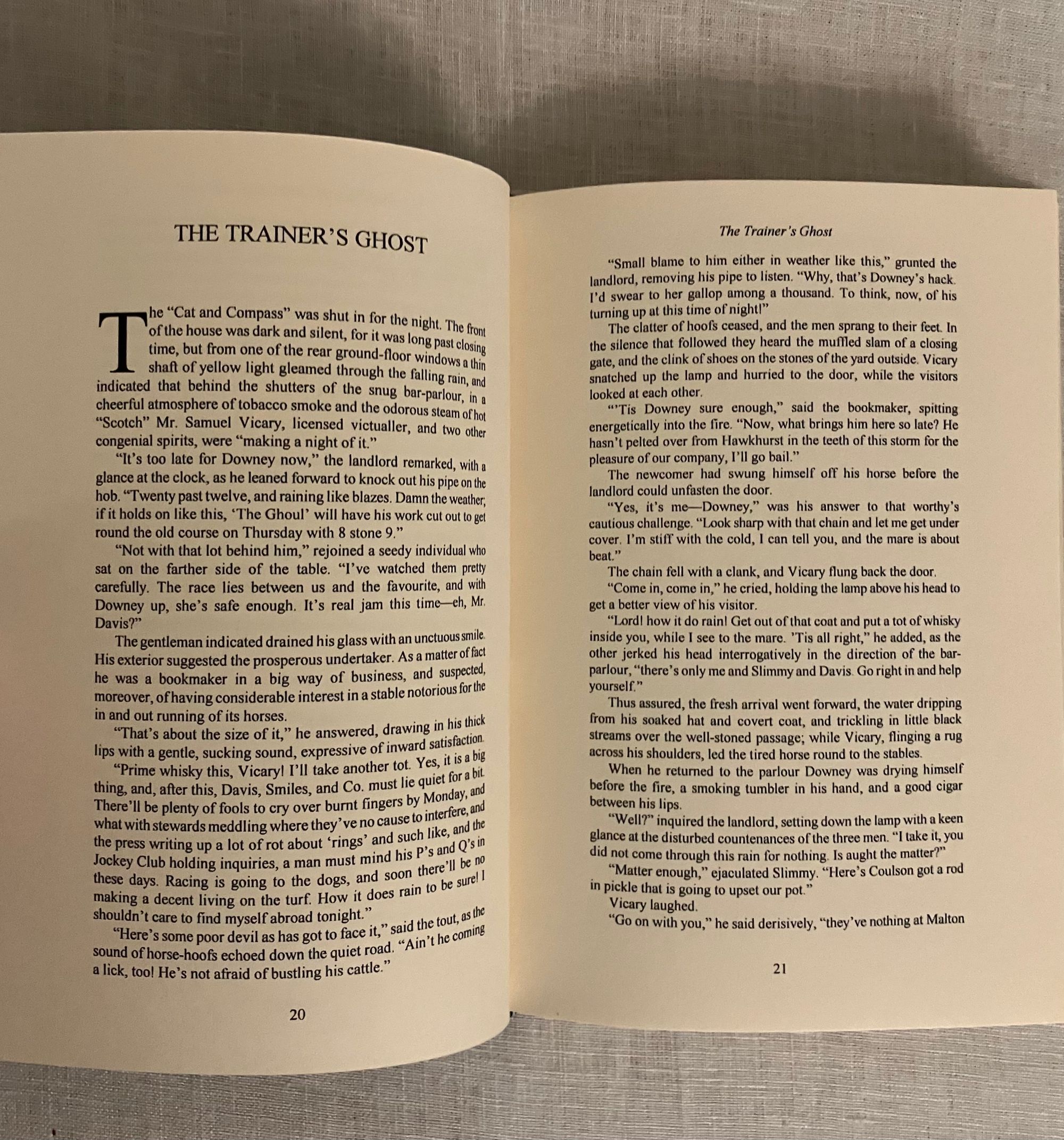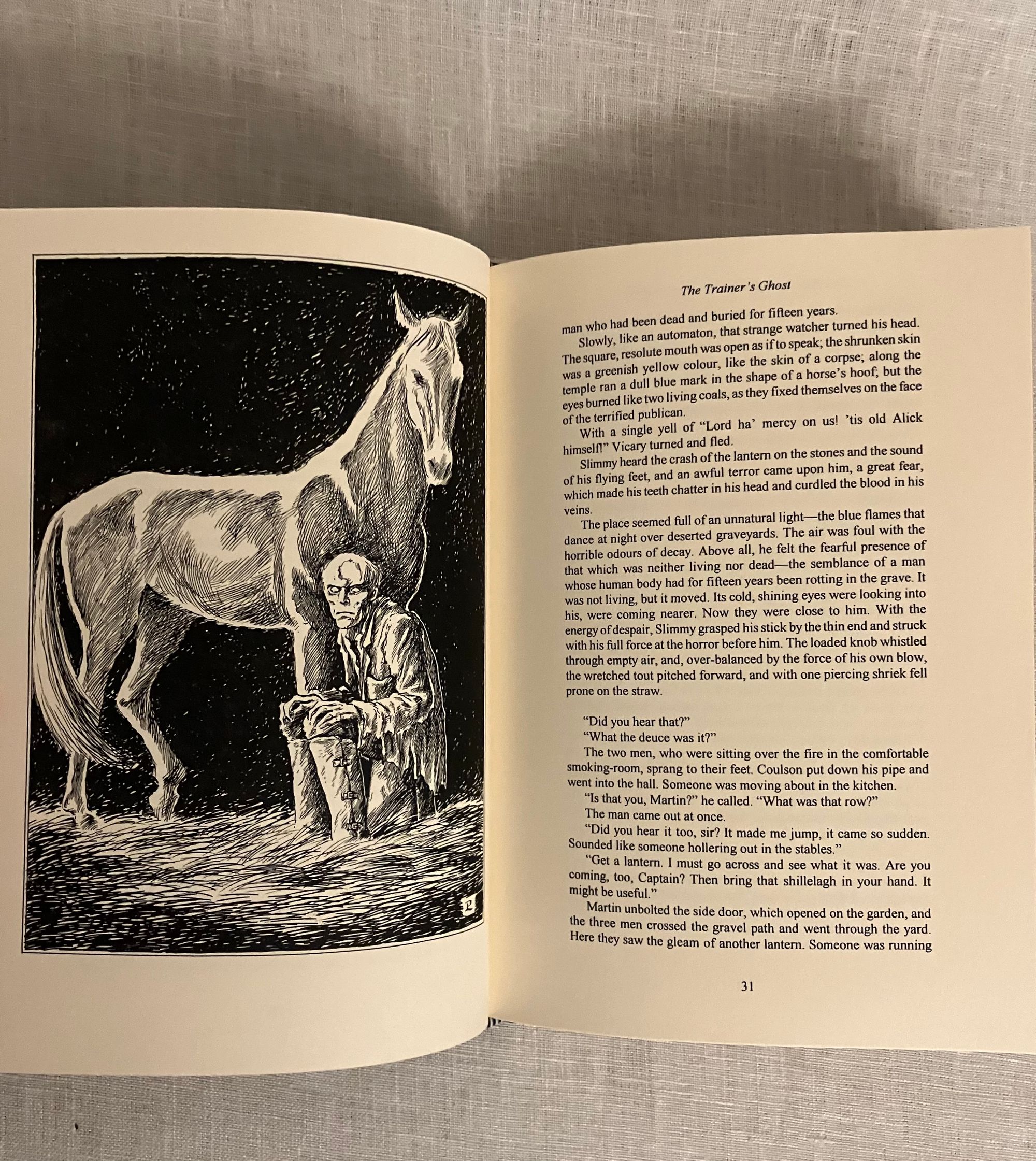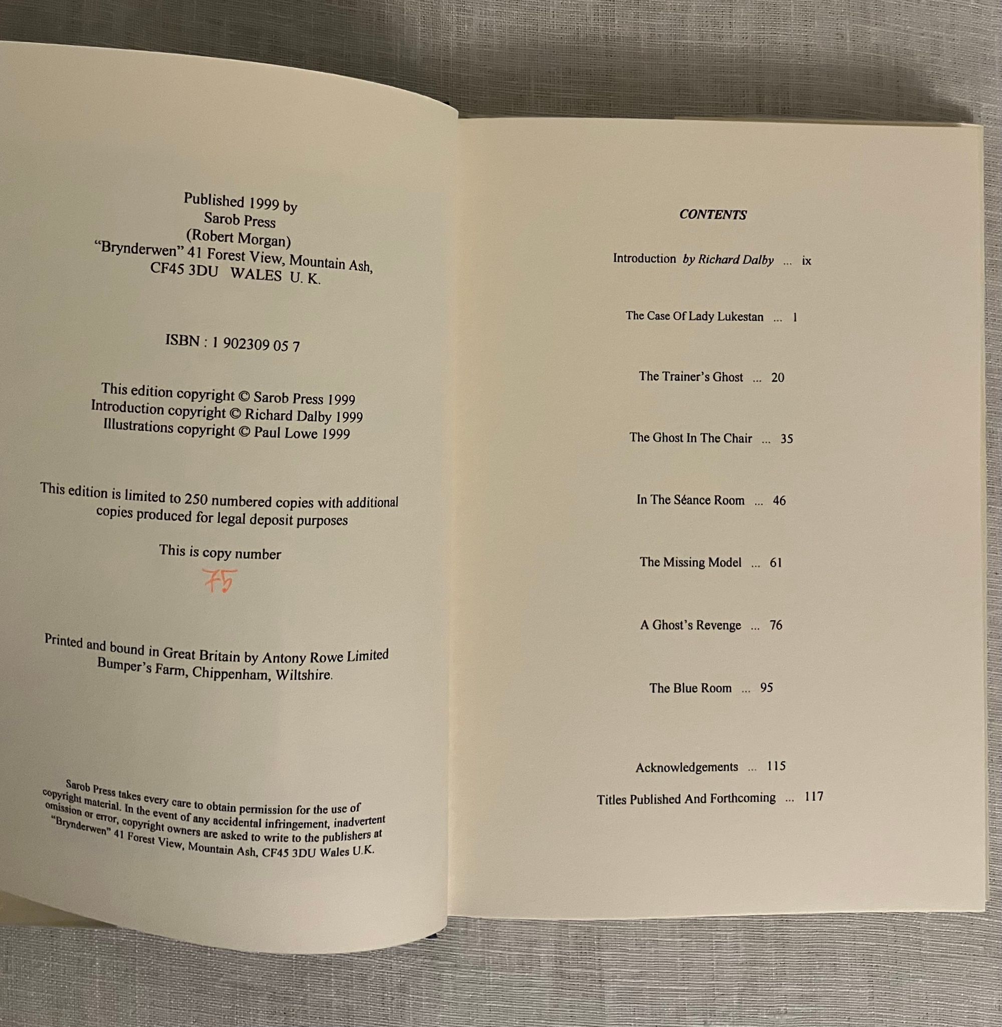 Limited Edition No. 75 of 250 copies. Hard cover, 8vo in publisher's navy cloth boards with an illustrated dust jacket featuring a suitable spectral figure. With full-page illustrations by Artist Paul Lowe, and Introduction by Editor Richard Dalby. COLLATION: xii ,[2],112,[6] pp. CONDITION: Fine in Fine dust jacket.** Scarce modern limited edition of an anthology of late Victorian and Edwardian ghost stories by the Hull, England-born AUTHOR "Lettice Galbraith," aka Lizzie Susan Gibson, (1859-1932), first published in 1893 under the title "New Ghost Stories". The original publication was a cheaply-bound "yellowback", designed to be sold at railway stations and the like, with the result that very few have survived. This new collection includes the first book publication of another story, "The Blue Room". Lettice Galbraith, born Lizzie Susan Gibson, was a short-story writer and novelist. She tackled social issues affecting women, such as marriage and independence. But she returned every now and then to occult matters, such as in the 1906 "psychic detective" novel, "Burnt Spices." These are very much classic Victorian ghost stories, with shrieks in the night and occult tomes in the library... large houses in the countryside and weekend parties... just watch out for the hidden panel in the bedpost... and don't forget to pack the smelling-salts!** Sarob Press is a small press which has published reprints of classic ghost and horror stories, as well as contemporary authors. This book is part of a series reprinting works by neglected, but worthy, woman ghost-story writers, the so-called "Mistresses Of The Macabre".