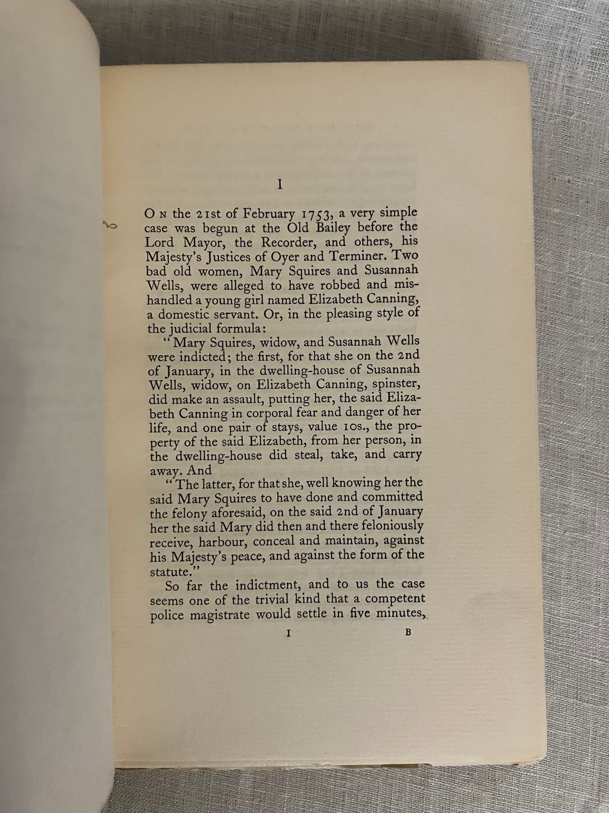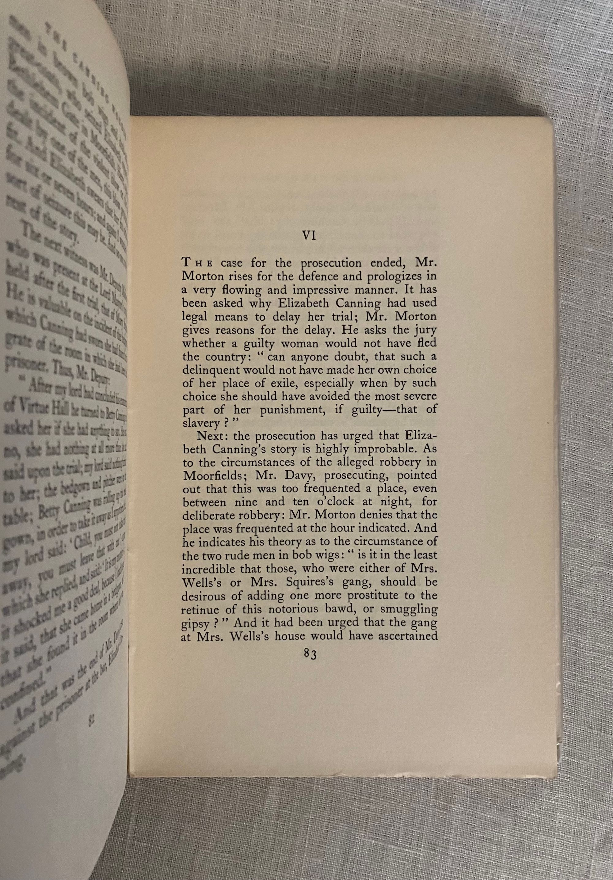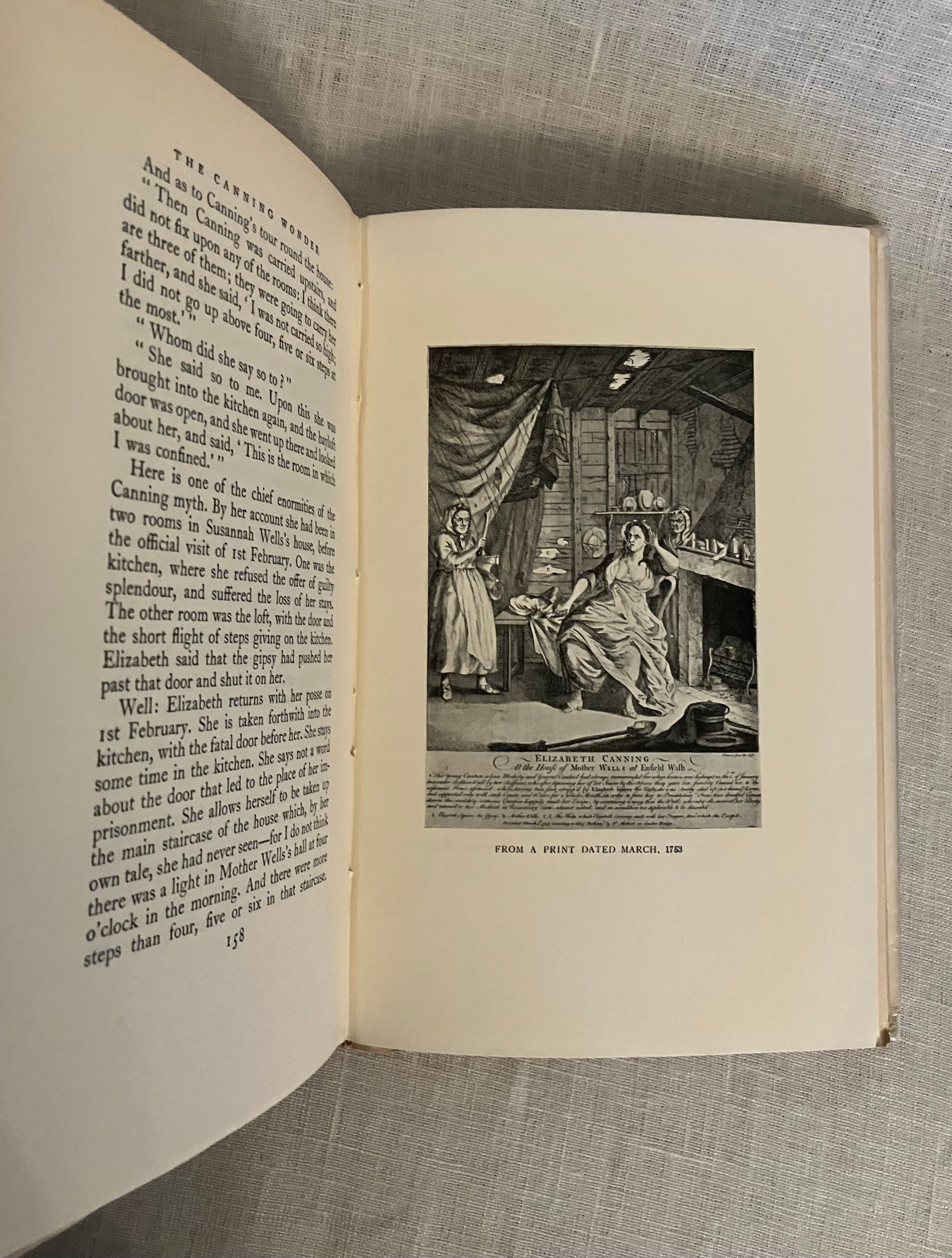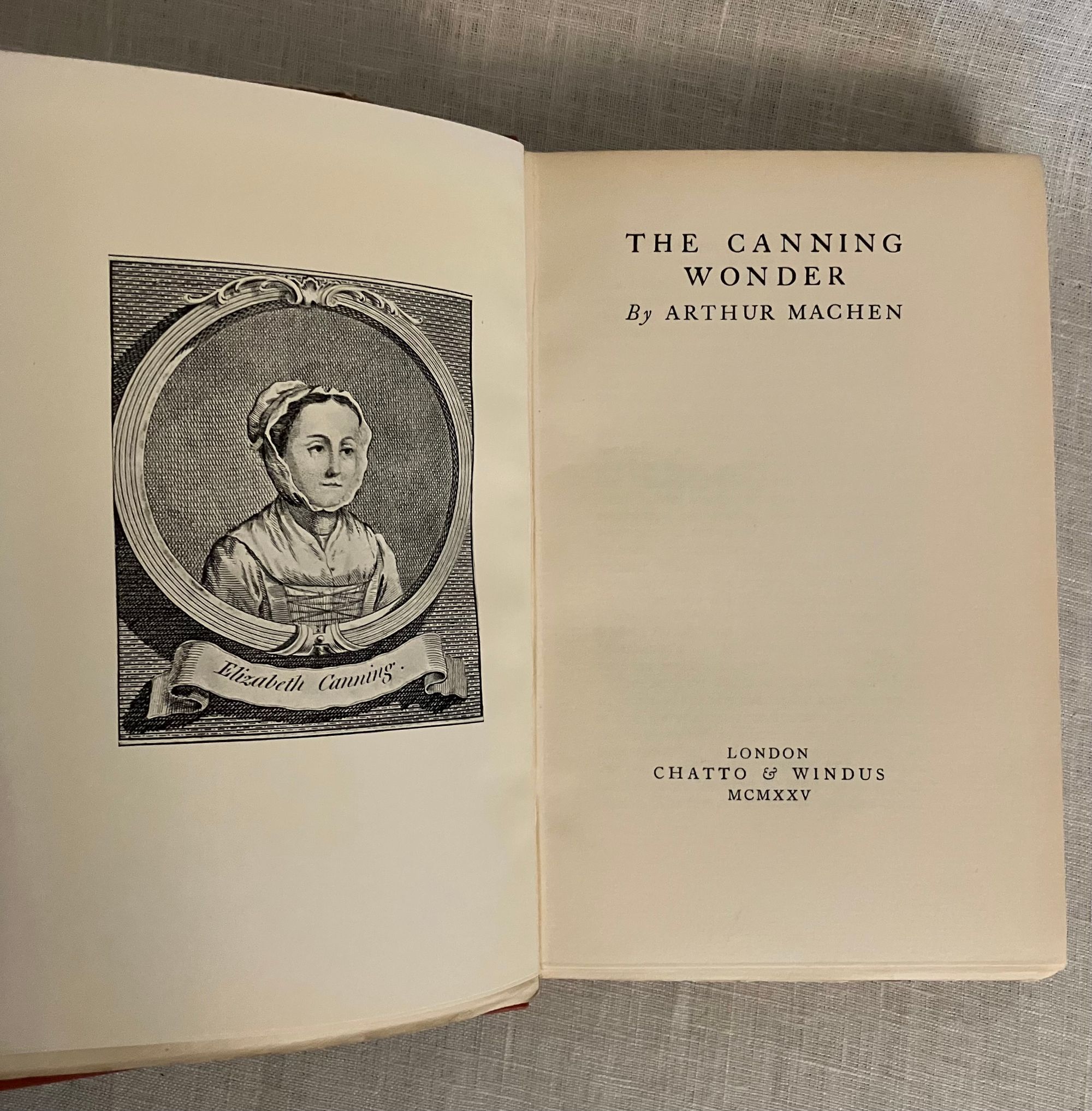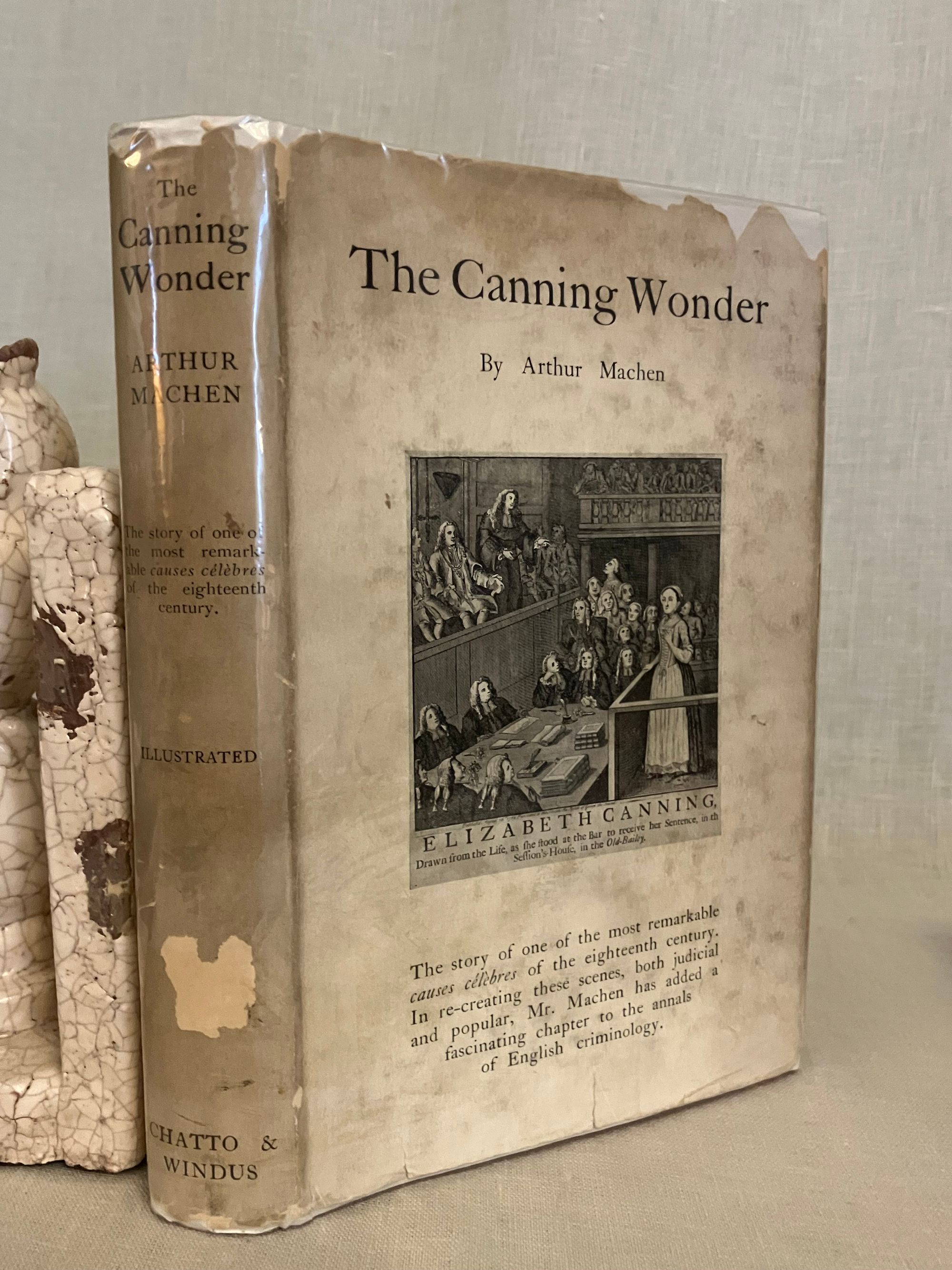 First edition. Hard cover, 8vo, in publisher's red cloth boards, with gold lettering to spine. Includes eight full-page plates. COLLATION: x [2], 249, [2] pp. CONDITION: Very Good. Boards sunned in places. Light bumps to corners. Dust jacket not price-clipped, but heavily chipped at edges, and dust-soiled. Now protected in mylar. ** "The Canning Wonder" is a departure from Machen's usual gothic and literary essay genres, and instead concerns itself with a true crime eighteenth century mystery. Elizabeth Canning, a London maidservant disappeared for a almost a month in 1753, claiming to have been abducted and kept prisoner in an attic. She was found to have fabricated the story, and was tried and convicted for perjury. It was a famous case in its time, with people taking strong positions for, or against, Canning. The novelist Henry Fielding (1707-1754) was also a magistrate at the time of this incident, and became involved in the case. It also inspired the 1948 novel "The Franchise Affair", by the Scottish author, Josephine Tey. ** REFS: Goldstone & Sweetser (1973) 33a, p. 53. Scarce in dust jacket.