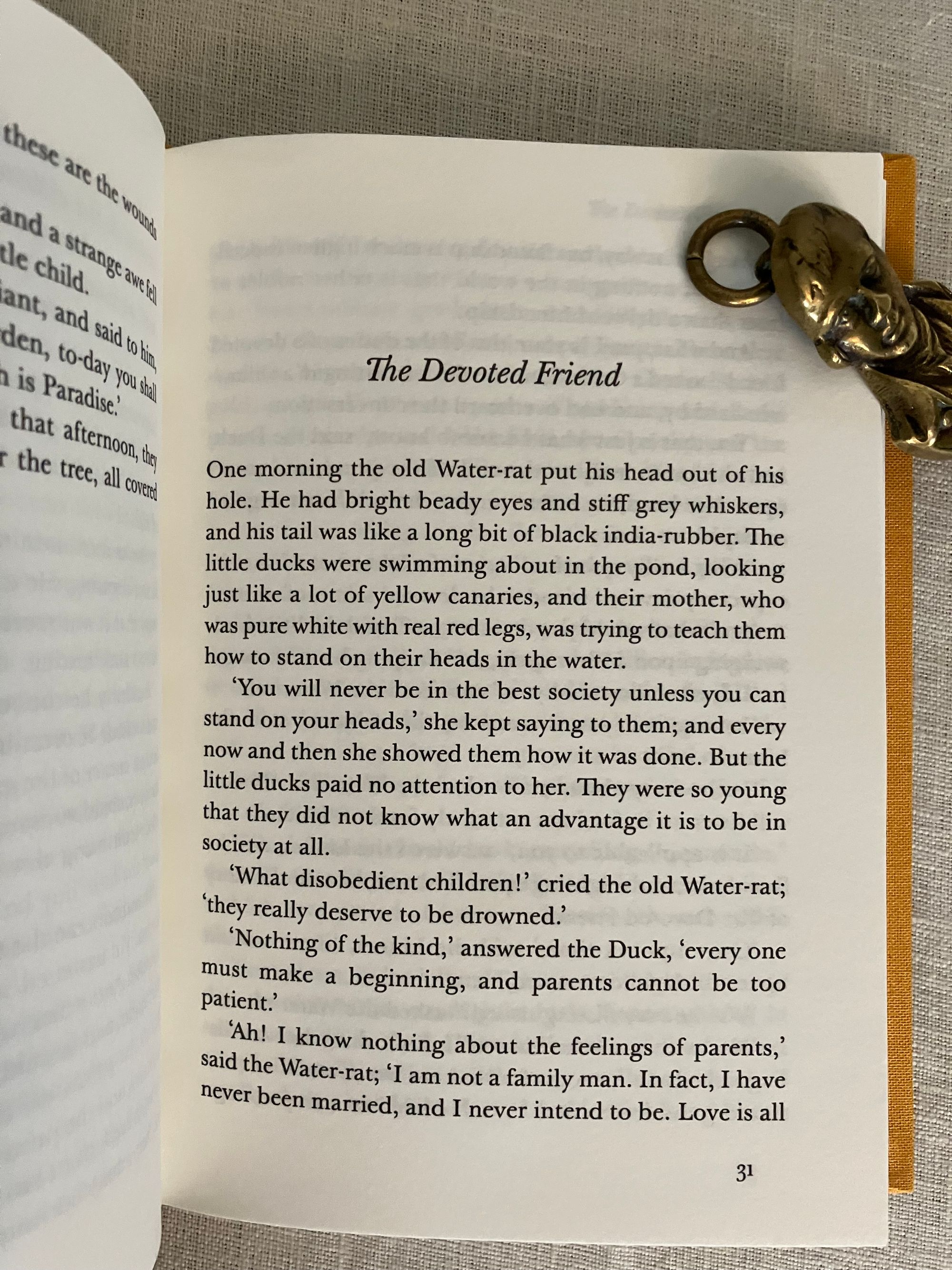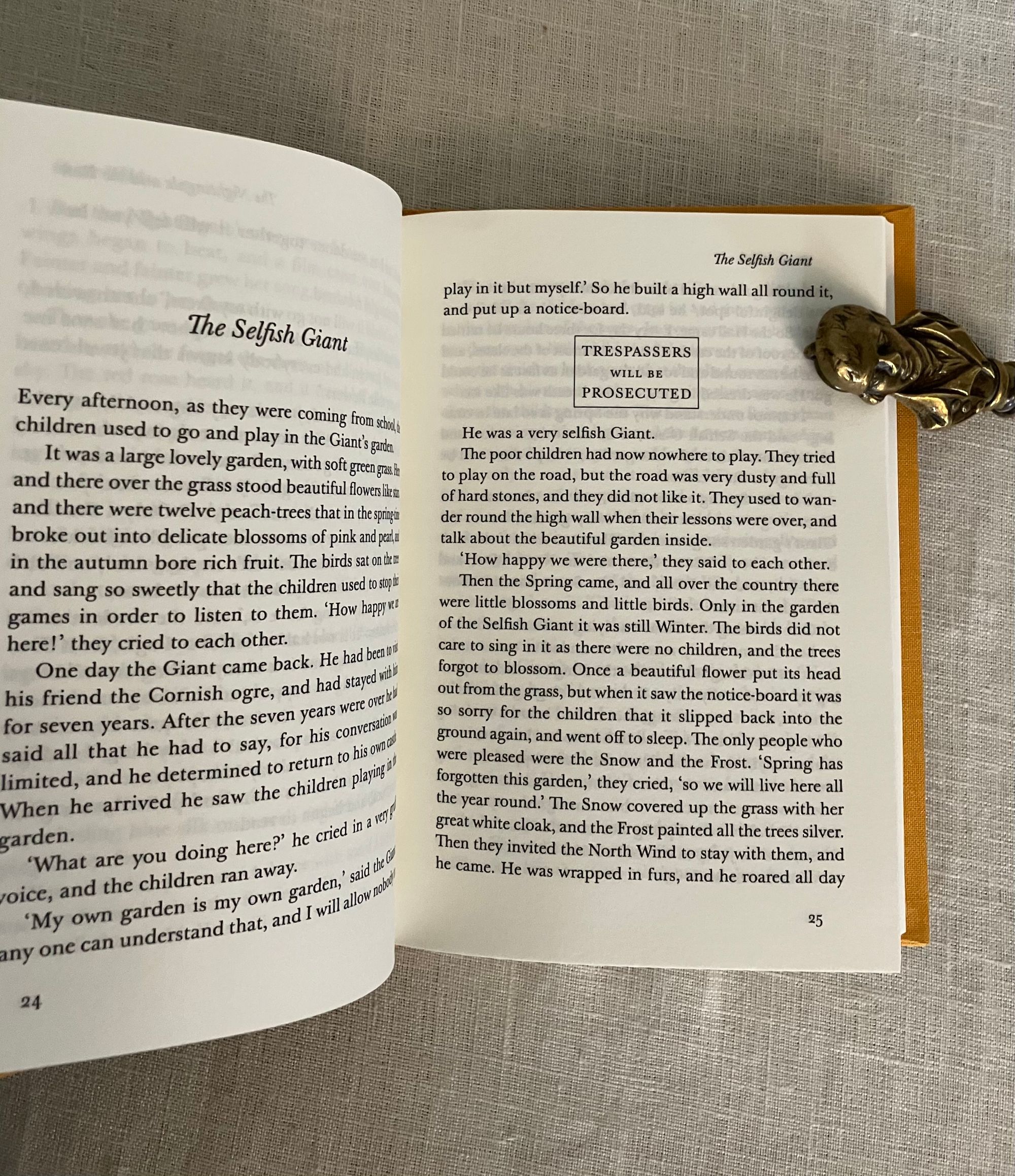 Reprint. ( Third printing of the 2022 Folio Society edition.) Hard cover 16mo, in yellow decorated cloth in an art deco design of yellow overlapping fans, 188 [189]pp. plus 2 pp. publisher's advertising for the series. CONDITION: Fine, like new. ** This anthology of ten of the Irish Author's fables, include 10 works originally published between 1888 and 1891: "The Happy Prince," The Nightingale and the Rose," "The Selfish Giant," "The Devoted Friend," "The Remarkable Rocket," first appearing in "1888's "The Happy Prince and Other Tales". Additionally, "The Young King," "The Birthday of the Infanta," "The Fisherman of the Soul," and "The Star-Child" originally appeared in "The House of Pomegranates," his second book of fairytales published in 1891. Irish poet, playwright and critic Oscar Wilde (1854-1900), a voice for the Aesthetic Movement in the British arts along with writers such as Walter Pater and Algernon Swinburne. Their "art for art's sake" emphasized the experience of the senses, in reaction to the stuffy conservatism of Victorian thought, bridging the arts into the modern era. These stories are a bit reminiscent of Kenneth Grahame's "Wind in the Willows," with its cast of water-rat, ducks and other fauna, albeit with the addition of inanimate object characters, such as the Catherine Wheel and the Rocket, who dispense sometimes wry moral criticism cloaked in the cozy familiarity of child-like innocence.