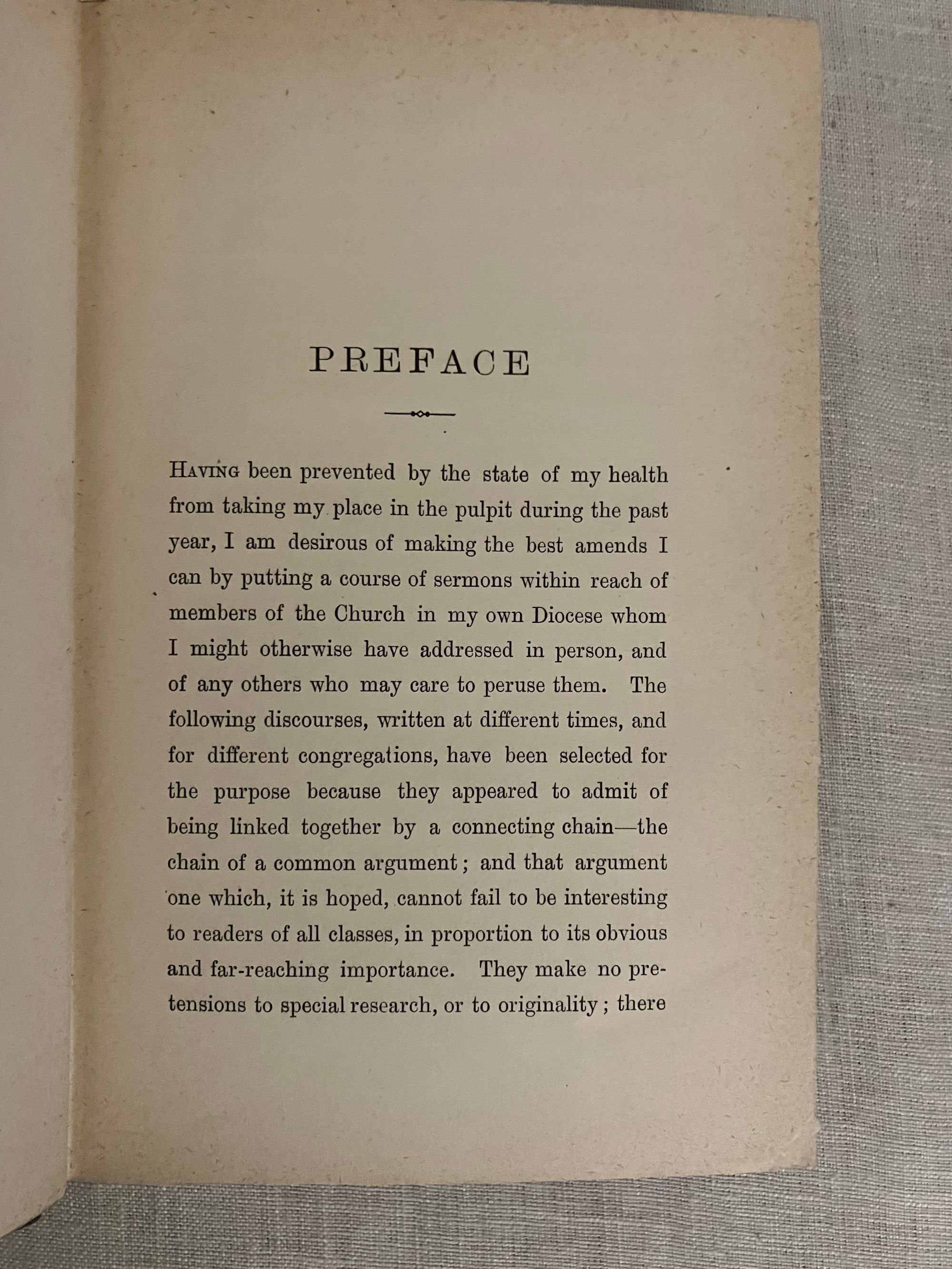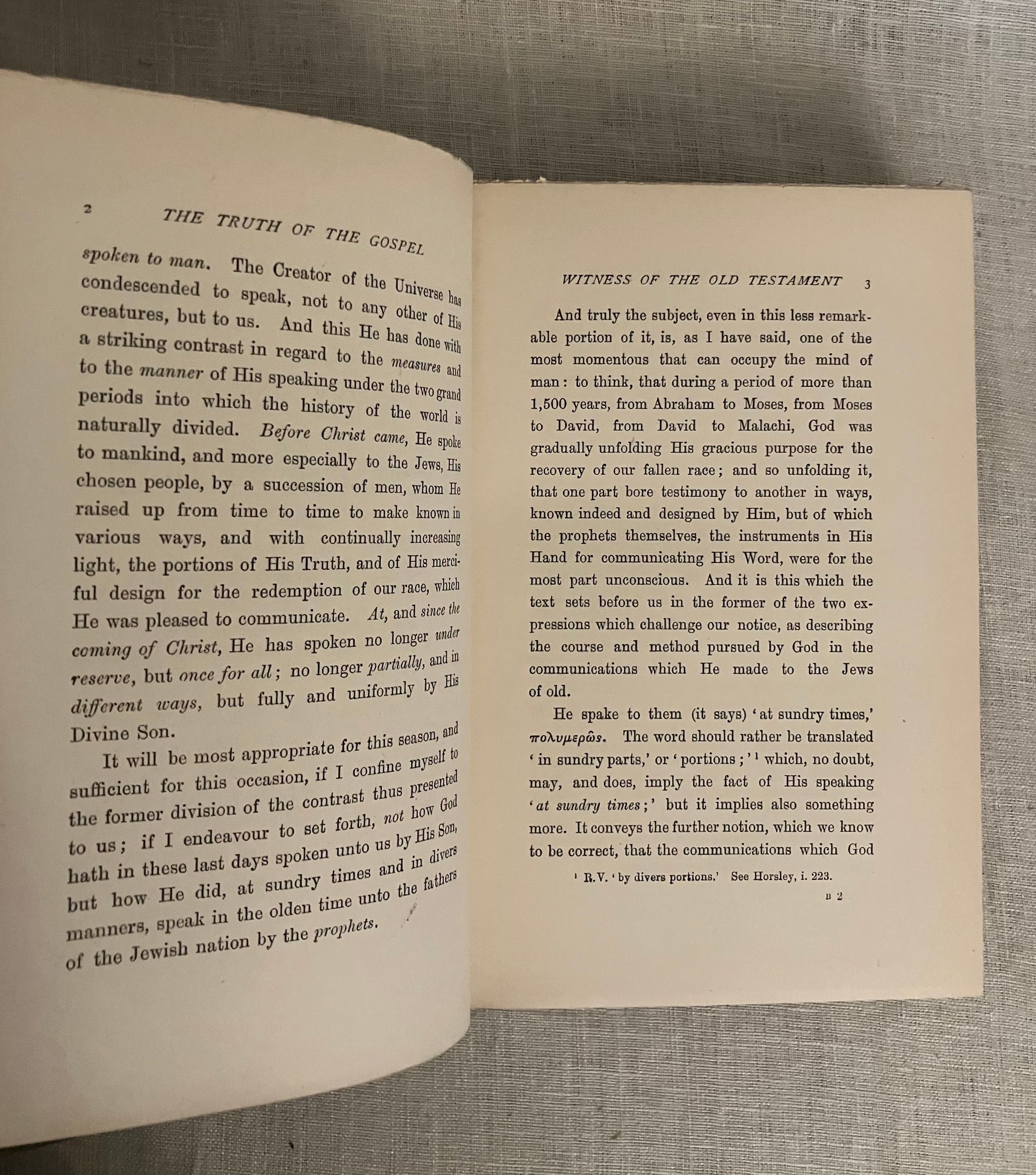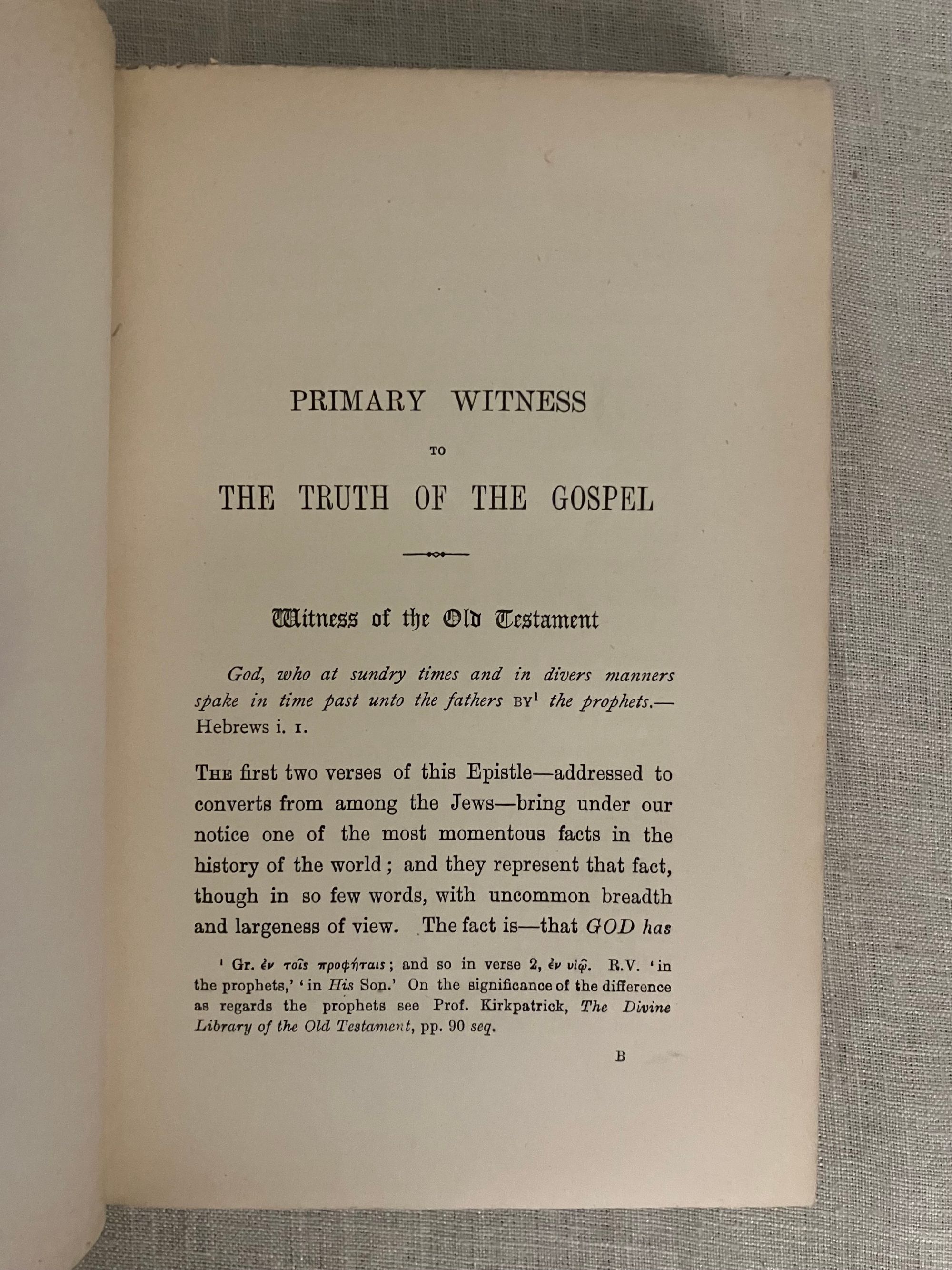 First Edition. Hard cover, 12mo, in olive green cloth ruled in blind at upper and lower borders, with titles blocked in gold to the spine, Condition: Very Good. Top edge a bit dusty. Hinges cracked, but holding firmly. Remains tight and square and clean, otherwise. Light wear seen to tips and along top inch of the front joint. Remains bright and no foxing seen. The Episcopal Bishop Charles Wordsworth dedicates this to his several congregations of the United Diocese of Saint Andrews, Dunkeld and Dunblane, Scotland as he was "now entering the Fortieth Year of my Episcopate," in 1892. A readable examination of the Old Testament as espoused by Saints, Apostles and the Jews of the Present Day, and Modern teaching on the Canon of the Old Testament. 333pp. plus 16 pp. publisher's catalogue of Theological Literature.**AUTHOR Charles Wordsworth (1806-1892) was the nephew of the Romantic poet, William Wordsworth, being the son of his brother Christopher. His schooling at Harrow and Oxford put him in touch with other notable future clerics of the day, although there is also much mention of sport; cricket, and rowing in particular, during the halcyon days of youth. DNB tells of a visit to Sir Walter Scott at Abbotsford in the company of his uncle William Wordsworth and his sister Dora in 1831. Before entering the ministry, he travelled in Europe, and became Master at Winchester College, as well as publishing a successful work on Greek Grammar. OCLC 6623785.