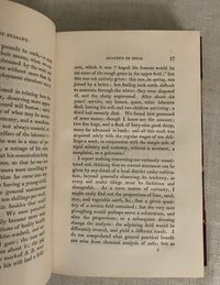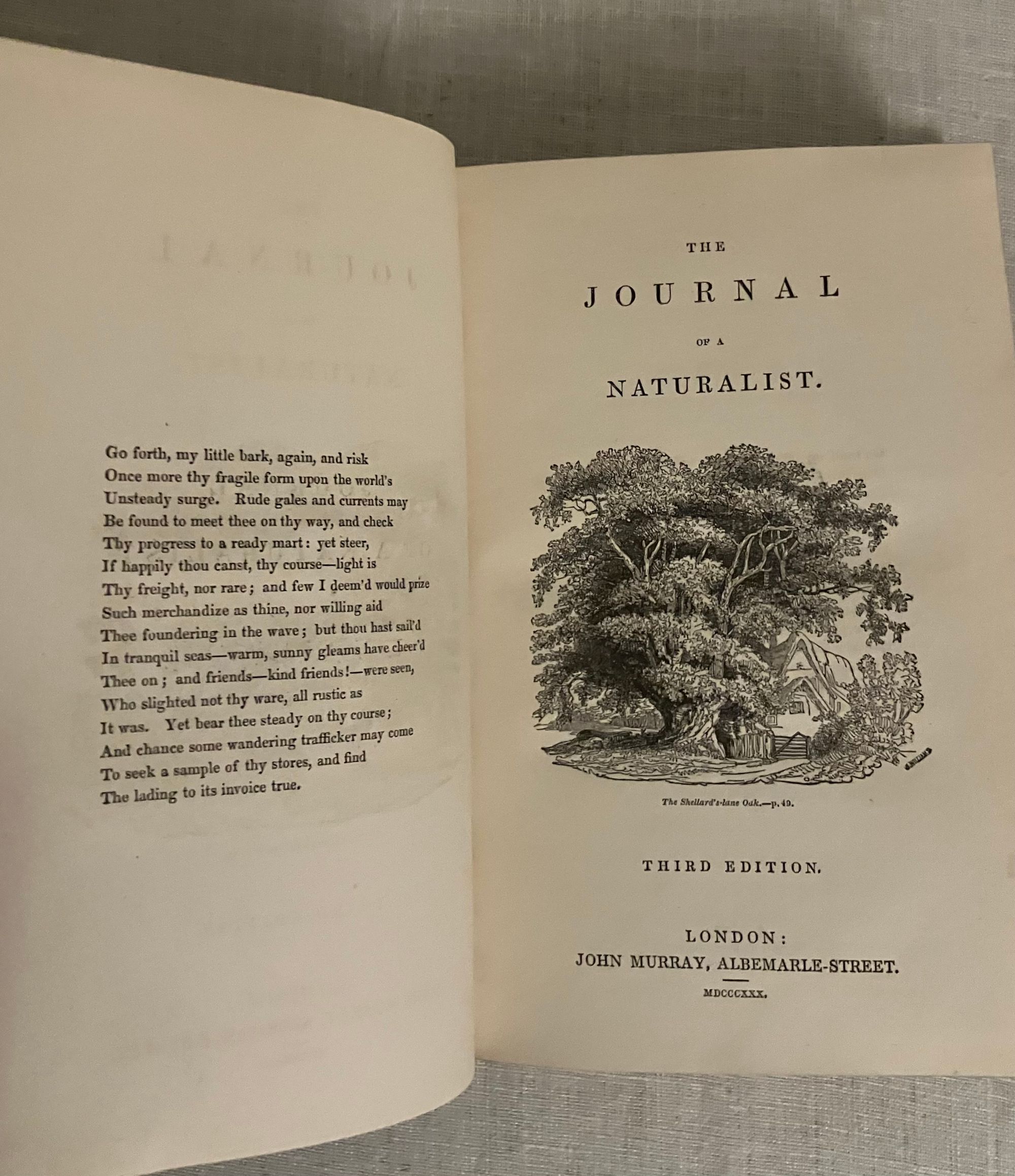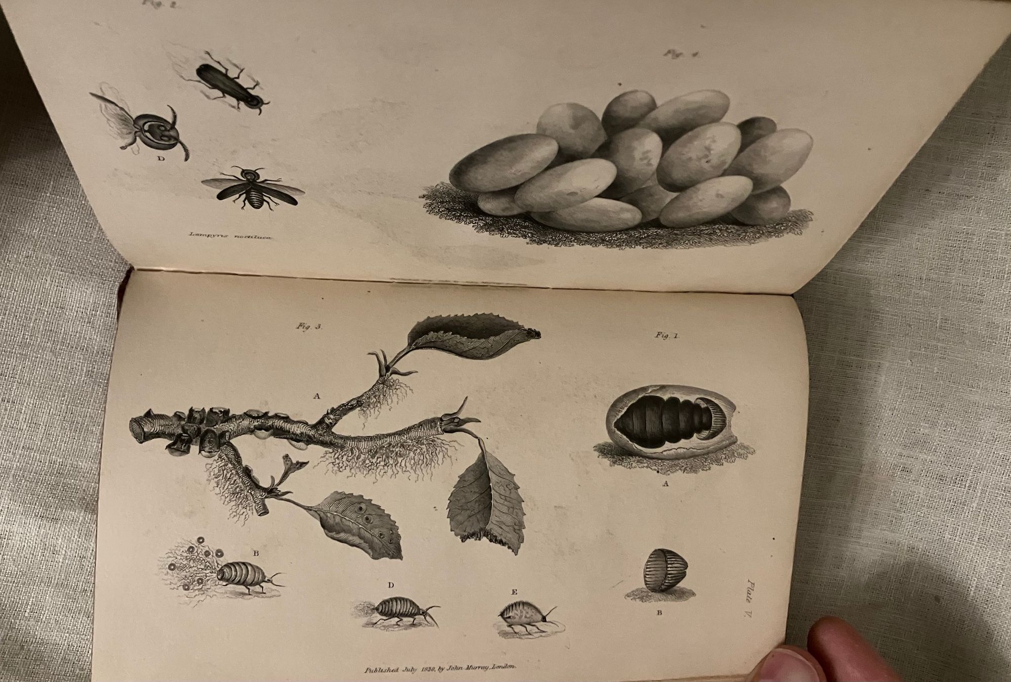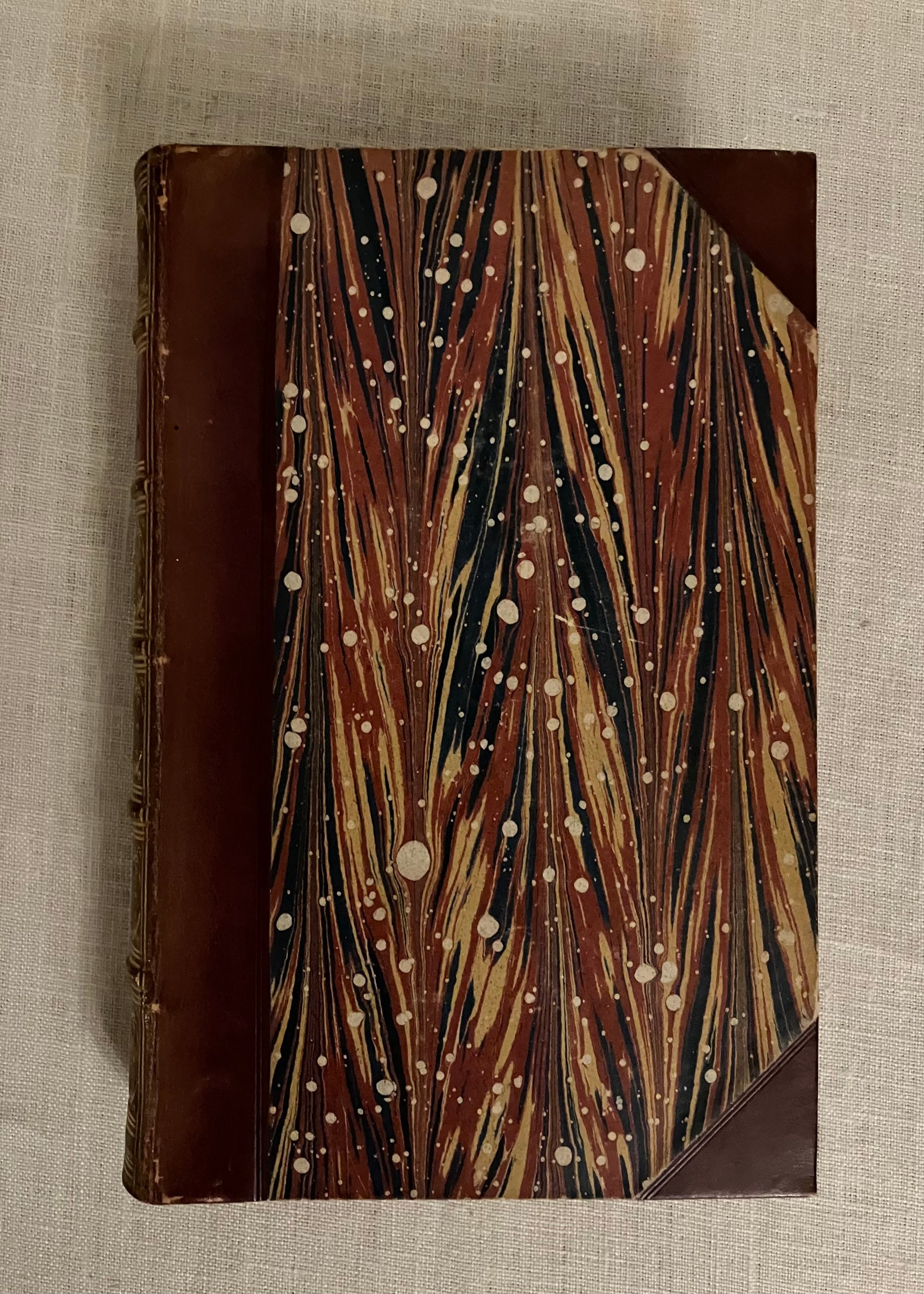 Hard cover, 12mo, finely bound in three-quarter, maroon-brown calf gilt, with marbled paper-covered boards, the spine with five raised bands rolled with small squares, and the compartments tooled with a slightly abstract floriate design flanked to the corners with leaf sprigs. Text edges trimmed and mottle glazed. Engraved illustrated title page with art by S. Williams. Further illustrations are dated 1830 and consist of seven engraved plates, of which four are double paged and one printed in color. ** COLLATION: xvi, [1]-432, [1], Plate I (double page),(blank), II, (2 blank), III (double page), (blank), IV, (2 blank), V (double page), (2 blank), VI (double page), (blank), VII --color, (blank), Index, 440pp. Printed by W. Clowes, Stamford Street. [3]. CONDITION: Near Fine. Published anonymously by English botanist John Leonard Knapp (1767-1845), this material was first serialized in the magazine " Times Telescope" before publication of the first English edition in 1829, 2nd in 1829 and then this third edition of 1830. (The American 1st was published in Philadelphia the following year, 1831.)**Knapp was a native of Bristol in northern England, later moving across the nearby Severn to southeast Wales. He was an early ecologist in that manner in which empirical observation overlaps with philosophical thought, economics and morals. The native limestone of the area is his first focus; its origins, differences of type and methods of formation. Use of the component minerals as amendments to the soil for different crops, and limestone powder as a moisture retaining amendment are considered. Mention of the area's Roman occupation highlights the long usage of the limestone cliffs for civil construction of roads, which is continued into the eighteenth century (child labor included). His investigation of quarries leads into a digression on the changing environment over the centuries, including the effects of deforestation. Further uses for limestone as a kiln fuel and as a medicinal component are also considered. Beyond this, Mr. Knapp catalogues the various local grasses and other components of silage and discusses how different biological varieties effect outcomes in terms of local dairy products, for instance. Other topics: the culture of the potato and causes of localized varieties; the teazel plant and other native flora; the oak, elm and maple and their localized ecology, ill-effects of pollarding; hellebore, dyer's broom, foxglove and other various medicinal plants; flowers as sweet, sugary attractions to beneficial insects; local species of quadrupeds, birds and insects; the cruelty of man toward animals; changes taking place in nature; the philosophy of empericism; observation of changes wrought by "electric" atmosphere, winds, sinkings, salt winds; 1825 and its peculiarities and influences; celestial observations et al. Knapp became a fellow of the botanical Linnean Society, and also a fellow of the Society of Antiquaries. In general, this is a fantastic read encouraging the wonders of direct observation of nature and its many changes, still an urgent topic today. This title (not this edition tho) is in the Wellcome Collection. His 1804 title "Gramina Britannica" (on British grasses) is also listed there, as well as in: M. Aslin, "Library Catalogue of Printed Books and Pamphlets on Agriculture" (Harpenden, 1940) p. 84. REF: G.S. Boulger, "John Leonard Knapp," DNB. British Library database, Shelfmark 1609/373. (AMJ)