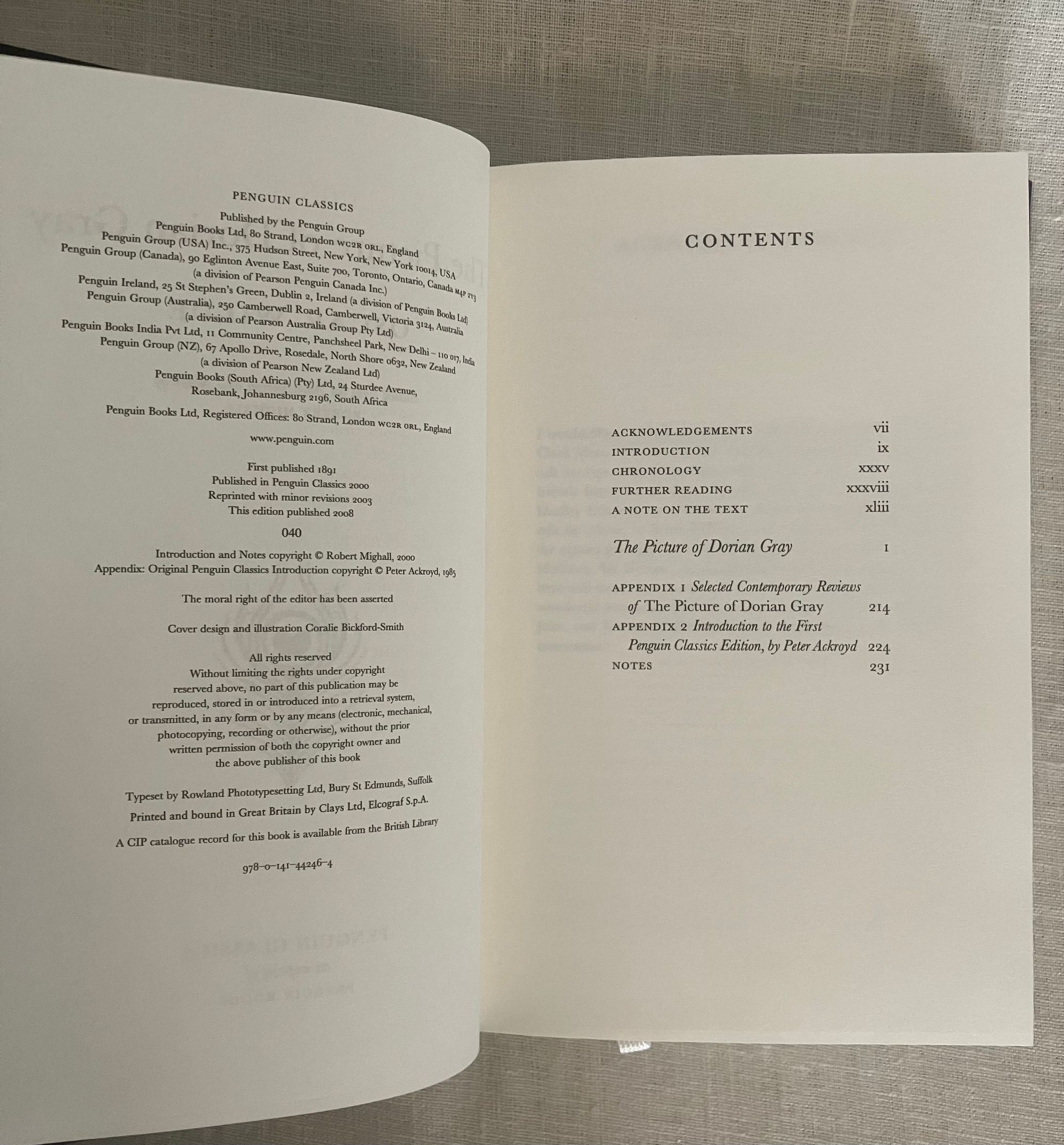 Reprint. Hard cover, 12mo, in black cloth blocked in white peacock feather design with titles to upper front and spine, silk ribbon bookmark. xliii, 252 pp.* Condition: Fine, like new. Introduction includes chronology, as well as a further reading list. Appendix materials contain copies of contemporary reviews, Peter Ackroyd's Introduction to the first Penguin Edition (1985) and Notes. **A beautiful young man has his portrait painted by his friend Basil Hallward. A visitor to the studio, Lord Henry Wotton, is introduced to Dorian Gray and leads him down a path of vanity and corruption. The portrait, given to Gray by his admiring friend the artist, is hidden in an attic; its changing appearance comes to reflect the state of morality of its subject, as men and women of his acqaintance have their lives variously ruined by his actions. First serialized in London's Lippincott Magazine in 1890, this highly original, genre-blended story includes elements of horror, symbolism and aestheticism, with it's examination of the price of moral corruption and psychological complexities which drive it, continuing to facinate readers today. ** This was Irish Author Oscar Wilde's (1854-1900) first and only novel, although he was also a sucessful critic, poet and playwright. Educated at Trinity College, Dublin and later Oxford, Wilde was associated with both the Symbolists and the Aesthetic movement in literature and art of the 1890's. The scandal of arrest and imprisonment for homosexuality curtailed a promising literary career, and indeed his life, in which aspects of this novel were used against him in court. The extensive supplemental materials of this edition make this a worthy resource.