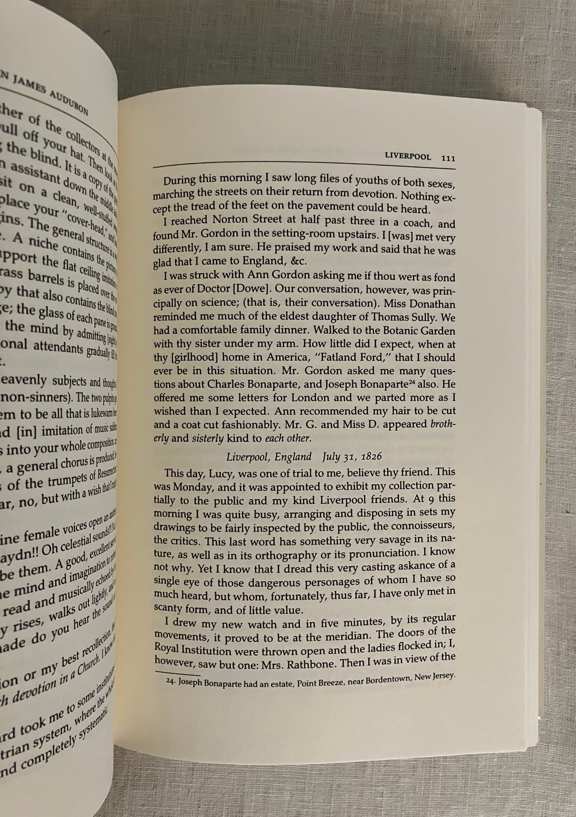 Hard cover, 8vo, in cream cloth with titles in gold, 447pp. Black and white illustrations. **CONDITION: Near Fine in a fine d/j, now in mylar. An account of the Journey to England and Scotland to arrange the publication of "The Birds of America," in 1826. The diary concerns the artist's trip from Louisiana aboard the ship "Delos" toward Liverpool, from whence he hopes to secure funding to publish the now-classic work on American ornithology in Manchester or Edinburgh. The slow travel by ship in the early nineteenth century meant there was plenty of time to make studies of some of the marine mammals, fish and birds which come across the bow, and this edition includes new drawings from that time. Dealings with unhelpful customs agents, distant relatives, boredom, insecurity and homesickness, all flavor the frank brew of Audubon's anxious musings, making real the personality of the writer even two hundred years later. His reception was not all bleak, however. Midlands patrons do, in fact, step forward, bringing success and recognition as his portfolio of works is exhibited at Liverpool's Royal Institution, The influence of the artist Thomas Bewick's "Quadrupeds" is referred to a number of times, pushing the naturally reluctant Audubon forward in his quest. After initial reluctance of the Edinburgh scientific elite, his work finally finds initial publication in 1827 (to 1838) through Edinburgh engravings publisher Lizars. A good read for the Audubon enthusiast and student of nineteenth century publishing.