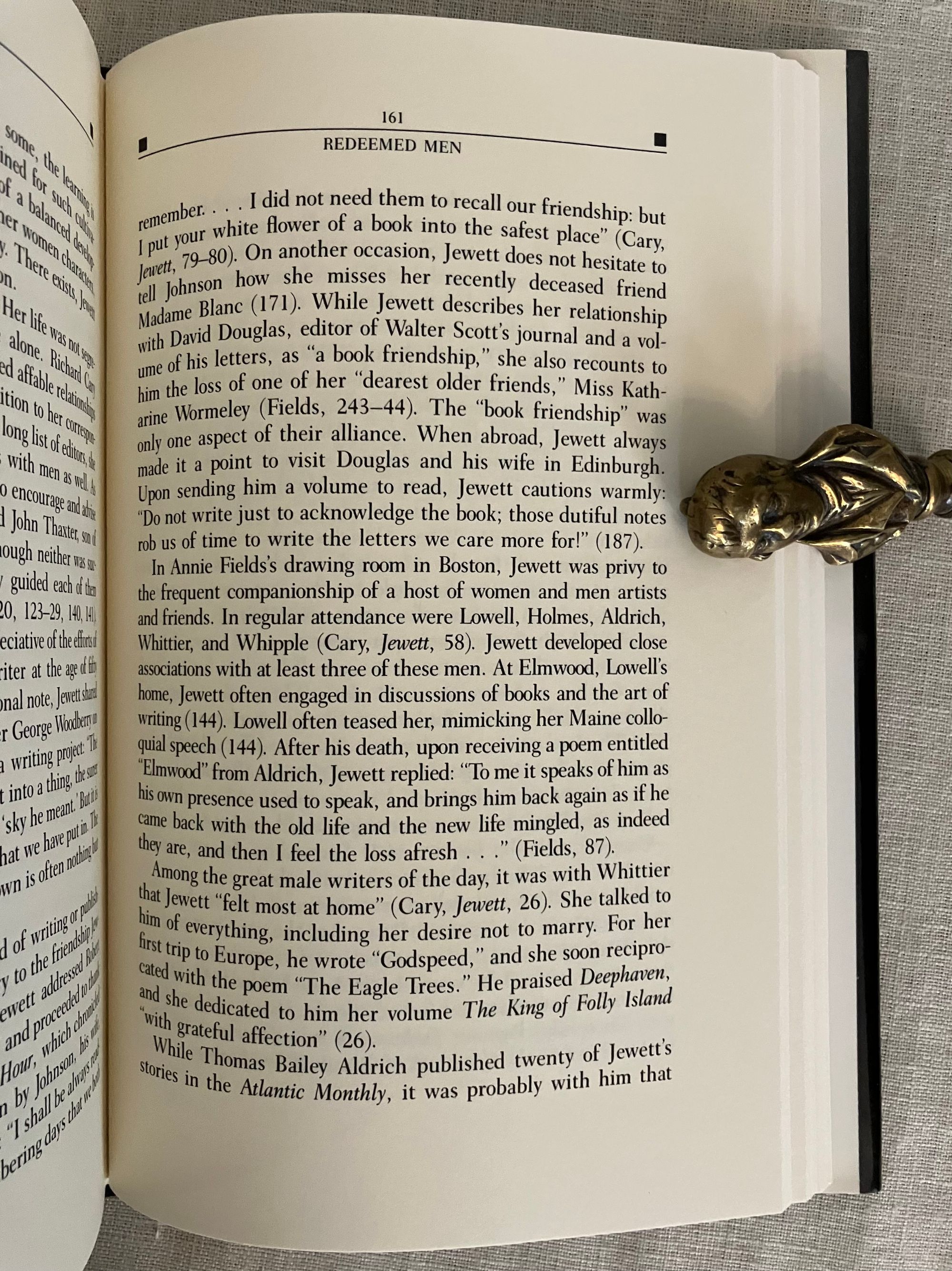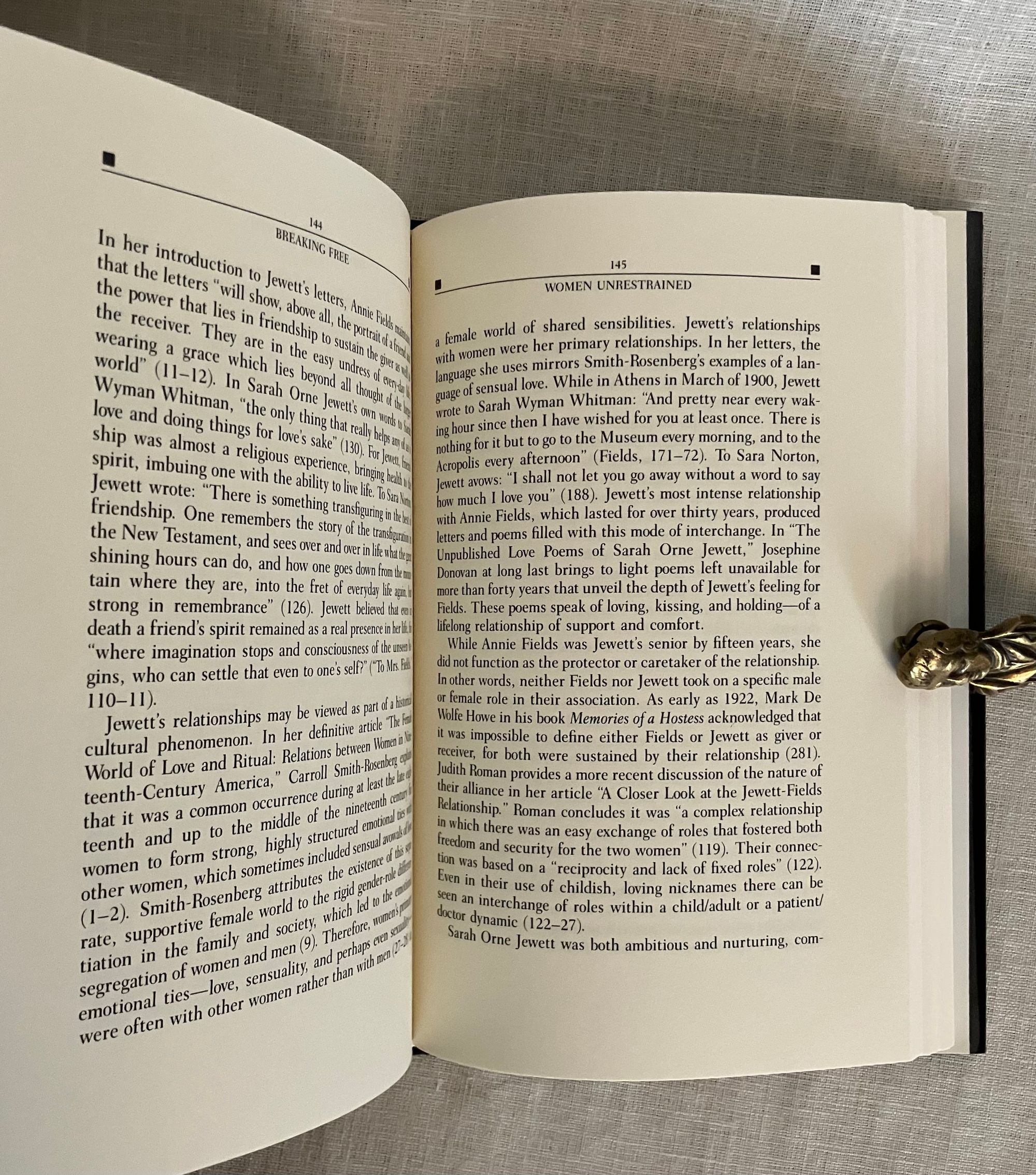 Stamped "Review Copy" ffep. Hard cover, 8vo in black paper-covered boards, silver titles, original unclipped dust jacket, 246pp. with index. First edition. CONDITION: Fine, in Fine d/j. Stamped "Review Copy" to ffep. in red ink. Sarah Orne Jewett,(1849-1909) the South Berwick, Maine author best known for the novels "Deephaven" ( first book edition, 1877) and "Country of the Pointed Firs" (1896), has her entire body of work considered in this work of feminist literary criticism. " Margaret Roman argues that one theme colors almost every short story and novel by the turn-of-the century American author: each person, regardless of sex, must break free of the restrictive, polar opposite norms of behavior traditionally assigned to men and women by a patriarchal society...Frequently referring to Jewett's own New England upbringing at the hands of of an unusually progressive father, Roman demonstrated how the writer, through her personal quest for freedom and through the various characters she created, strove to eliminate the necessity for rigid and narrowly defined male-female relationships." (from the blurb). Biographical details of Jewett's relationships with some of her male mentors, John Greenleaf Whittier and Theophilus Parsons, are discussed, as well as the nature of those relationships with some of her closest female partners, such as Sarah Wyman Whitman and Annie Fields. An interesting overview of the literary and artistic community of the Seacoast area from Boston to South Berwick, and the understanding of developing feminism in the mid to late nineteenth century New England.