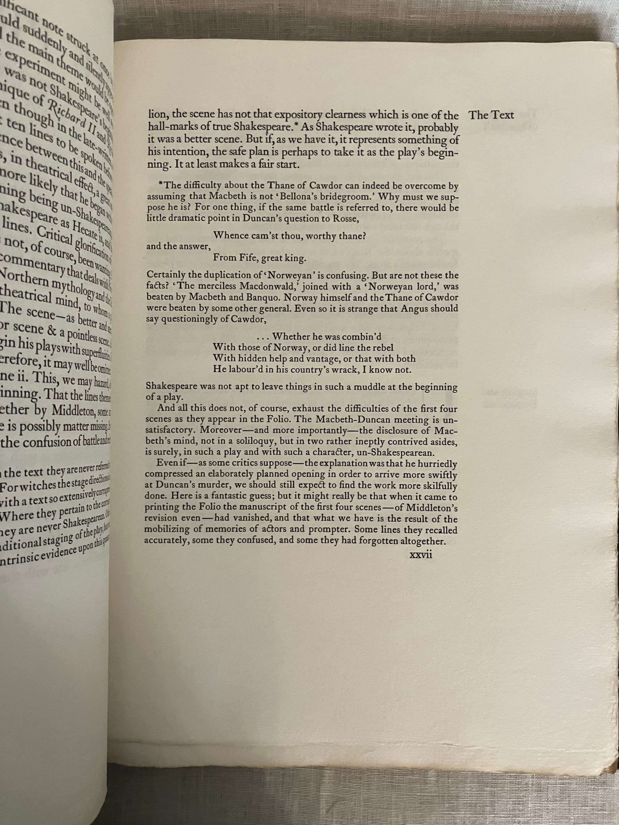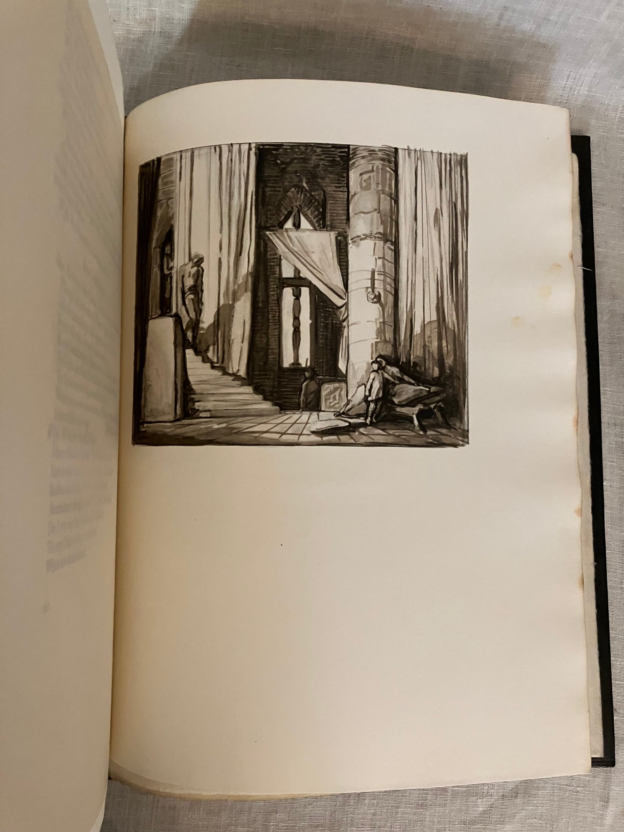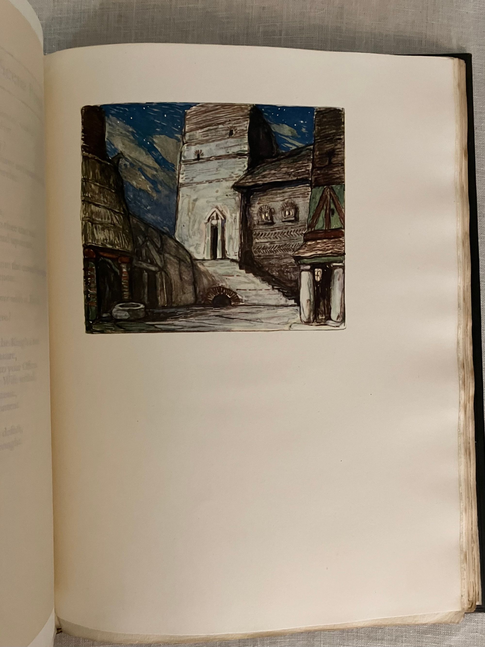 Hard cover, 4to (measuring 9 1/2 x 13 inches) in a limited edition, (No. 97 of 100 copies) letterpress printed, in the original fine binding of green morocco, with the boards decorated in gilt and blind in an Italianate architectural frame (Grolier style) featuring torches blazing in both inner and outer corners, fleurs de lis and other shapes, such as small x-crossed ogees (which imitate crossed marks made by a calligraphic pen, in outline) bound by Zaehnsdorf, 1923 with their oval tooled gilt figural insignia of a man at a book finisher's worktable on the lower rear endpaper. The spine has five raised bands, the title tooled to the second, and the other compartments tooled with the crossed ogee. Half-title reads: "The Player's Shakespeare/ The Tragedie of Macbeth." Title page: "Shakespeare's The Tragedie of Macbeth Printed/ from the Folio of 1623/London 1923, in black and red inks. Printed upon Batchelor's Kelmscott rag paper with their hammer and anvil watermark, all as identified in the"Publisher's Advertisement". ***ILLUSTRATED AND SIGNED by the very influential, Swiss-born early twentieth-century British Arts and Crafts book design Artist, CHARLES DE SOUCY RICKETTS (1866-1931), once principal book designer at John Lane's Bodley Head, co-publisher of the magazine "The Dial," principal partner of publishers Hacon and Ricketts (circa 1890- 1898), and, with Charles Shannon, the Vale Press, as well as an early mentor and publisher in collaboration with the Eragny Press's Lucien Pissarro, from about 1890. Ricketts's work represented the best of its time, evolving the fine press craft traditions of printer Emery Walker and designer William Morris into the twentieth century. The second signatory to this volume is by the Author of the "Introduction," HARLEY GRANVILLE-BARKER (1877-1946). Author, playwright, critic and producer, G-B was a major player in the staging of Shakespeare, (as well as other modern playwrights such as Ibsen and Shaw,) called by various the "Father of modern British theatre." His notes here provide useful information on how and why the original text was adapted by other pens, with remarks on the specifics of "The Scottish Play"; a worthy introduction to whet the readers' appetite for the series as a whole. Granville-Barker's own stage-craft book series "Prefaces to Shakespeare" appeared in print beginning in 1927; some passages from the text of this 1923 "Introduction" to Macbeth were directly translated into his Macbeth chapter in Vol. I of that series, and so it is not difficult to conclude this commission was a direct inspiration to the latter publication. Third signatory was ALBERT RUTHERSTON, Art-Editor, (1881-1953). **ILLUSTRATIONS : Ricketts provides 13 full page, tissue-guarded illustrations reproduced by the fine-art facsimile collotype printmaking method. This expensive, finicky technique involved the use of photographically exposed gelatine-covered plates, which enabled the resultant images to closely resemble the original Ricketts's fine-art watercolor drawings or other etchings. (The technique was being replaced in the 1920's with the advent of less expensive offset lithography.) **CONDITION: Near Fine. Oxidation to the spine has turned it brown in color. Minor touching up to joints, more at exterior rear joint. A couple of instances of very light soiling within, affecting margin of one plate. A few penciled notes to endpaper. Otherwise, hinges are in order, there is no foxing and overall the pages remain very bright, generally clean and sound. BOOKBINDER Joseph W. Zaehnsdorf, of Austrian-Hungarian descent, (1853-1930) son of that firm's founder, who had relocated to Britain by 1841. The Player's Shakespeare series was ambitiously conceived as a passion project of the publishers and printed between 1923 and 1927, in seven volumes; this was the first of those published. It is difficult to find full sets in matching bindings. The project was apparently abandoned because of the expense. REFS: Granville-Barker: R.Eyre column in "The Guardian," 11 Sept. 2009. On Ricketts, M. Watry, "The Vale Press" (Oak Knoll. Brit. Library, 2004). J.W. Zaehnsdorf, "The Art of Bookbinding," (London: Geo. Bell and Sons, 1890).