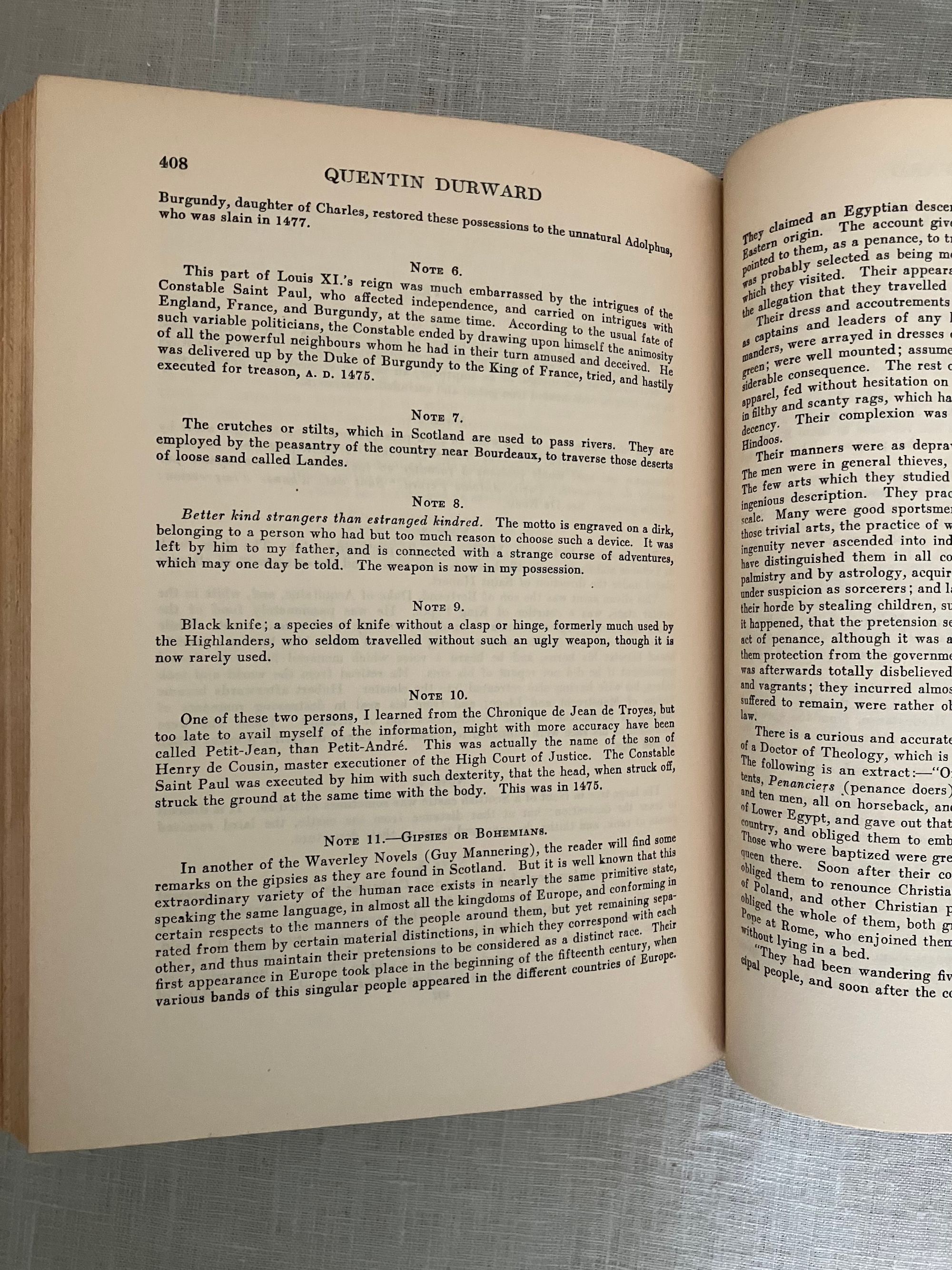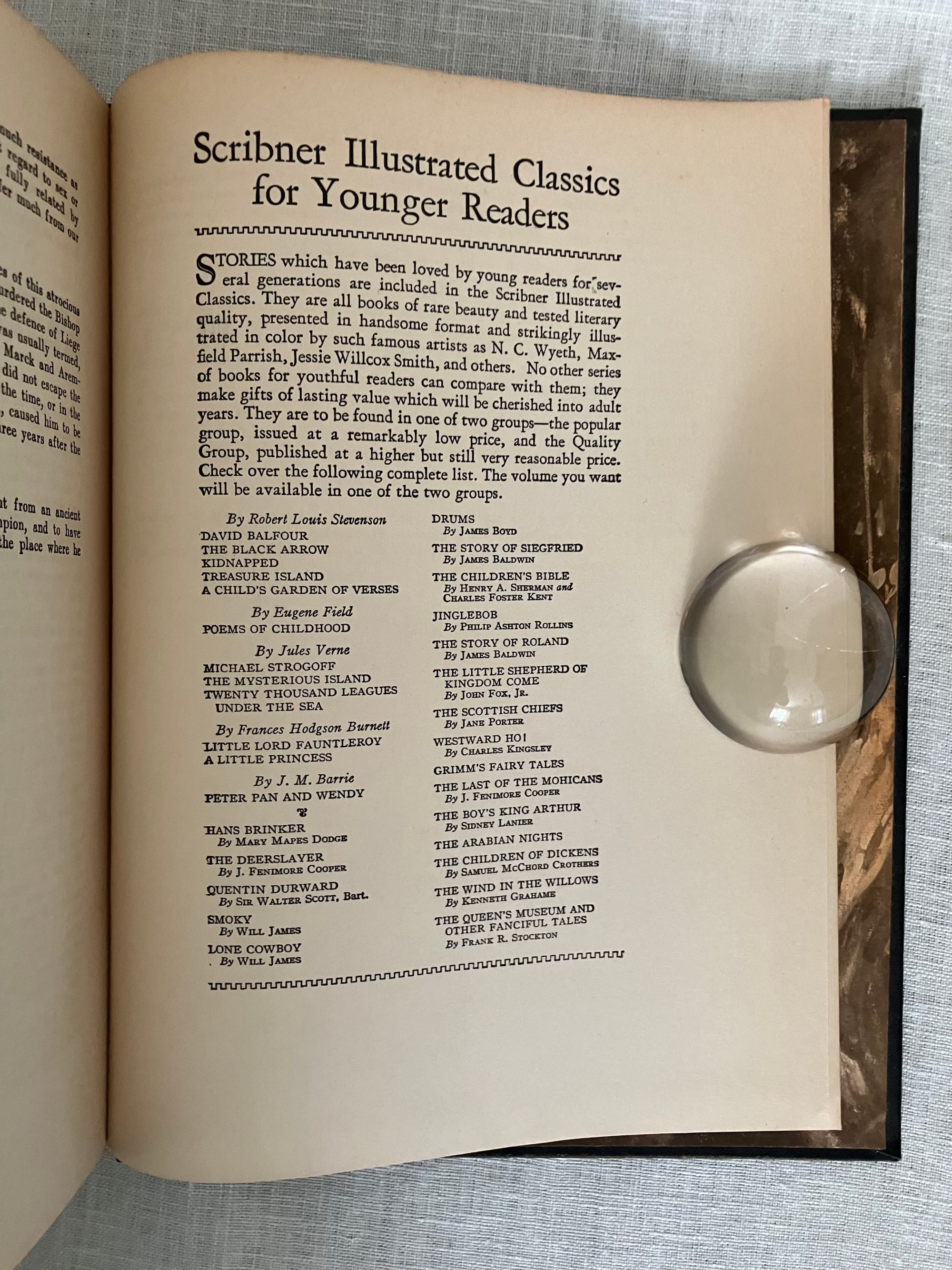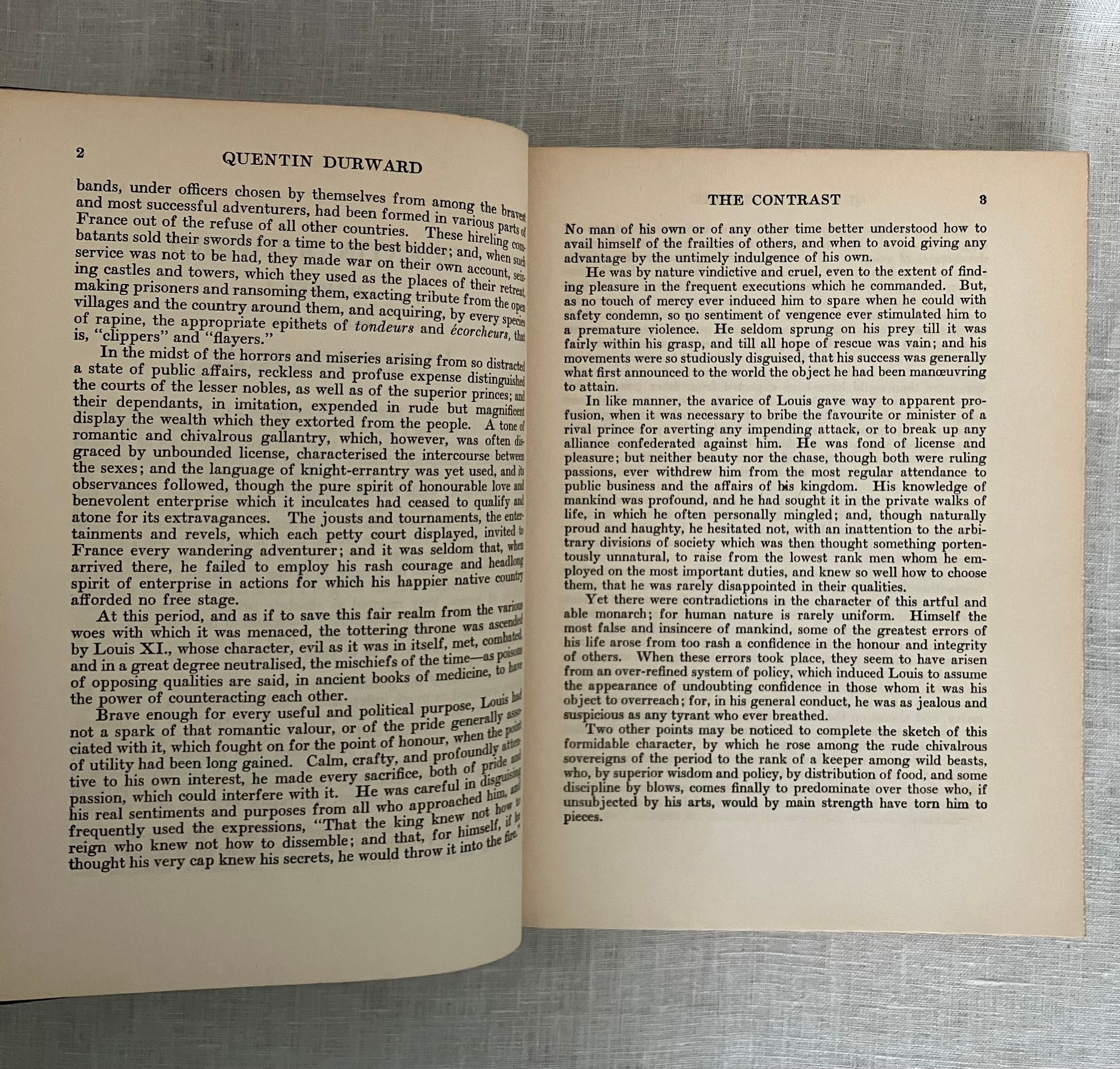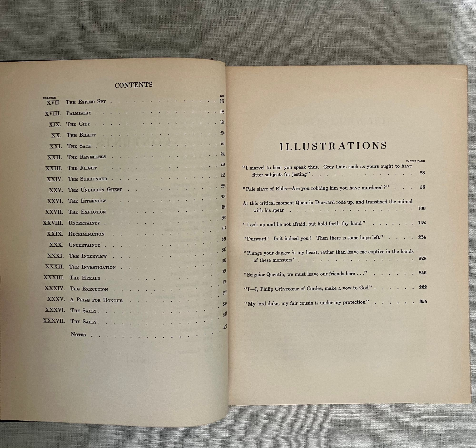 Reprint, (from 1923 Scribner's first illustrated trade edition.) Hard cover, large 8vo, in black cloth covered boards with applied chromolithographed cover art, titles printed to spine in gold, illustrated endpapers, color illustrated title page, plus nine additional full page color illustrations by American Artist Charles Bosseron Chambers (see below). COLLATION: xxxiii, [xxxiv-xxxvi], 422pp, plus 1 pg. series advertising for Scribner's "Illustrated Classics for Young Readers." CONDITION: Very Good. A few light scuff to covers. Pages moderately age toned, otherwise sound, square and with no obvious shelfwear. With lengthy introduction and Notes following text, best for the enthusiastic, young adult (or older) reader, perhaps. In his introduction datelined Abbotsford, Dec. 1831, prolific Scottish author Sir Walter Scott (1771-1832) dives deep into the historical background of 15th century French, English and continental politics, with historical facts about France's King Louis XI and changes evolving in the feudal system with consequent erosion of the values of chivalry. This book was one of the most popular of Scott's "Waverley Novels," a series of historical fiction which became a publishing sensation in the early nineteenth century. [It was also adapted into a wonderfully cheesey 1955 MGM swashbuckler of the same name, starring Robert Taylor, Kay Kendall and Robert Morley as the nasty King Louis XI. Blurb from IMDB: "Scottish knight in France to facilitate a marriage between a rich and beautiful countess and his aging uncle becomes involved in court intrigue."] **St. Louis-born Artist C. Bosseron Chambers (1882-1964) trained in Europe, later working in Florida and New York, became known for his book illustrations, society portraiture and Catholic religious imagery.