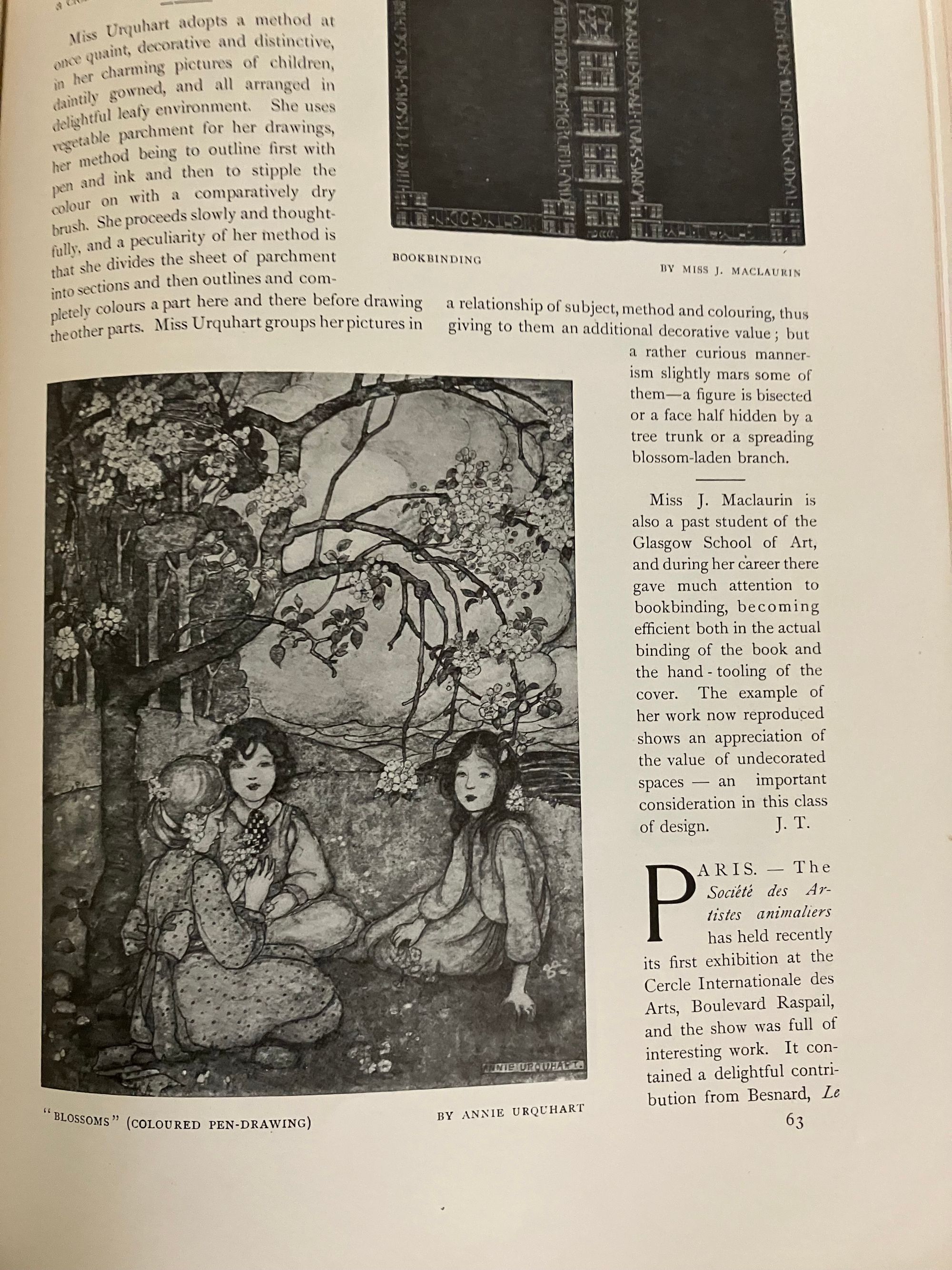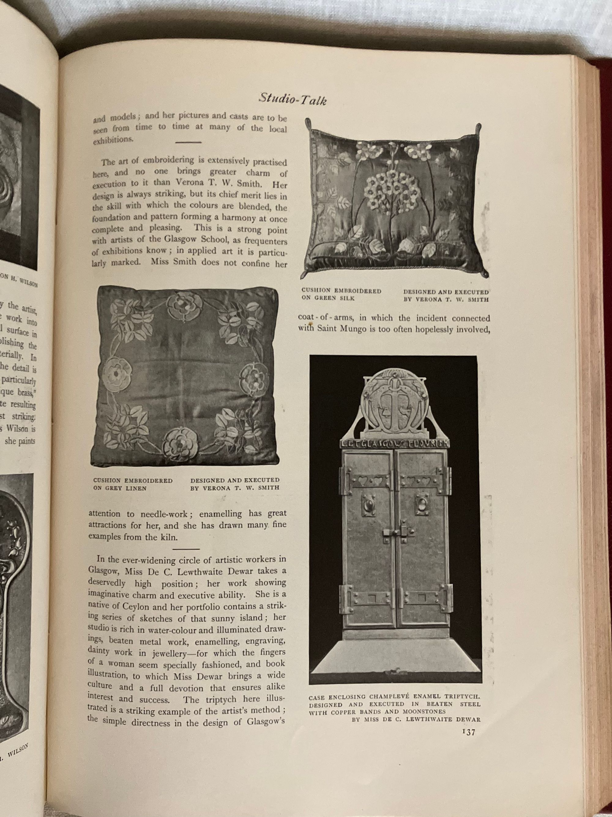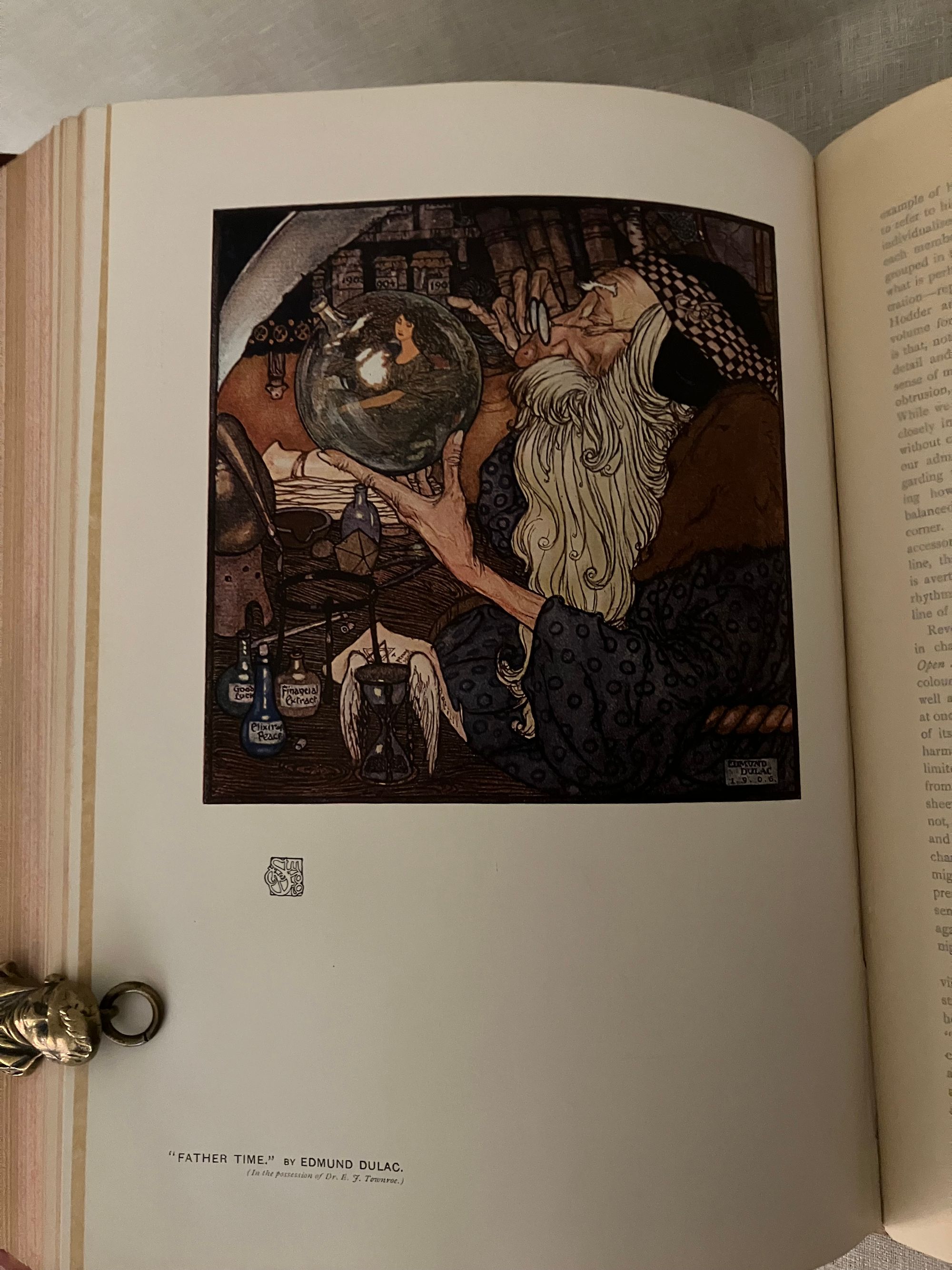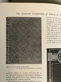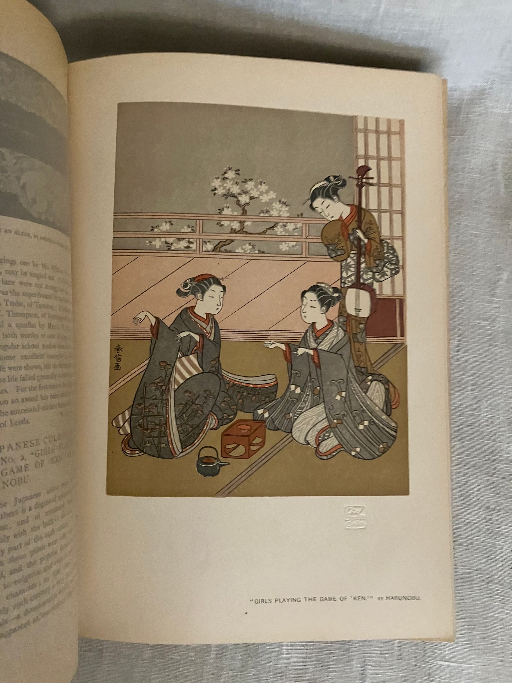 Hard cover, 4to in three-quarter calf over red cloth covered boards, the raised bands on the spines ruled in gilt and blind, with "H.H. Bickford" tooled at the foot. Each volume bound with a preliminary indexes, except for last one. Original wraps and advertising-only pages were not included. Page numbering begins with roman numerals and changes to numeric; v.p. Illustrated with many black and white halftone reproductions, some full page with tissue guards, fewer in color, with some tipped in on colored card. CONDITION: Very Good. Original owner stamp in blue ink to head of a number of pages of earlier issues, sometimes upon front of plates: "Return to H.H. Bickford's Private Library." (See provenance below.) Light shelfwear. Front hinge reinforced with woven tape on several volumes. Lacking Volume Thirty Nine and Forty [would have been bound as 2-in-1] so, sadly, not quite complete. Some light offset opposite black and white illustrations, occasional light marks. Last vol. was bound with punched three ring holes at gutter edge of some issues. One page found lacking, copy supplied. NOTE: I inadvertently left one volume out of the group picture; this has now been replaced.**CONTENTS: Articles and reviews by some of the taste-makers of the age, including book reviews, gallery-talk, artist profiles, exhibit reviews and more highlighting the American School, British Art Nouveau, Arts and Crafts Movements, and European art and design, including German Bauhaus, Hungarian, Swedish, Turkish, and Japanese art. "The International Studio" was a successor to the British art journal, "The Studio," begun in 1893 by Charles Horne and editor Gleason White; the International edition debuted in New York in 1897 and continued until 1931. British publisher John Lane had previously, with partner Charles Elkins, been publisher of works designed by Charles S. Shannon and Charles Ricketts, and in 1887, the two co-founded London's The Bodley Head publishing firm. Lane then relocated to New York in 1896, forming the John Lane Company, producers of this periodical.**SELECTION of British artists include: in-depth pieces on Charles S. Shannon, the stained glass panel designs of Edward Burne-Jones, A.E. Newcombe, E.A. Taylor and Jessie M. King and the Glasgow School of Art, William Morris in Glasgow, the National Competition of Schools of Art 1910, the Brussels Universal Exhibition of 1910, Italianate, and Arts and Crafts style architecture. A number of British Arts and Crafts style fine book bindings are illustrated, a number of them by women, as well as other handcrafts shown at the Arts & Crafts Exhibition Society. Book illustration and architectural illustration are also considered. AMERICAN art is also heavily promoted: Frank W. Benson, John Singer Sargent, Winslow Homer, William Merrit Chase and William Morris Hunt being shown in Germany. Works at the Metropolitan Museum, a Philadelphia Architectural Exhibition, Miniatures by Laura Coombs Hills (of Newburyport) and other women painters of the American Society of Miniature Painters, Philadelphia portraitist Ella S. Hergesheimer, the Jewelry Exhibition in Boston at the Society of Arts and Crafts in 1907. et al. INTERNATIONALLY, there is a whole series on Japanese art including Utamaro's eighteenth century woodblocks in color reproduction, Japanese ceramic artists, silks and carvings in wood or jade. A book by Yone Noguchi, "The Pilgrimage" is reviewed. Spanish painters Joaquin Sorolla y Bastida and the Basque artist Ignacio Zuoaga are profiled in a review of a show at the Hispanic Society of America. A landscape scene by Swedish painter Carl Larsson, younger brother to King Gustav V, is illustrated in color. German bauhaus interiors earn coverage in the discussion of The Brussels Universal Exhibition: Max Läger, Emanuel von Seidl, R. Riemerschmid, Bruno Paul and Albin Müller being shown. Otto Fischer and Hans Von Hayek are mentioned in a Vienna exhibition. **PROVENANCE: From the Private Library of original owner, HIRAM HOOKER BICKFORD, A.I.A. ( 1864-1929), a Barre, Vermont born son of a carpenter and house builder, who began his architectural career in central Massachusetts as trainee draughtsman at the Fitchburg Offices of Henry M. Francis. In 1887, he relocated to the Elmira, New York area, joining Architects Pierce and Dockstader, becoming a partner in 1891. Bickford and partner Joseph H. Pierce, went on to some fame: "For a period of at least three decades, 1890-1920, Joseph H. Pierce and Hiram H. Bickford were the foremost architects of the central-southern tier of New York State. In Elmira, a city with a half dozen firms, no others matched Pierce & Bickford's facility in handling the most up-to-date stylistic fashions. Their professional supremacy extended east to Cortland, north to Geneva and west to Allegany County. They were also a major influence in northern Pennsylvania and received large commissions throughout the rest of New York and in New Jersey." (Architects of Standing, Pierce and Bickford, Elmira, N.Y. 1890-1932 by Roger G. Reed) Bickford was elected President of the Central New York Chapter of the A.I.A. from 1918-1920. His notable works include stone stairs and walls at Watkins Glen, The Arnot Art Gallery, Corning Glass Works, Cortland County and Arnot-Ogden Hopitals,, Elmira College Library, YMCA and Masonic Temple, as well as the Elmira Free Academy. (A.I.A. historical directory.)**REF: J. Hare, Elmira Star-Gazette,"Woodlawn Cemetery chapel is symbol of Elmira's historical architecture duo" (5/15/2023) **Note: These will ONLY be sold as a set. Heavy set (63 lbs.) may require extra postage if mailed abroad or priority. (AMJ)