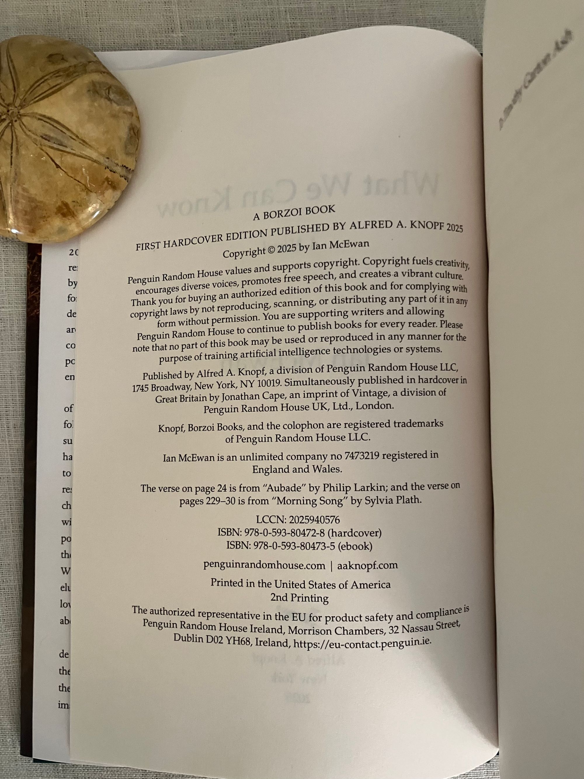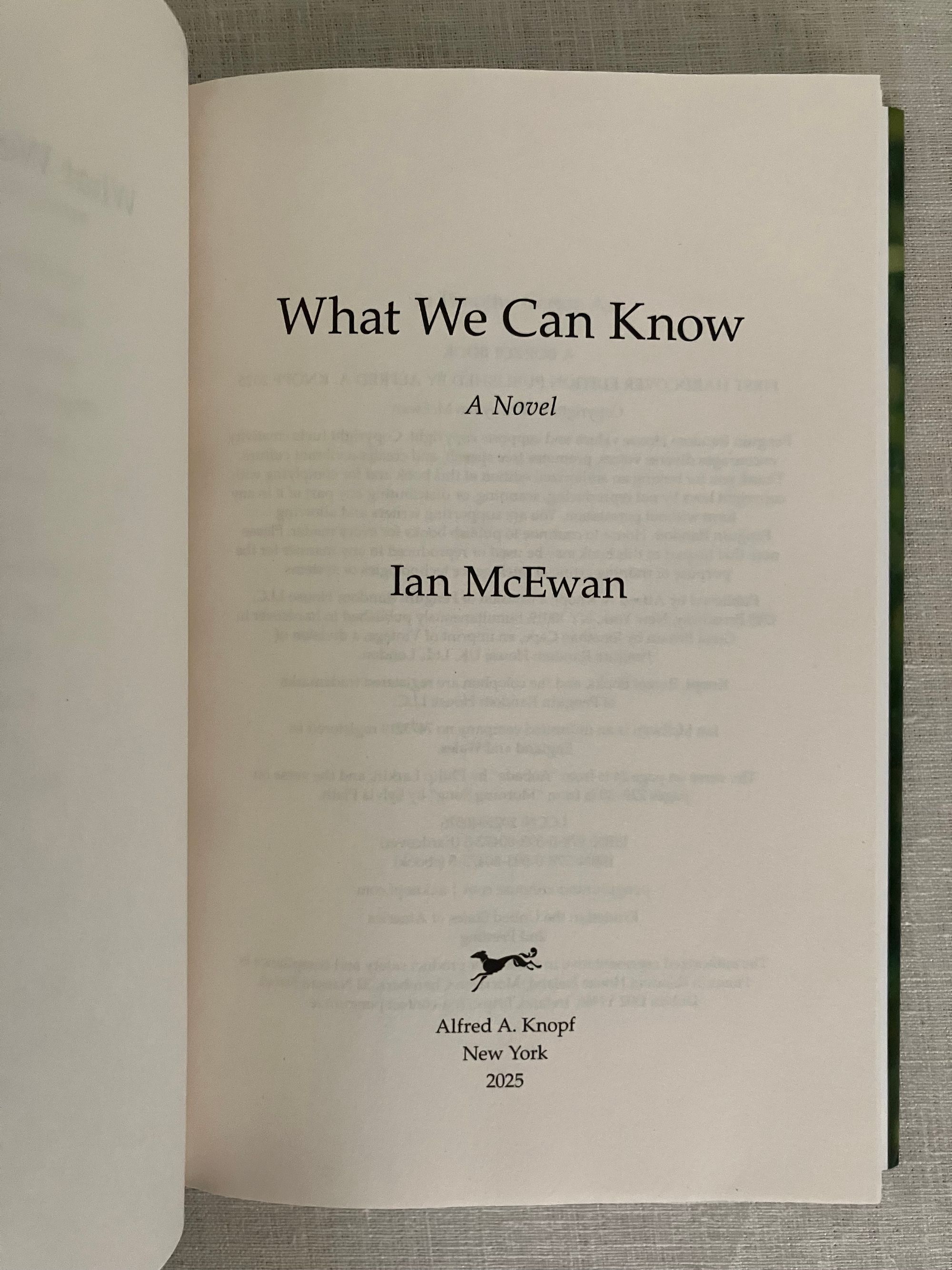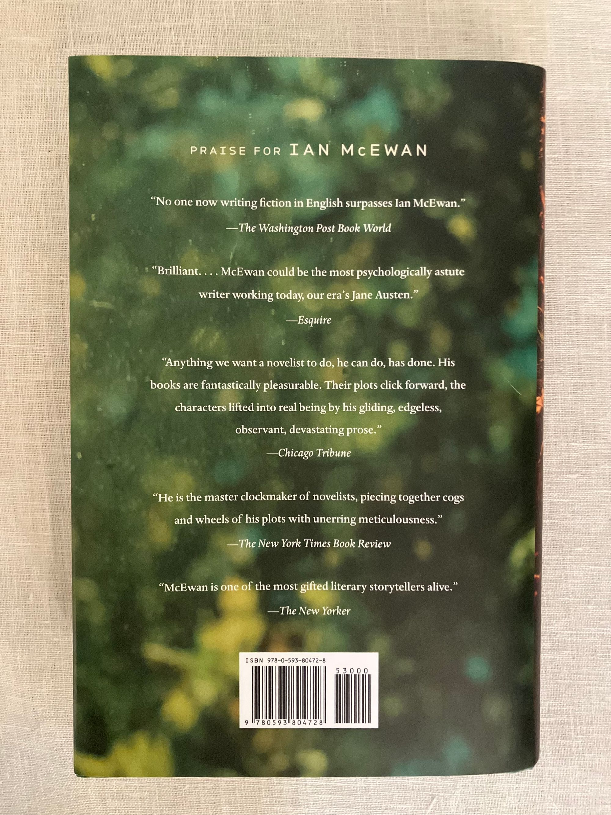 First Edition, second printing. Hard cover, 8vo, in green cloth, titles in gold to spine, in the original unclipped d/j. 303pp. ISBN 978-0-593-80472-8. **CONDITION: Fine, as new. Dust jacket Fine, now in a mylar protector. **"From the Booker Prize winning bestselling author of Atonement and Saturday, a genre-bending new novel full of secrets and surprises: an immersive exploration, across time and history, of what can ever be truly known..." "2014: At a dinner for close friends and colleagues, renowned poet Francis Blundy honors his wife's birthday by reading aloud a new poem dedicated to her, "A Conorna for Vivien." Much wine is drunk as the guests listen, and a delicious meal is consumed. Little does anyone gathered around the candlelit table know that for generations to come people will speculate about the message of this poem, the only copy of which goes missing, leading to an enduring mystery... 2019: just over one hundred years in the future, much of the western world has been submerged by rising seas following a catastrophic nuclear accident. Those who survive are haunted by the richness of the world that has been lost. In the waterlogged south of what used to be England, Thomas Metcalfe, a lonely scholar and researcher, longs for the early twentieth century as he chases the ghost of one poem, "A Corona for Vivien." How wild and full of risk their lives were, thinks Thomas, as he pours over the archives of that distant era, captivated by the freedoms and possibilities of human life at its zenith. When he stumbles across a clue that may lead to the elusive poem's discovery, a story is revealed of entangled loves and a brutal crime that destroys his assumptions about people he thought he knew intimately...." (blurb) Novelist Ian McEwen has had several of his earlier works adapted to film. (AMJ)