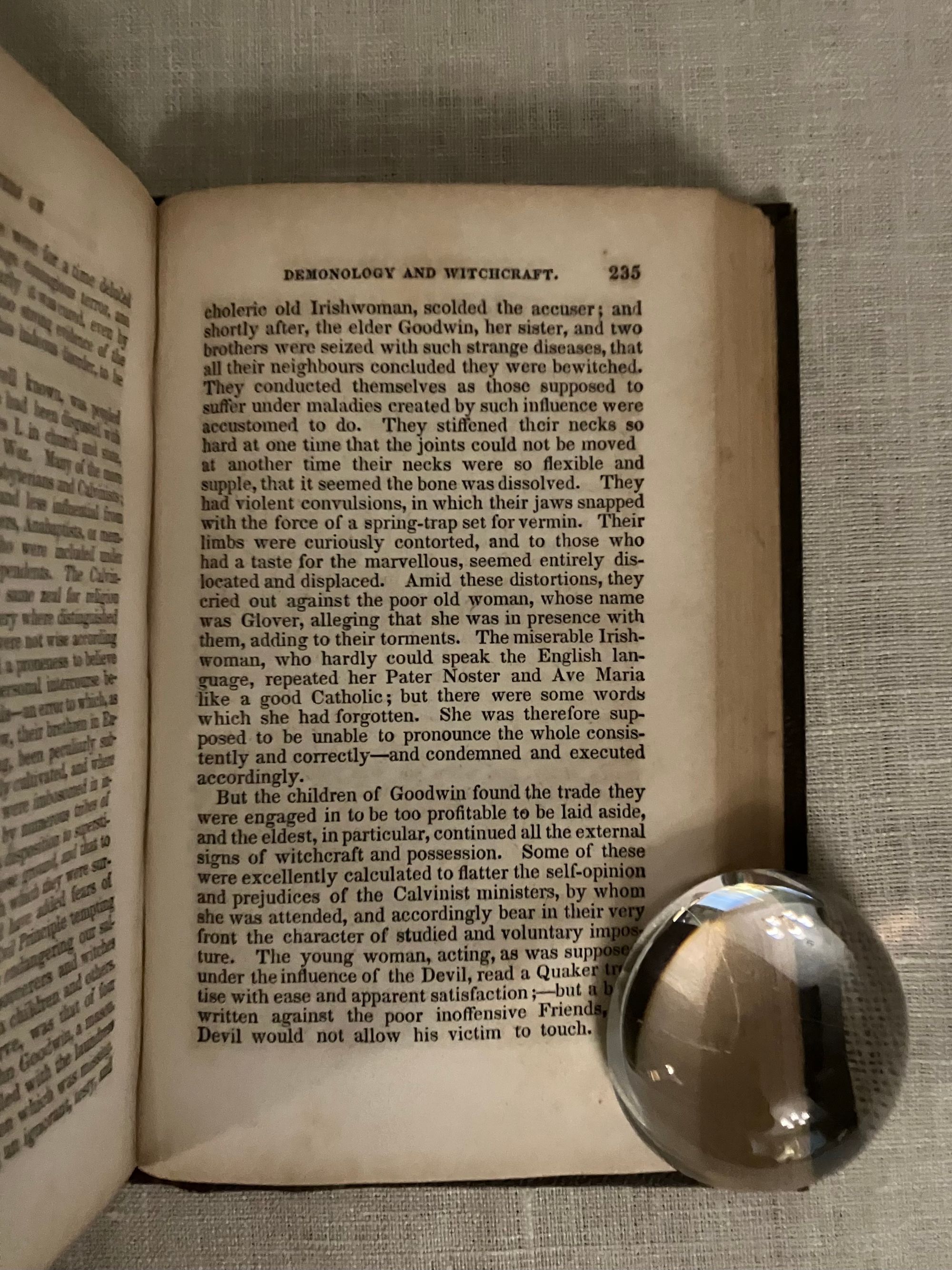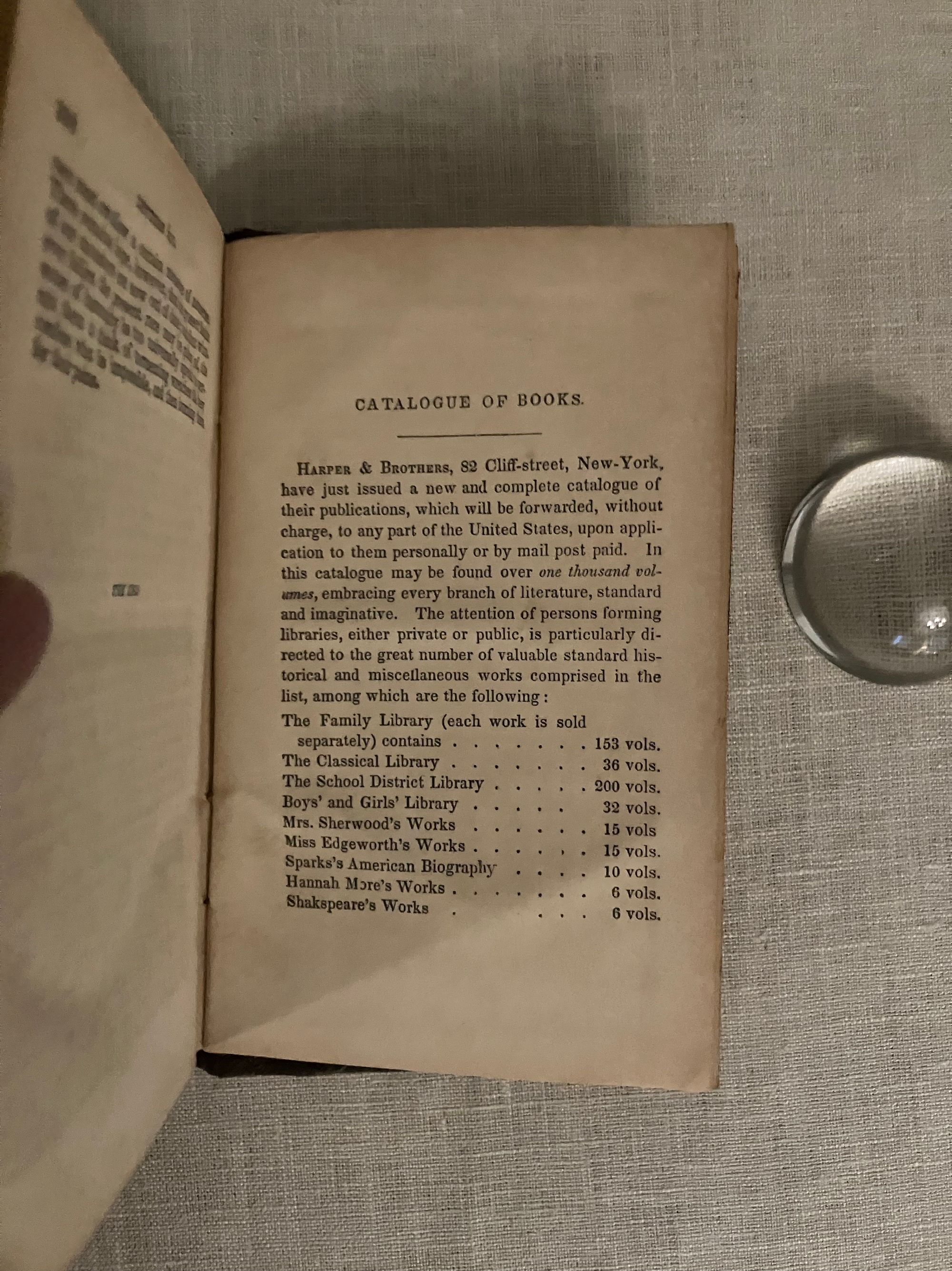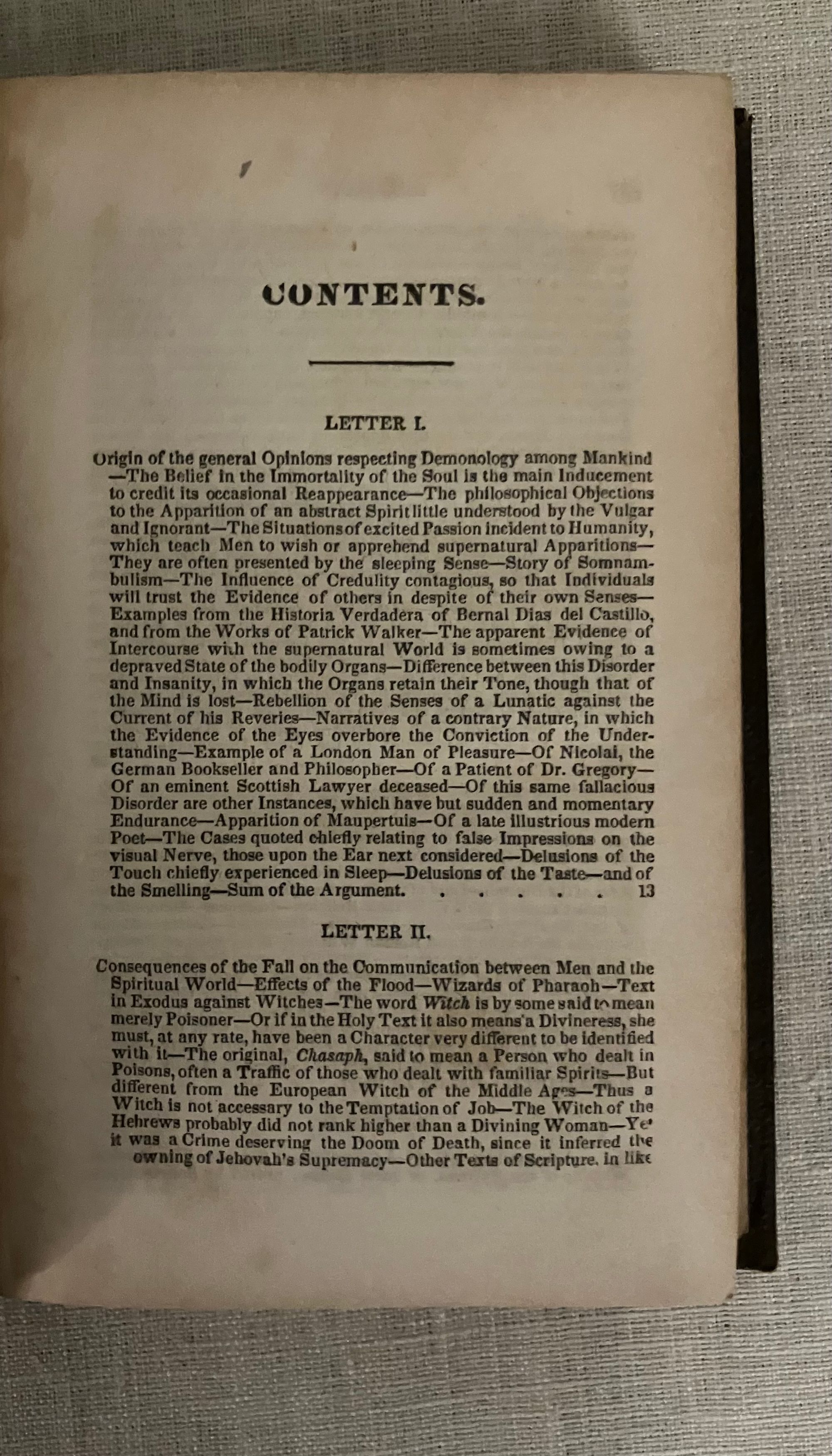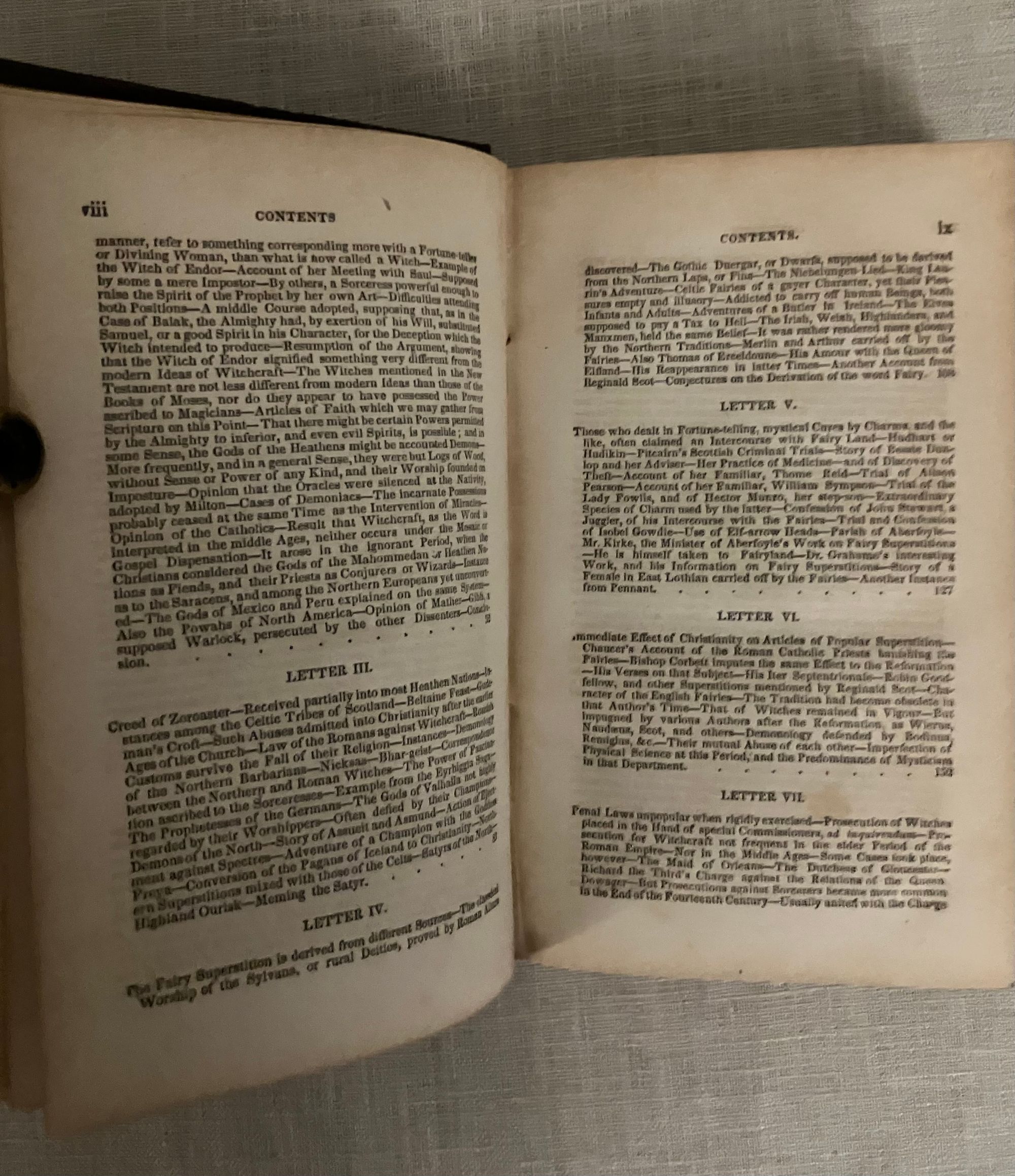 Reprint. (First published London: John Murray, 1830; first American editn. New York: Harper's 1830.) Hard cover, 24mo in publisher's original coarse black cloth, the boards plain, with Gothic architectural vignette in gilt to the spine with the series title; THE FAMILY LIBRARY/ No. 11" within, and the title "LETTERS ON/DEMONOLOGY/AND/WITCHCRAFT" near foot of spine. Tissue-guarded frontispiece engraving titled "The Bow, Edinburgh, Home of Major Weir," identified artist, "J. Skene" and engraver "S.H. Gimber." Frontispiece appears to be a copy of the John Murray original (that was engraved by Edinburgh's William Lizars,) although noticeably altered to not be a nighttime scene. Perhaps the original was thought too spooky for the Family Library? Bow Street, remnants of the original medieval quarter of the city, still exists in the Edinburgh city center. It is illustrated here in relation to Scott's recounting of the ghostly tale of "The Wizard of the West Bow, Major Thomas Weir (1599-1670), "presumed occultist and the last man executed for witchcraft in Scotland, " as detailed in Letter IX. The contents are a good anthology of stories spanning pre-Roman Celtic and Norse traditions, Irish and Celtic folklore of fairies and banshies, ghosts, witches, warlocks, charm-casters and fortune tellers. The Salem witchcraft trials are mentioned, as well as traditions in Spain, Finland and France. The connection between persecution of witches and political, personal and religious expediency is drawn. Stories about Scottish castles feature widely. Astrology of William Lilly is mentioned. In all, "belief in the crime" of witchcraft "becomes forgotten."CONDITION: Very Good Plus, or better. Exterior is very clean and sharp with one small dent lower rear board. Inside, some browning to endpapers, ownership signature in pencil dated 1830, tissue guard and pages are lightly age toned. Hinges and joints in order. Edges a bit dusty. Slight lean. Overall, in nice condition. COLLATION: [2], un-numbered frontis. illus., title,[blank], [vii]-xi (misnumbered,) [13]-338, plus 1p. publisher's series advertising, [3]pp.**This popular title was not only reprinted in America, but also translated into French and Italian within a decade of its first appearance. Written by the Scottish "Waverley" novelist, SIR WALTER SCOTT (1771-1832) as a series of letters to his son-in-law, J.G. LOCKHART (1794-1854). Lockhart was editor of the Murray's Family Library Series, a series of 80 titles published in London between 1829 and 1847. (These were inexpensive editions at the affordable price of 5 shillings.) Lockhart had married Sophia, eldest daughter of Sir Walter Scott, and resided with her in a small house on the Waverley novelist's Abbotsford estate in the Scottish borders while Scott was still alive. ** Proposed as a "popular miscellany" by the Author, rather than an exhaustive scholarly tome, the book is organized by a series of letters, or chapters, on a variety of associated topics. These include a general introduction to tales of the spiritual realm, such as the ghost tales found onboard ships and the fields of battle, somnambulism and the like. This book was actually one of the last published by Sir Walter Scott, during a time when he had suffered a number of seemingly insurmountable personal and financial setbacks. A "mistake of a trade connection" with the publishers at Ballantyne of Edinburgh (in 1826) had threatened the Author with the shame of bankruptcy; instead, he took on 130,000 British Pounds of debt. As memoirist Henry Morley said," no tale of physical strife could be as heroic as the story of the close of Scott's life, with five years of a death-struggle against adversity, animated by the truest sense of honour." (p. 7) The recent death of his wife of thirty years deeply affected him and perhaps brought on a morbid spiritualism. But Scott also foresaw the nearing of his own demise at this period; an attack of apolexy (or a stroke) in 1830 would lead to his death on 21st Sept., 1832 "The slight softening of the brain found after death had then begun...it gave to Scott's "Letters on Demonology" (written within a month of the seizure) what is for us now a pathetic charm." ( ibid.,p.6). H. Morley," Introduction" to "Letters on Witchcraft and Demonology..." ( London. G. Routledge and Sons, 1887.) Watson 677. (AMJ)